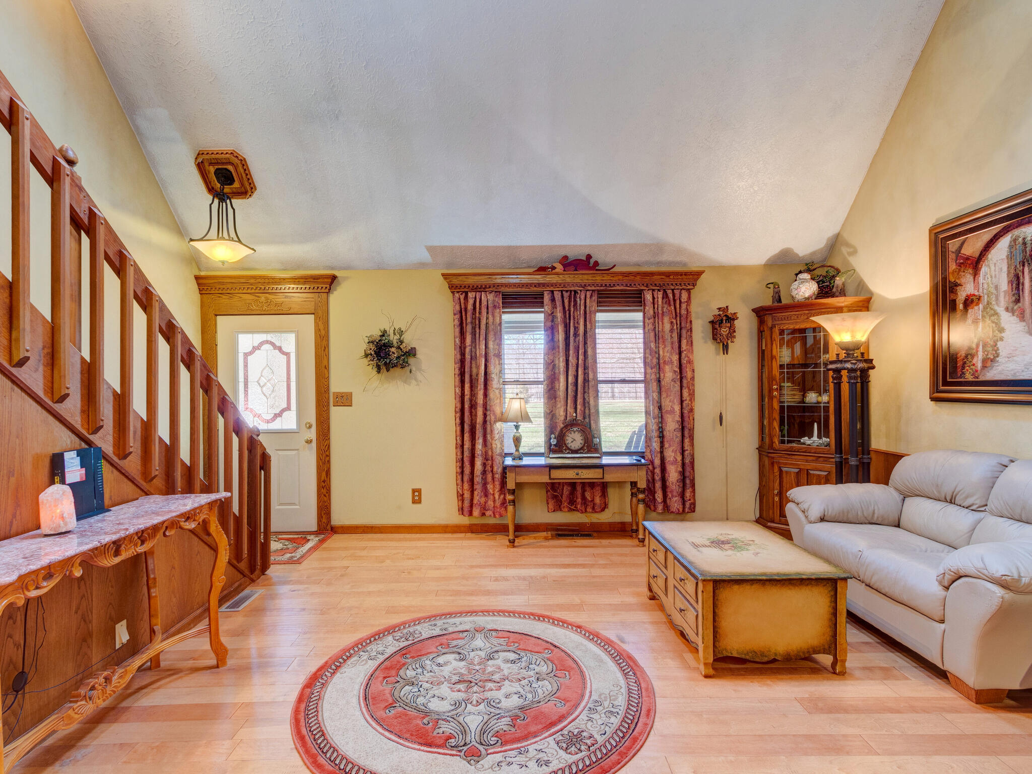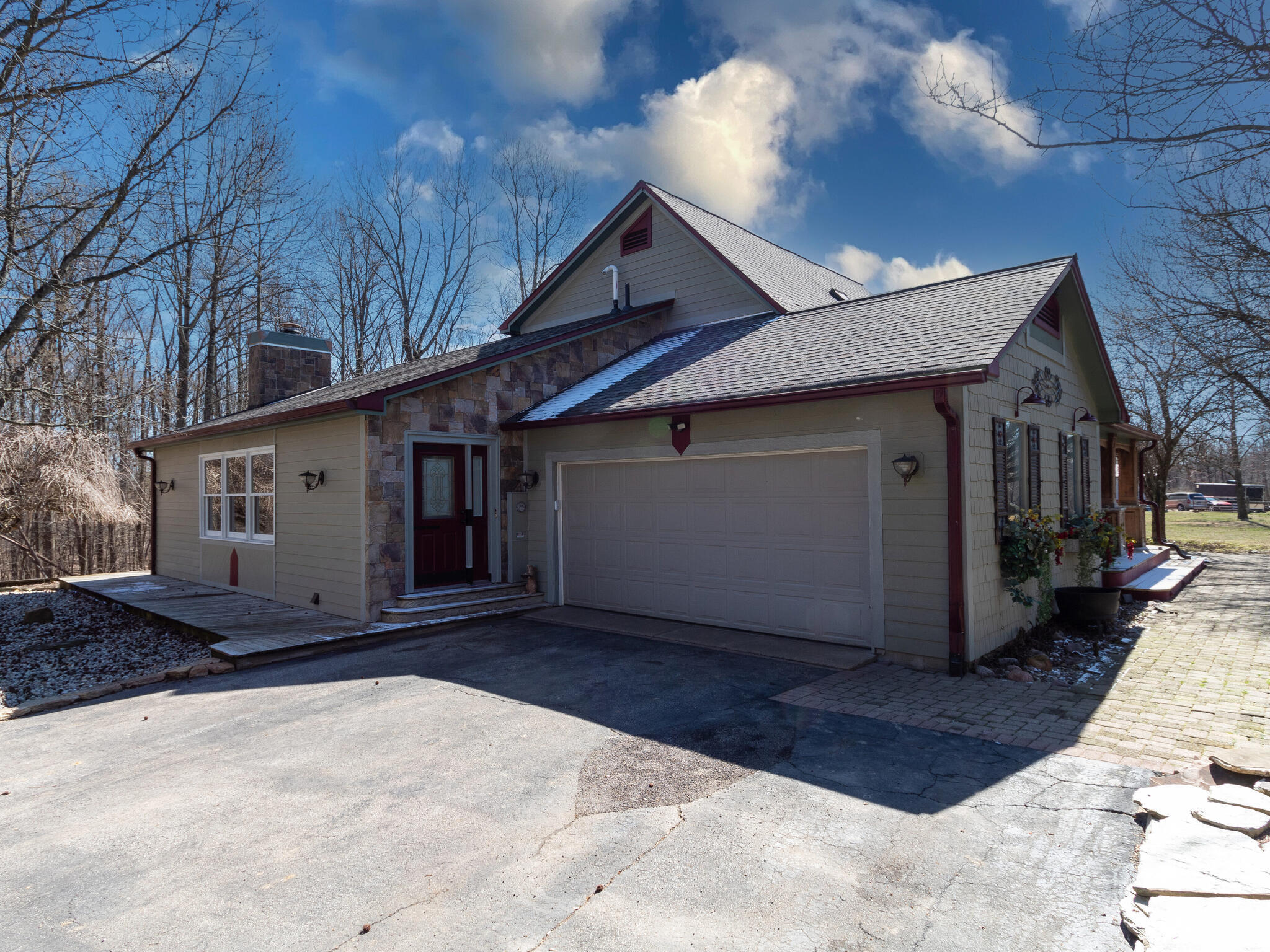 THIS IS A MUST-SEE! BEAUTIFUL 4B HOME, 4 OUTBUILDINGS, A PRIVATE STOCKED LAKE, A 30X60 BARN PLUS PASTURE, and OVER 6 ACRES OF WOODS. This home has been meticulously maintained and has high-end upgrades throughout. The outbuildings are connected and consist of one bay with 16 ft ceilings and 30 amp RV hookup with a roll-up door, both 100 and 200 amp panels, 2 bays are vented for a car painting booth with lighting and extra exit door, and other 2 bays are set up for woodshop. The kitchen consists of double commercial-grade ovens with hood, a glass cooktop, a bosch dishwasher, and beautiful handcrafted woodwork cabinets which pull out extra long! BRING ON THE OFFERS! MOTIVATED SELLERS