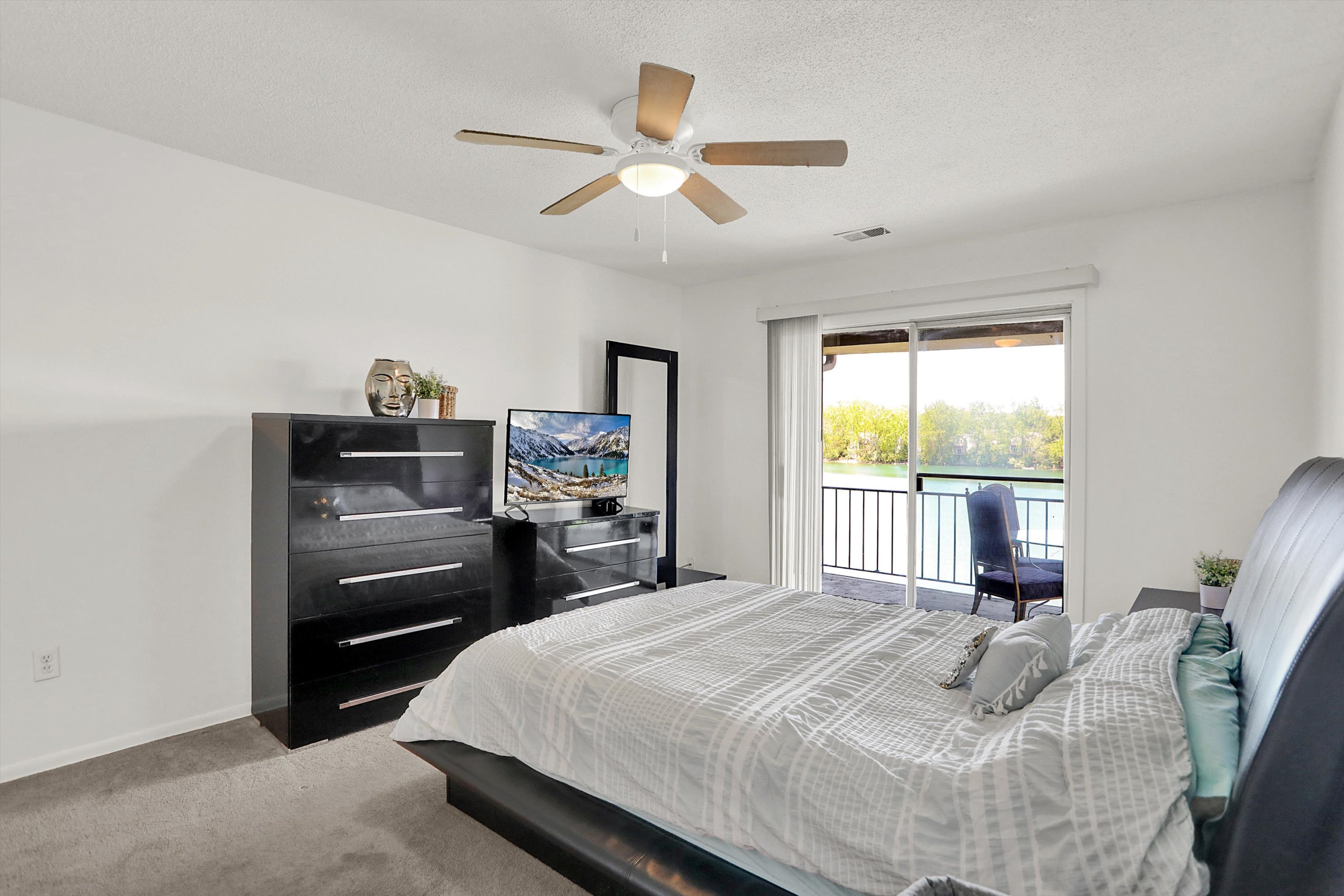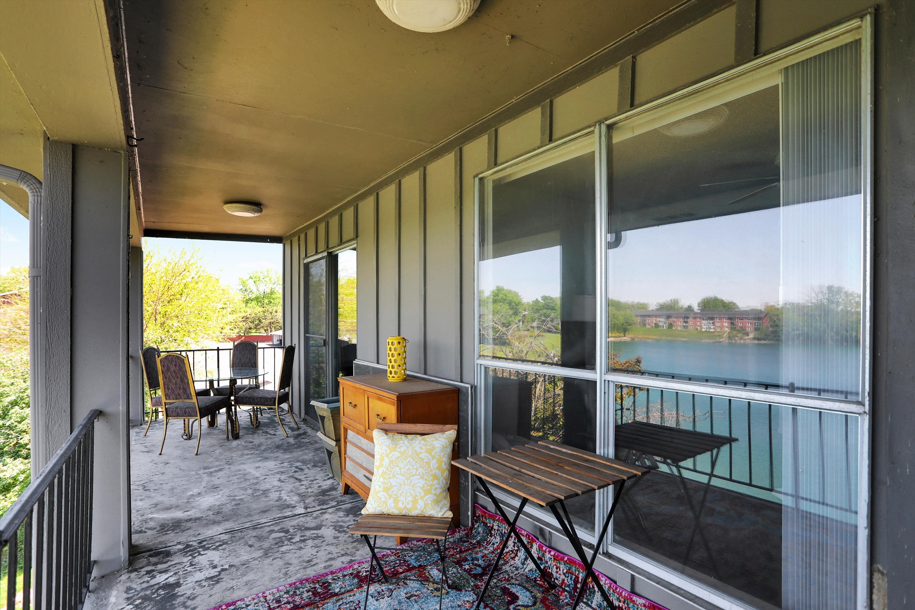 You won’t want to miss this affordable condo with AMAZING Penthouse views of HUGE Lake right outside your door with private docks! Great for boating & swimming with walking trail along the water * Large open great room and dining area with space for office area opens to oversized covered patio * Patio is perfect for morning coffee or working from home * Primary bedroom offers lake view with door to patio, large closets and private full bath * 2nd bedroom also a great size with lake view * Kitchen features good cabinet and counter space with all appliances included * 2nd full bathroom with tub/shower combo * Plenty of storage with two closets outside the unit for storage * Condo includes covered carport * Close to downtown Indy!