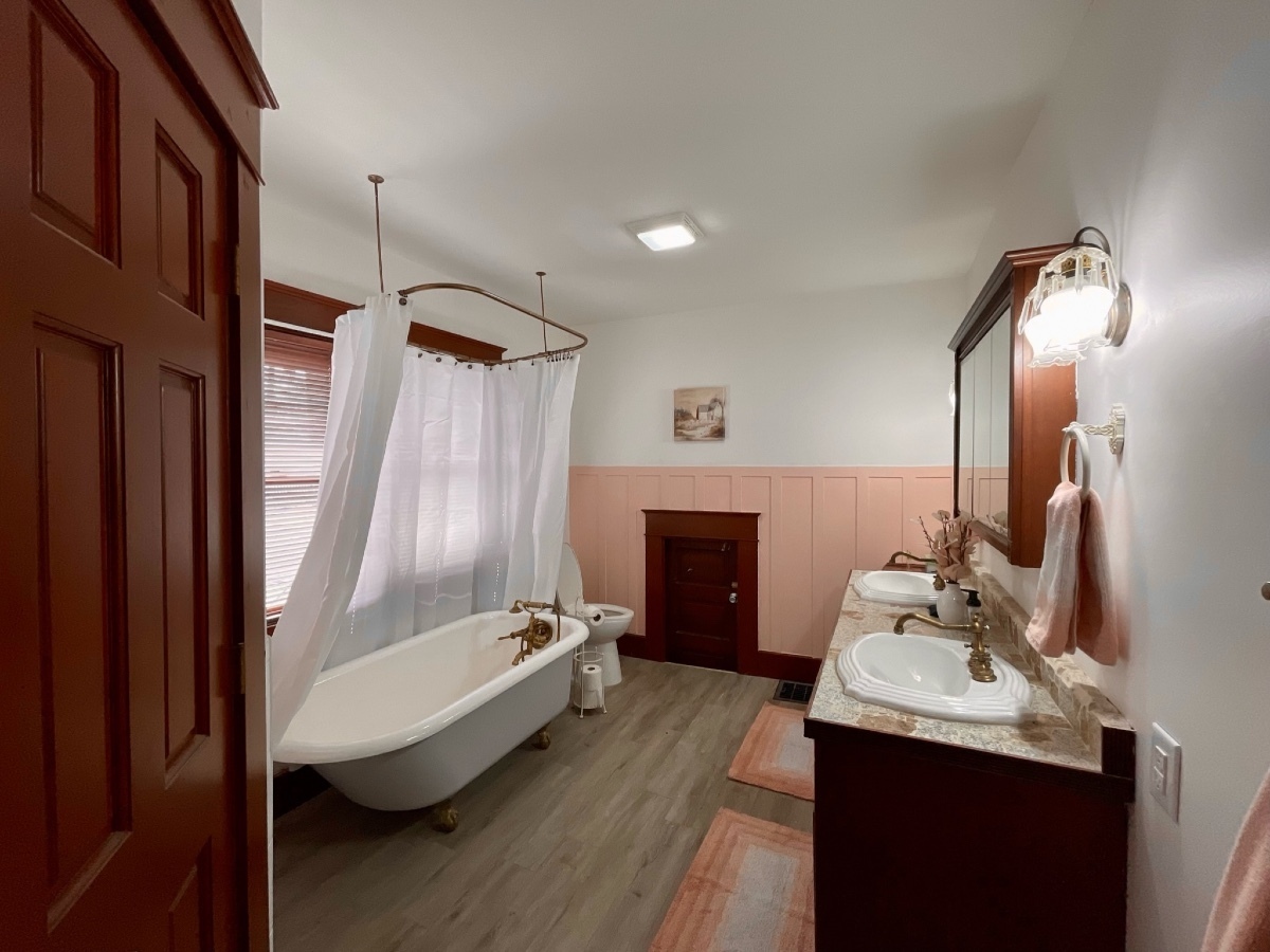 NEWLY REMODELED Vintage home! Newspaper found in the wall is from 1875, but previous owner dates first footprint of house to 1855. 3689 sq ft of fully finished SFH with 5 full bedrooms and 4 full baths. Large updated kitchen; Sunroom with floor to ceiling windows; Restored HARDWOODS THROUGHOUT main house. Spa-like bathrooms with claw foot tubs; Ceiling fans in every bedroom; SOLAR; The attached garage is fully finished with HVAC. Private apartments above 2 car attached garage with separate entrance; full bathroom; full kitchen; bedroom and living room; detached 2 car garage with power. DOWNSTAIRS PRIMARY BEDROOM AND BATH. Private deck off of upstairs additional primary suite. Front porch – THIS HOUSE IS A MUST SEE!