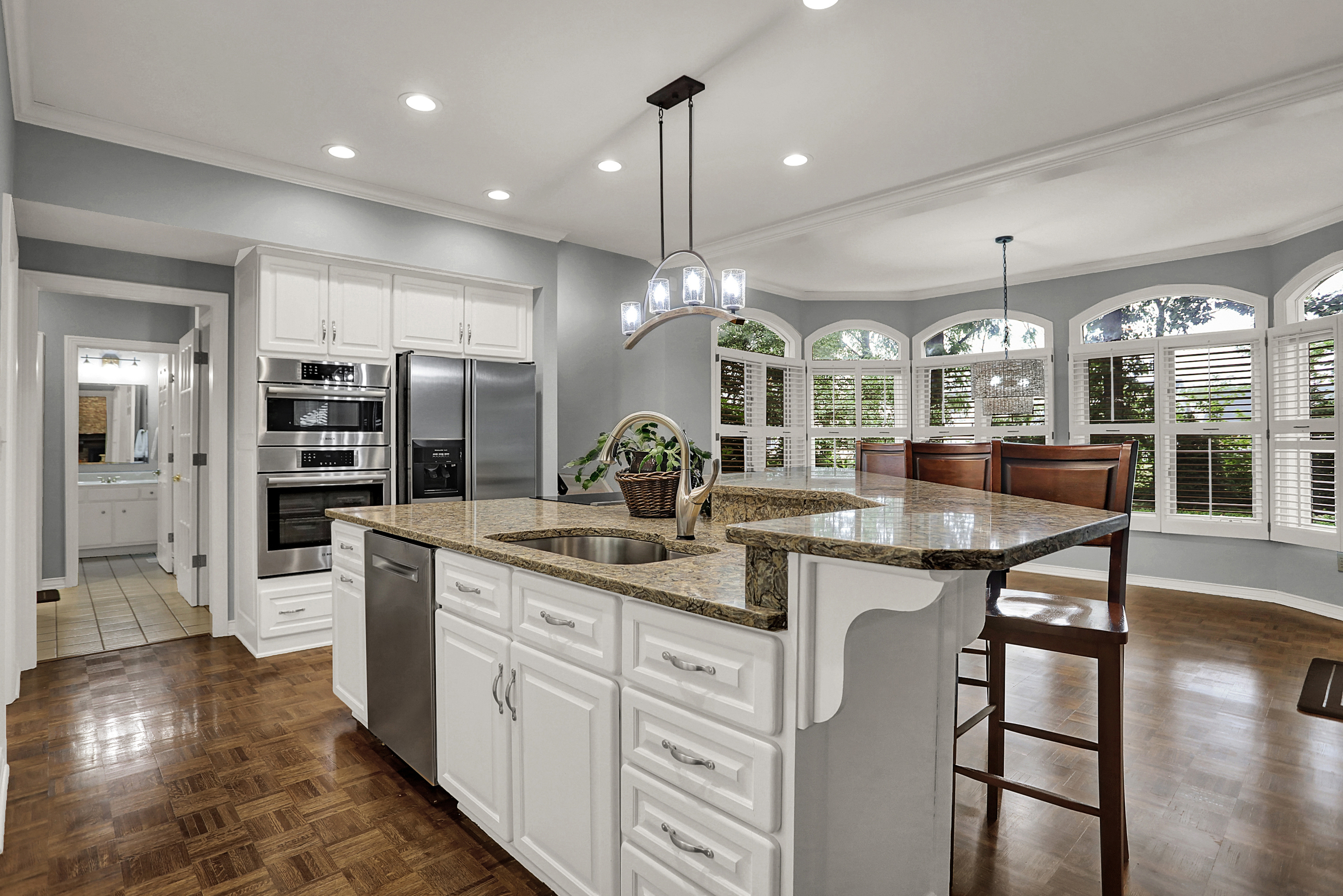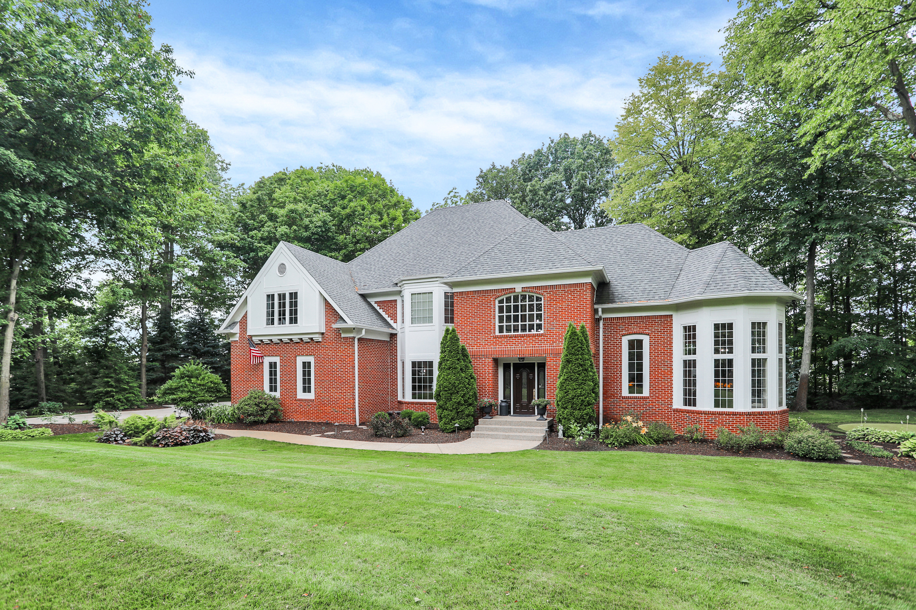 Nestled on an exquisite one-acre property in Carmel, Indiana this custom-built home is a true oasis of luxury and comfort. The backyard is a golfer’s paradise, boasting an enviable putting green that’s perfect for golf enthusiasts who want to practice their swing in the comfort of their own home. Boasting 4BR’s, 4 full baths, & 2 half baths, the home featuring an impressive 18-ft grand entrance w/ marble floors, staircase, & French doors. The GR boasts soaring 14-ft ceilings, an enormous built-in wet bar, & a gracious turret room w/ flr-to-ceiling windows. The home also features a a custom-built home theater, dual staircases, plantation shutters, & 2 wet bars and an expansive exercise rm & a SAFE rm in the basement w/steel door).