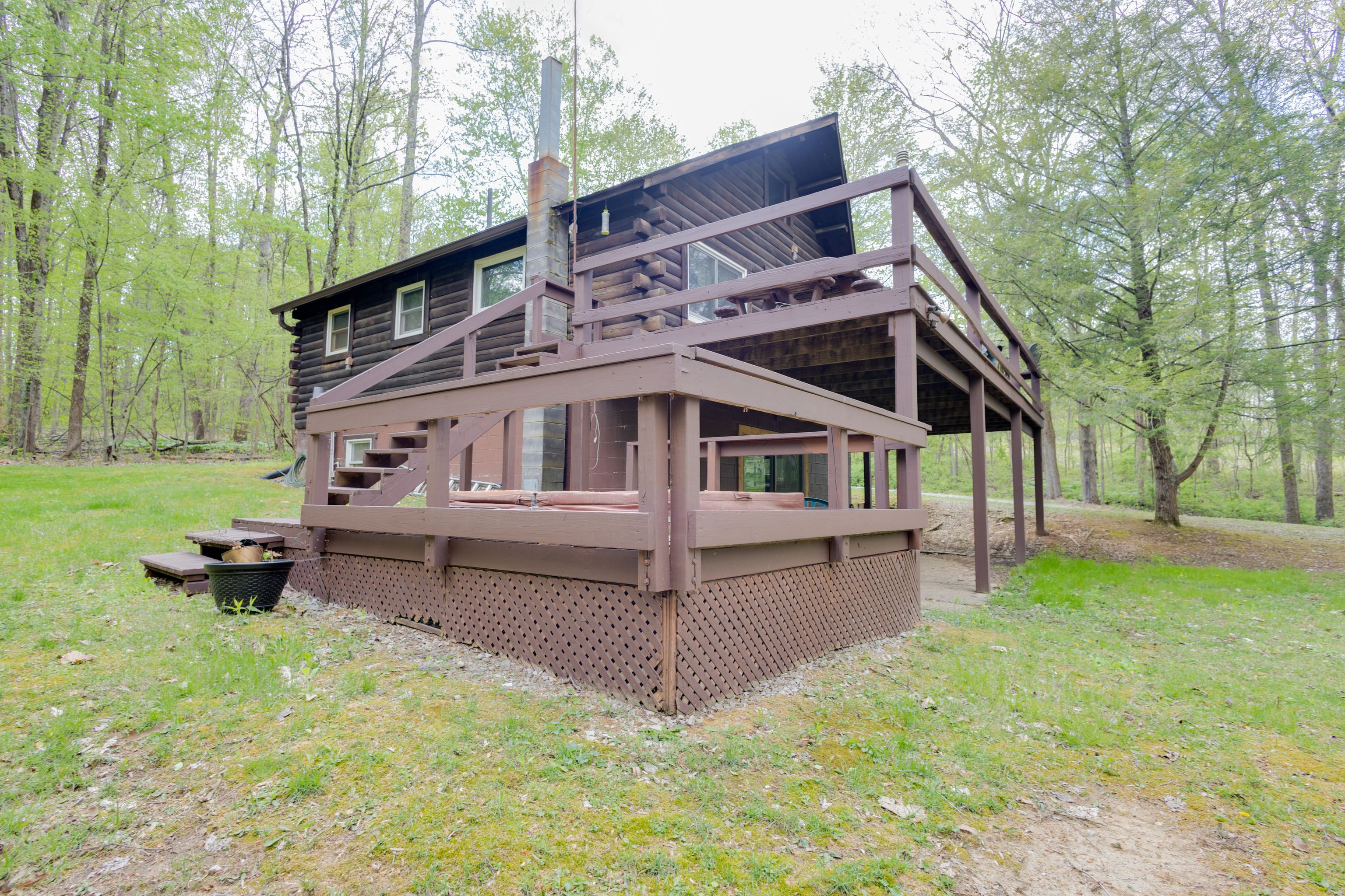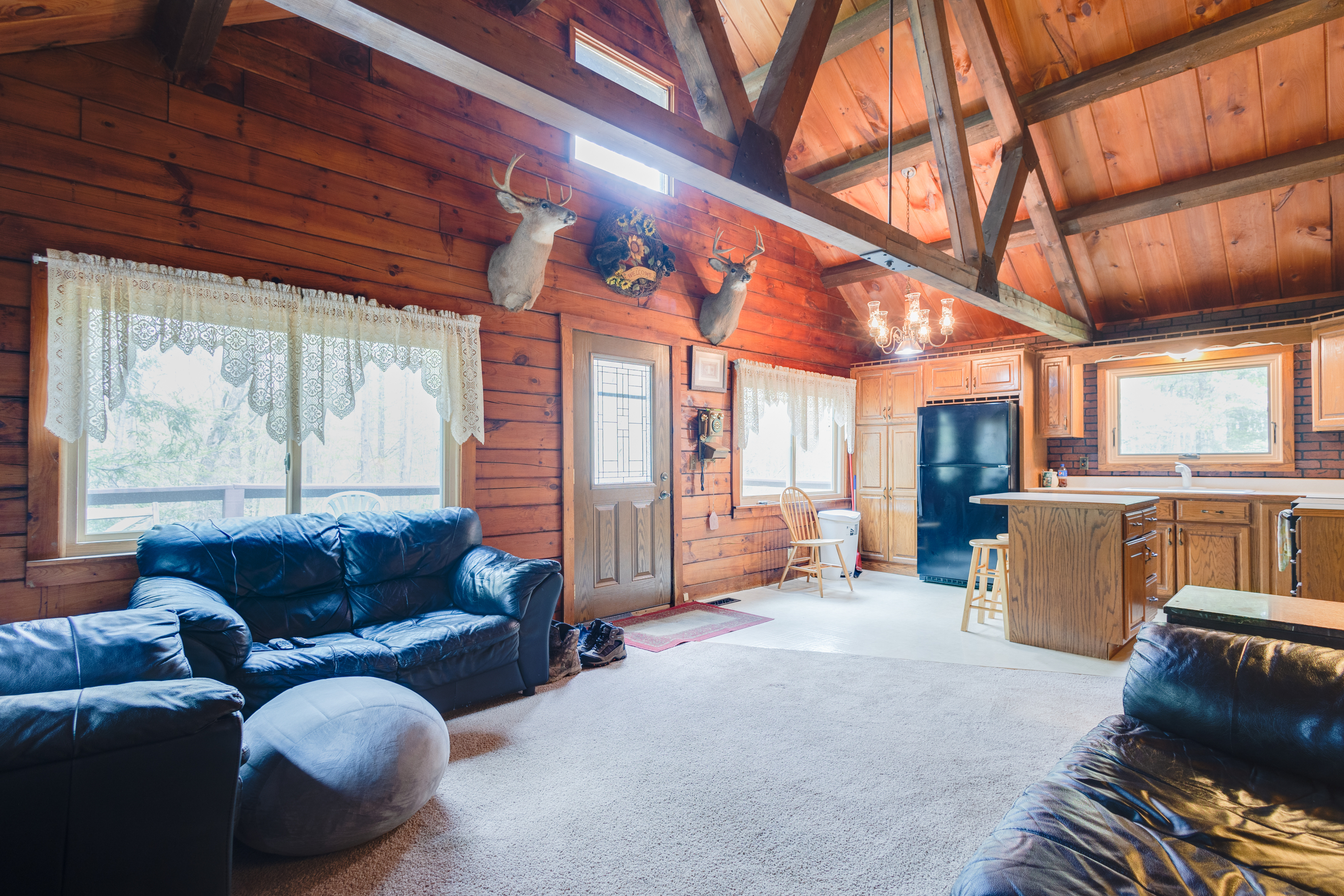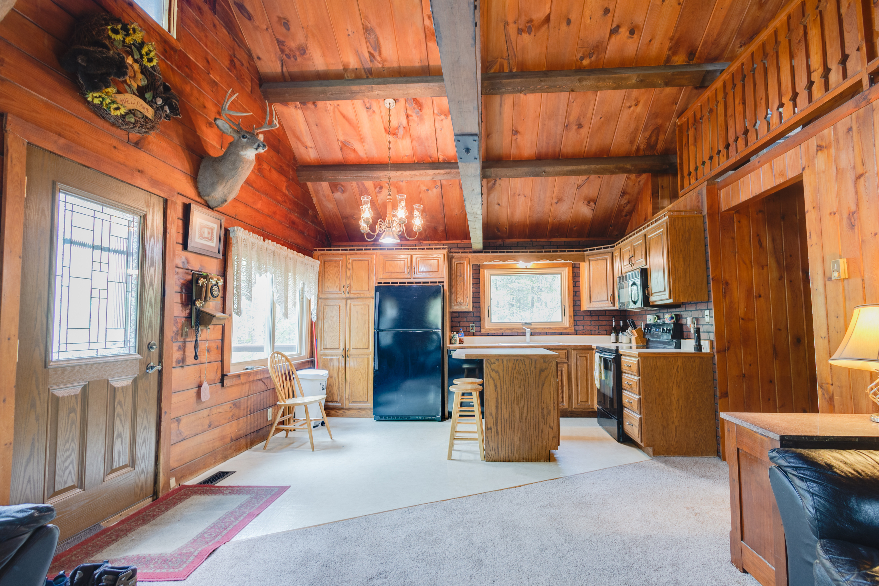 Whether you’re looking for a weekend retreat or a permanent residence, this charming cabin home is a perfect choice. This 3-beds, 2-baths log home, has a wraparound porch, walking trails, firepit area and a 36×20 detached garage situated in the woods. The cabin’s interior is warm and inviting, with an open-concept living and dining area, perfect for entertaining. The loft adds an additional level of charm and coziness to this cabin, creating a perfect hideaway for a peaceful weekend. The bedrooms are spacious and comfortable, with plenty of windows that allow natural light to flow in, bringing the outdoors inside. A family room, third bedroom, and the laundry room are all located in the basement.