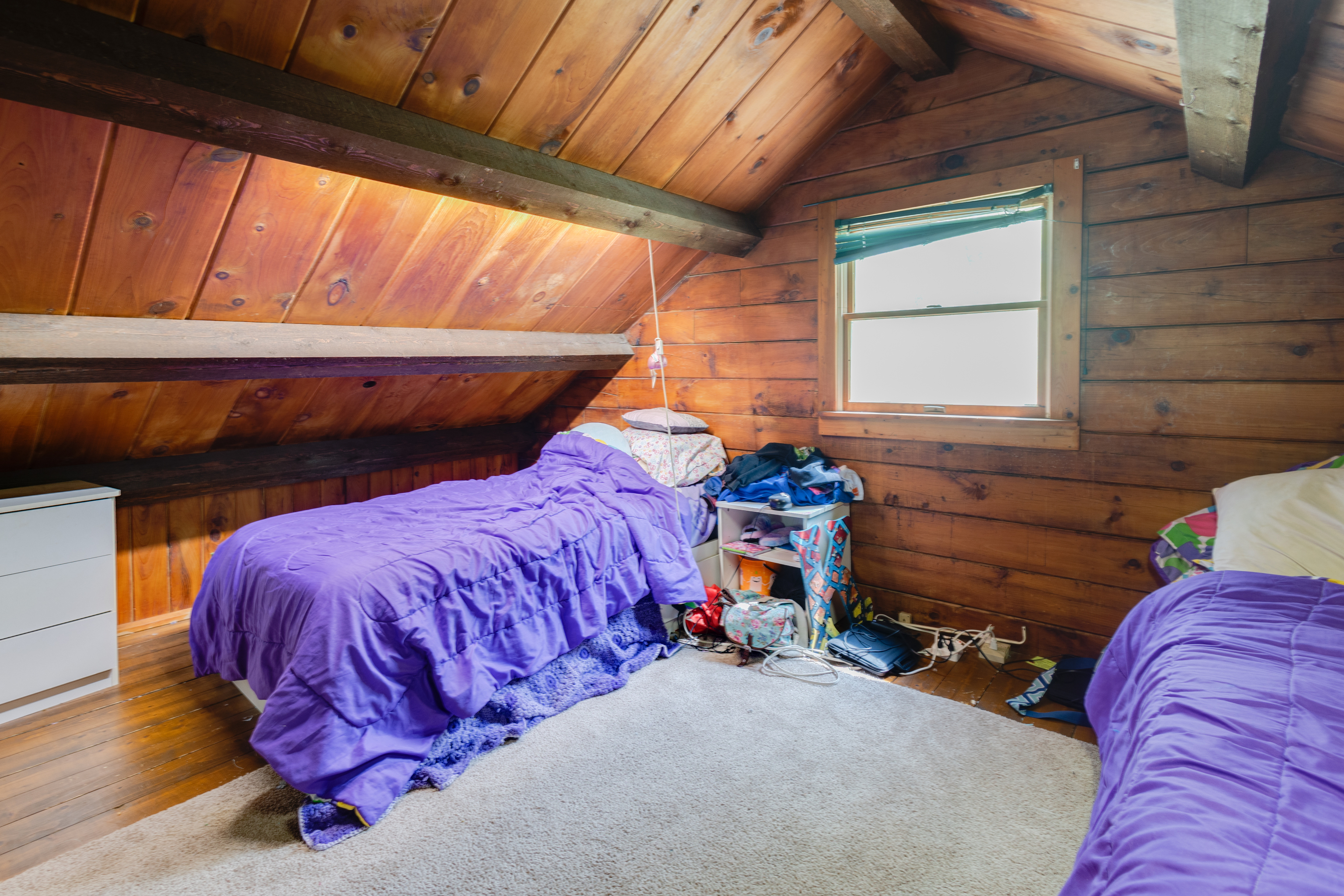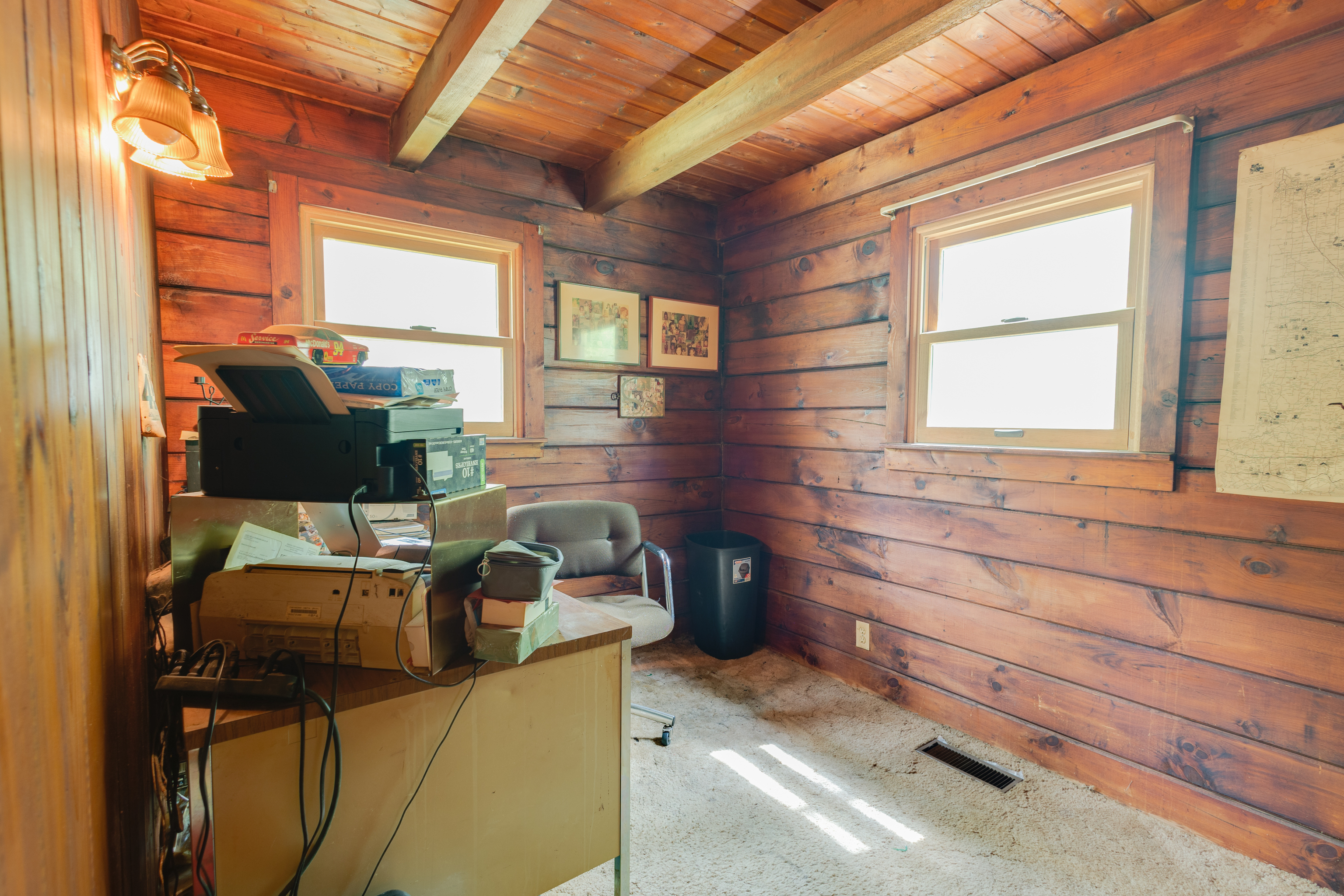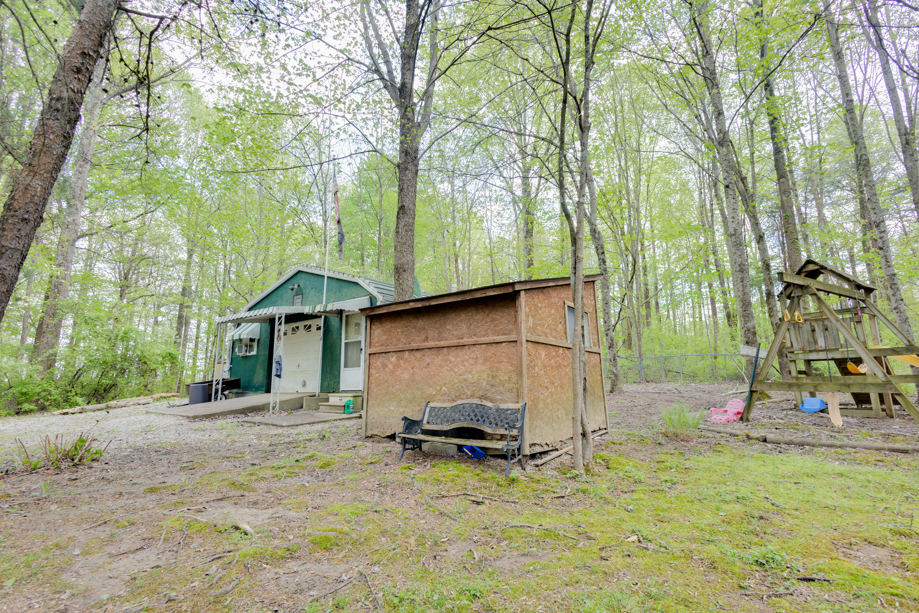 Whether you’re looking for a weekend retreat or a permanent residence, this charming cabin home is a perfect choice. This 3-beds, 2-baths log home, has a wraparound porch, walking trails, firepit area and a 36×20 detached garage situated in the woods. The cabin’s interior is warm and inviting, with an open-concept living and dining area, perfect for entertaining. The loft adds an additional level of charm and coziness to this cabin, creating a perfect hideaway for a peaceful weekend. The bedrooms are spacious and comfortable, with plenty of windows that allow natural light to flow in, bringing the outdoors inside. A family room, third bedroom, and the laundry room are all located in the basement.