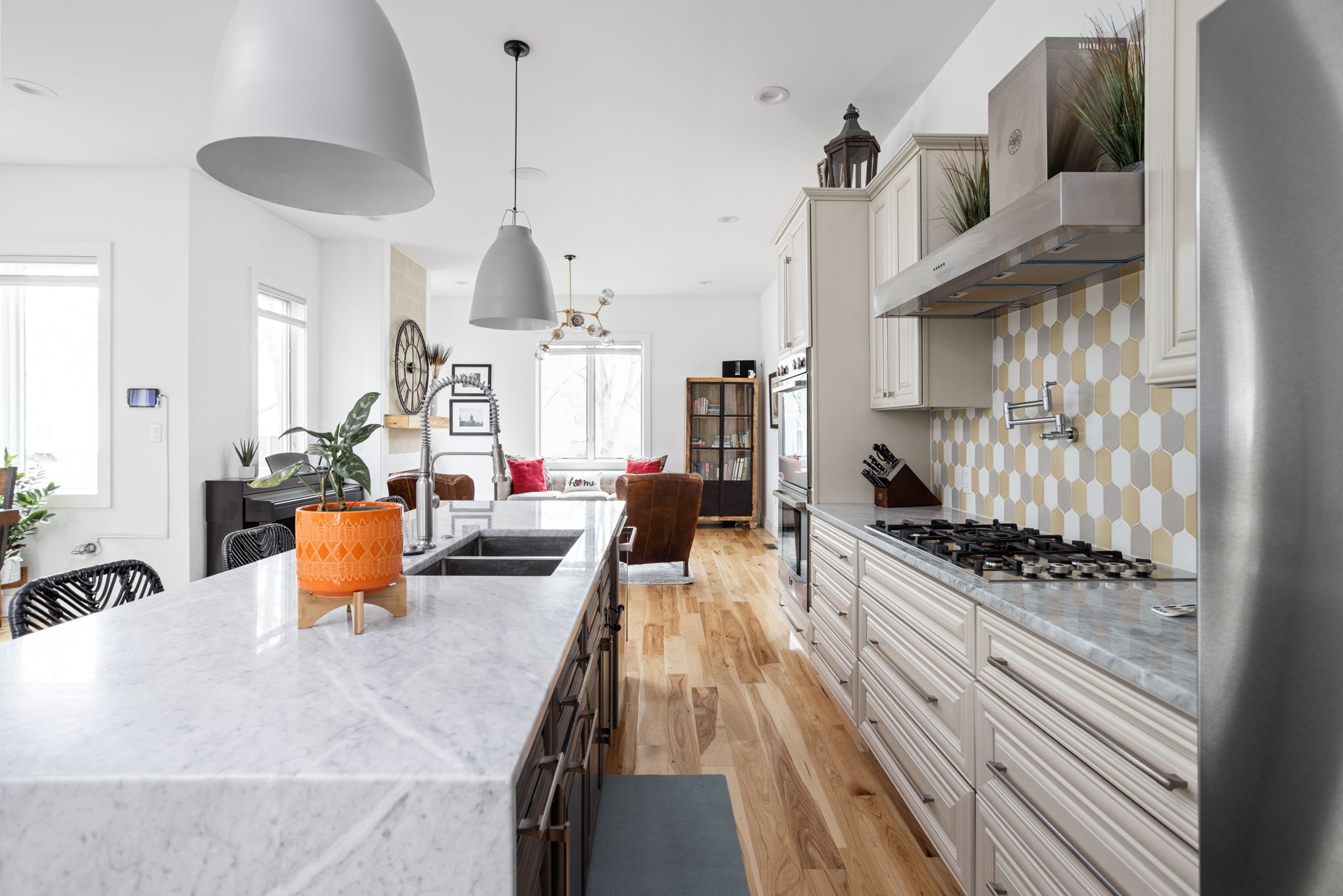Enjoy polished city living in this four bedroom, three and a half bath Springdale/Windsor Park neighborhood home. Light, open, and appealing first floor great room keeps the family and guests together. Built in Bluetooth capable speakers on main level and basement. The kitchen offers center island with waterfall sides, pot filler at gas cooktop, double ovens, upscale appliances, tiled backsplash, and walk-in pantry. Convenient upper laundry has so much natural light it’s a pleasure to do this chore. Finished basement with family room sizeable enough for home theater and game tables. The 218 foot deep lot has plenty of space for gardening, pets, firepit, deck, and backyard parties.