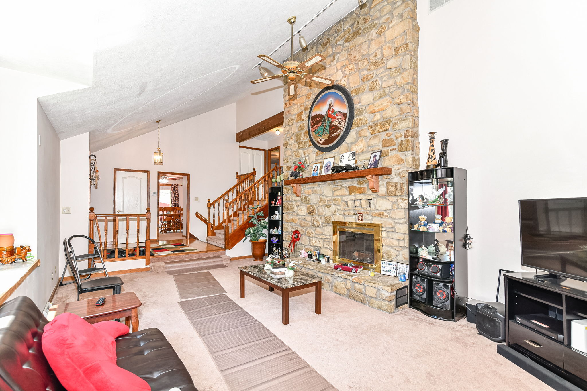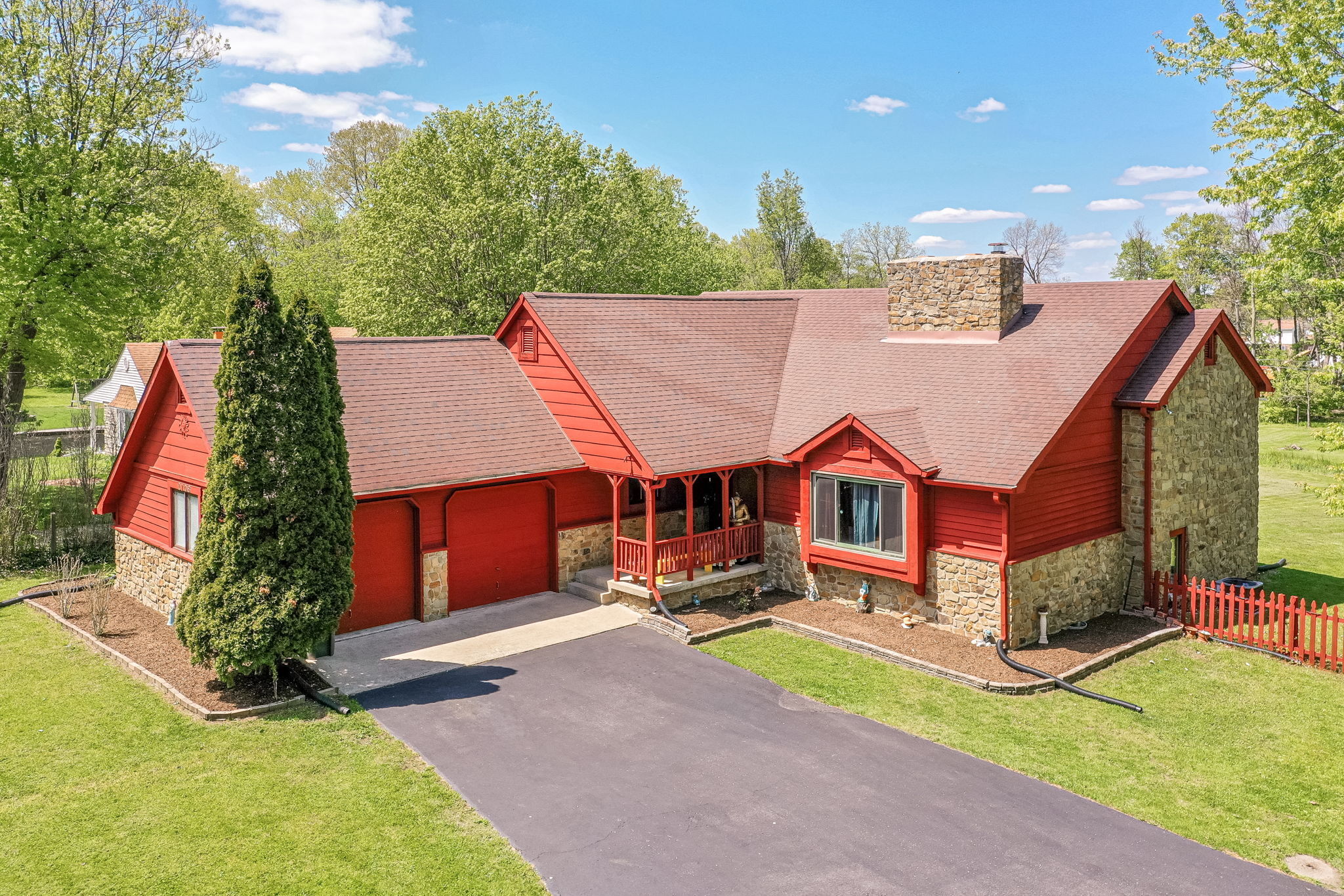 BEAUTIFUL 5 bedroom/4 bath multi level home situated on .77 acres with surrounding mature trees and a small creek & bridge in back yard. The home has a country feel yet is close to everything! Main level features great room w/vaulted ceiling, stone fireplace, spacious eat in kitchen w/ pantry (all applcs stay), formal dining room & half bath. Upper level features primary bdrm w/ full bath, double sinks & closets, exterior access (just missing a deck) Plus 2 additional spacious bdrms & full bath to share. Lower walkout level features family room, 1-2 bdrms + full bath, laundry room, 2nd fireplace & plenty of room to entertain. Other amenities include oversized 2 car garage, storage barn & No HOA!