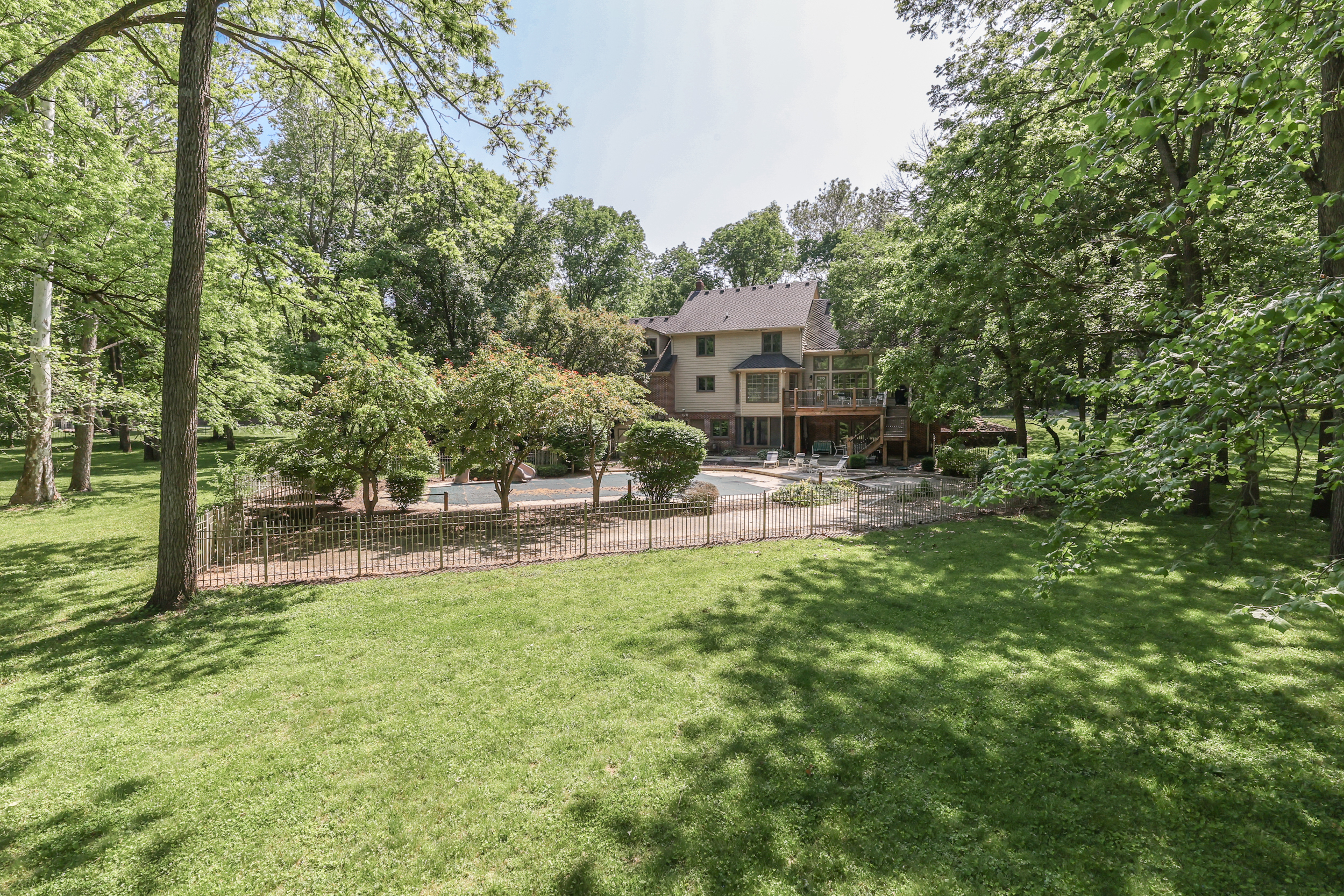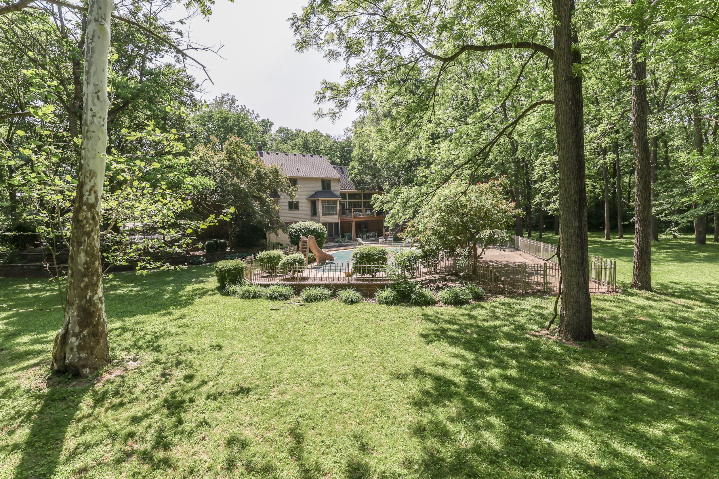 Stately GOLDEN GROVE Manse: 3 Acres w/ 85 Trees & Creek; 7600sqft Master-On-Main 2Story & WalkOut Bsmt; 4 BED 4.5 BATH; Enormous Heated Pool w DiveBoard & Slide; MAIN: KITCHEN & BRKFST~ Eat-In Gourmet, Granite Counter/Center Island, BltIn Refrig, IceMaker, Gas Range, BltIn Oven, Undermt Sink, TileBackSplash, CanLights; GRT Rm~ 14′ Coffered Ceiling, Fireplace; MASTER~ Fireplace, Sitting Area, Giant w/i closet; His/Her CLoset, Jacuzzi Tub, Sep Tile Shower, DualSink; DINING; LNDRY; UP: 2nd/3rd/4th BEDROOMS~ 2 FullBaths, Giant Closet; BASEMENT: WalkOut; FAM Rm~ FP; GAME/BILLIARD~ Wet Bar, Tray Ceiling; THEATER; EXERCISE~ Screen Porch; OFFICE; STORAGE/UTIL Rm~ Pool Area; ALSO: Covered Porches, 2 Hvac, Tankless H2OHtr, CentralVac; WrapAroundDeck