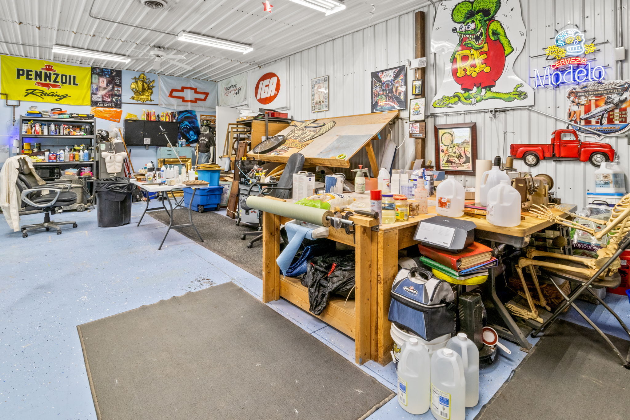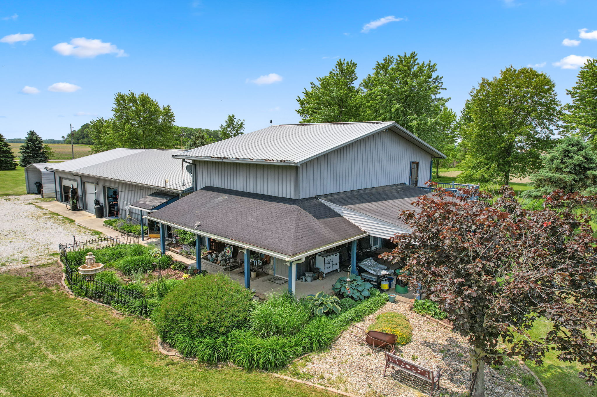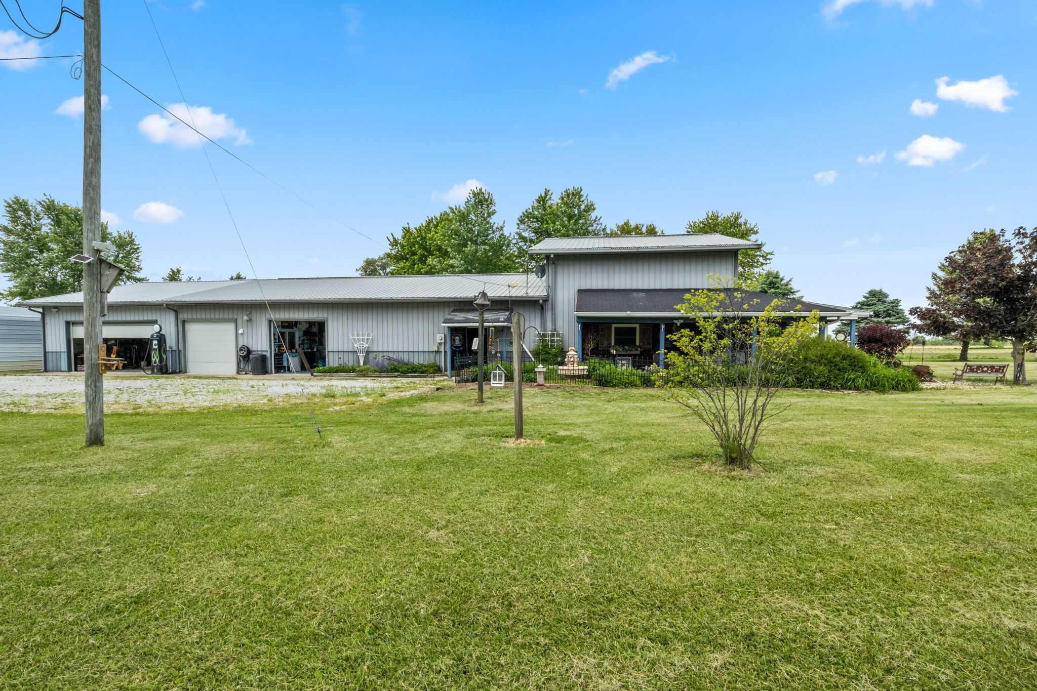 Hotrod or Racers Dream!1996 Barndominium on 3 Acres includes 1500 Sq ft Living area with 1000 on main and 500 upstairs with BR and full Bath on each level.Walk-in closet in Loft BR. Kitchen is on the main along with the living area.Shop area with 10 ft ceilings takes up 80 of the 104 ft giving 3500 sq ft of work area with an office, half bath and several different areas for the new buyer’s business. A separate area off the back for storage with 2 5HP compressors is 32×16. Shop has 2 natural gas furnaces,AC, and is insulated. Brick 1472 Sq ft 2 BR 1 Bath Ranch with elect Heat,AC, and 2-car oversized Garage is at entrance. Insulated and metal lined 40×30 Pole Barn with hanging electric heater on separate meter is also at entrance.
