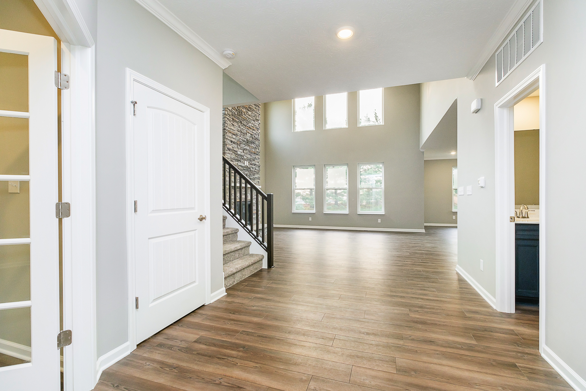 New home construction by Silverthorne Homes. Beautiful move in ready home with 3-car garage, back deck and unfinished basement. Main level features two-story great room with a coffered ceiling and full stone gas fireplace. Cafe eating area off the kitchen. Gormet kitchen has large center island with quartz countertops, staggered upper cabinet and stainless steel appliances. Upstairs laundry room with utility sink installed. Primary bathroom features double bowl vanity, separate shower and garden tub and walk in shower. So many more features to see for yourself!