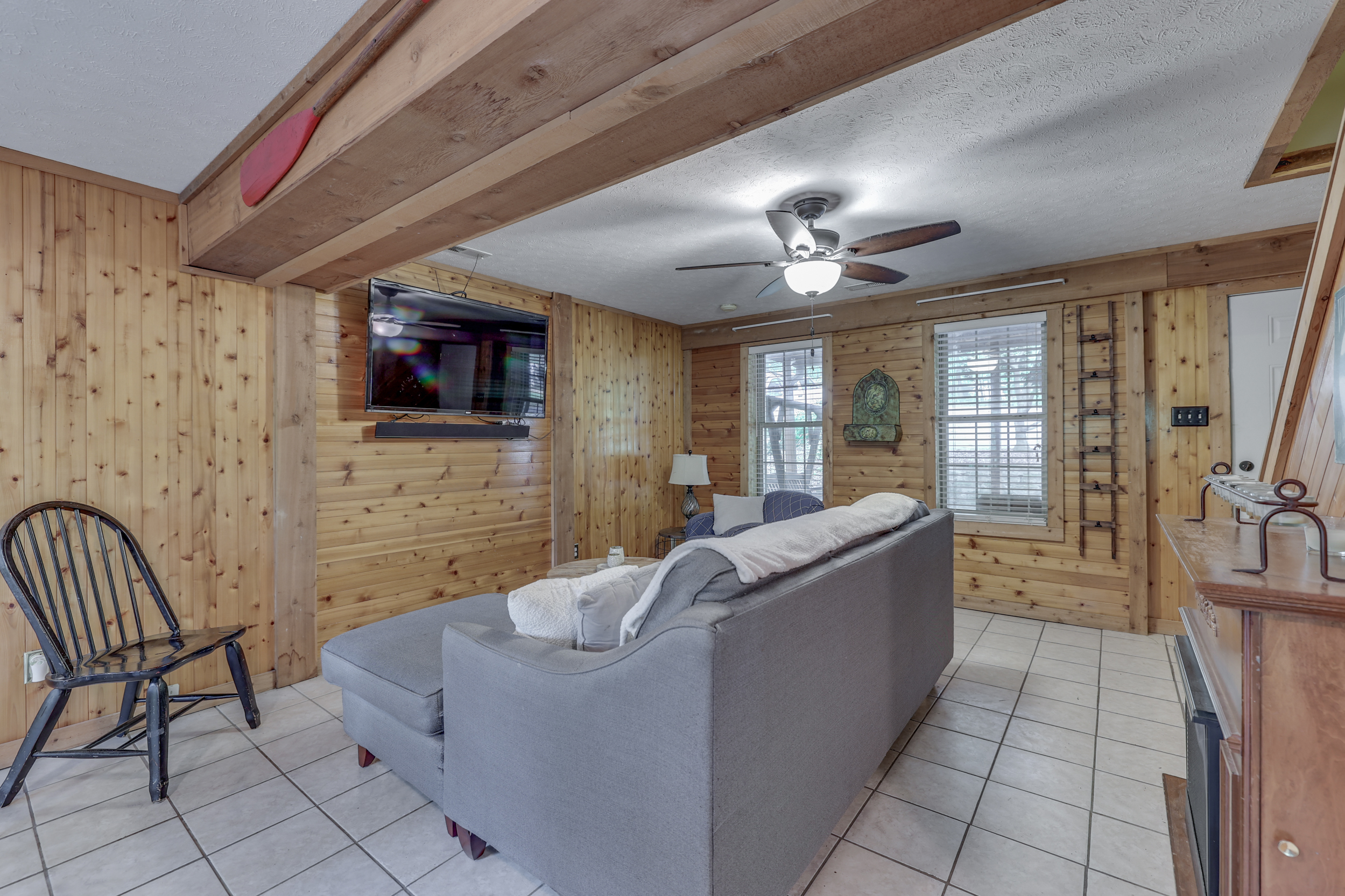 Sweetwater Lake cottage on quiet cove is the perfect choice! This charming home offers 2 bedrooms and 2 additional bonus rooms. Plenty of room!Your choice of the inviting full front porch or the full rear deck to take in all of Brown County’s nature. Main level kitchen is updated w/ open concept to the family room. Added charm w/ knotty pine accents coupled with the freshness of updates throughout. Bedrooms are spacious and roomy for family and your lake guests. The home and decks are recently stained and the asphalt driveway and lake path are recently paved. Party deck w/ boat lift and ample storage for all of your lake toys.