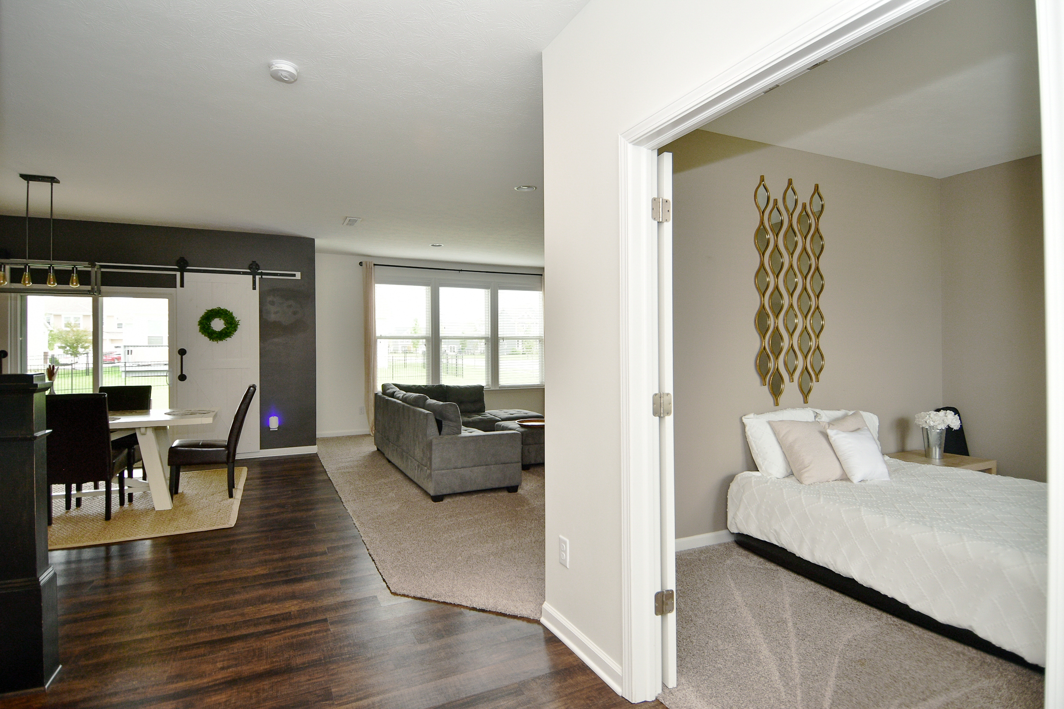 Minutes from Fishers! Welcome to this GORGEOUS & SPACIOUS home in the much desired HSE school district! Master suite boosts TWO HUGE W/I closets and amazing W/I shower. 4th bedroom on main plus incredible upstairs loft could easily be converted into a 5th bedroom. Open floor plan with lots of high end updates including: gourmet kitchen w/ upgraded cabinets, appliances, DBL ovens, granite, engineered hardwood floors, upgraded carpet, garage bump out, 2in faux wood blinds and Hardieboard siding. Slide open the beautiful barn doors to reveal a cozy covered back porch, perfect for entertaining & the large room/formal dining room off the kitchen is drenched with sunlight. Community pool and playground too! Amazing location, close to everything!