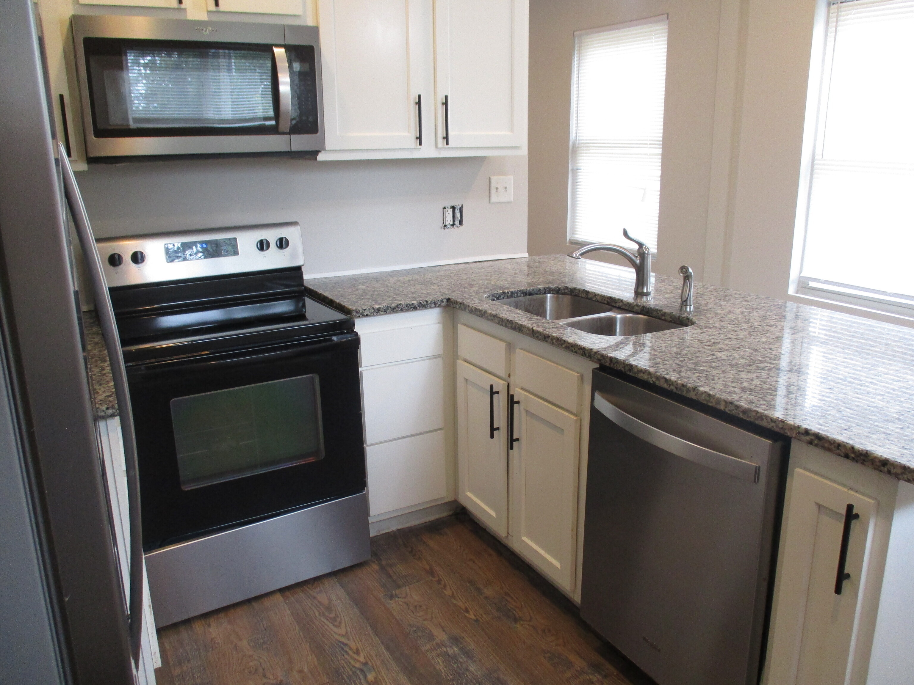 Updated 3 bedroom 1 1/2 bath duplex. Main level features a large living room area with solid surface floors. Kitchen has updated counters, white cabinets and appliances. Upstairs find 3 bedrooms and a spacious bathroom This home comes with window air units in each bedroom. Location is prime with easy access to downtown.