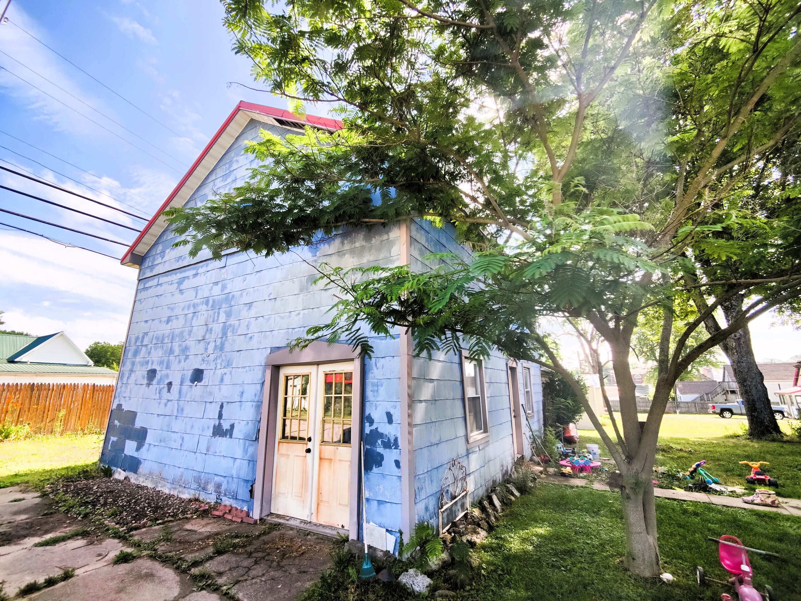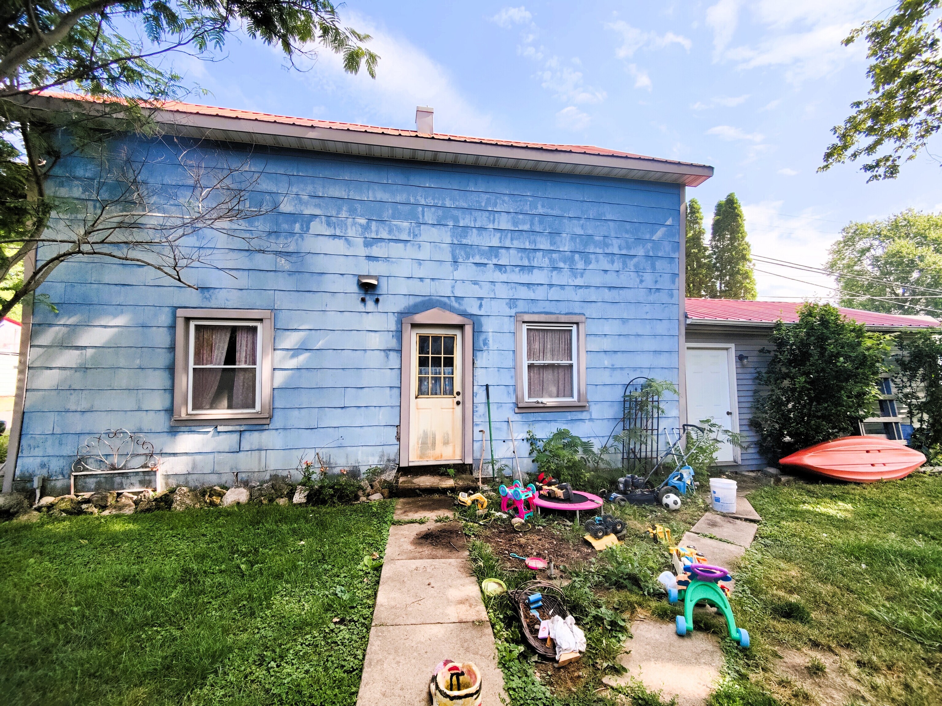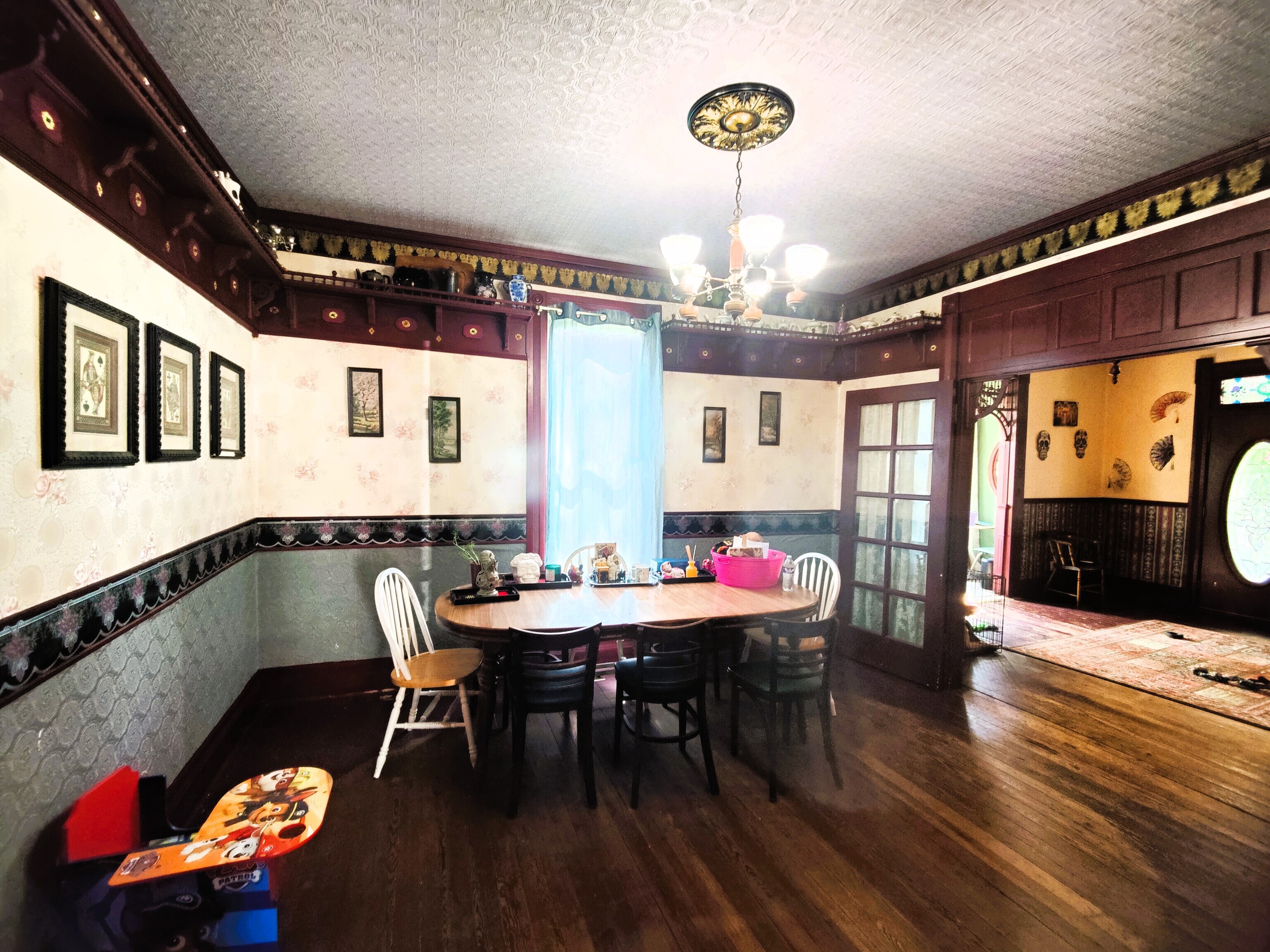 Space, space, and more space over 3100 sq ft. Victorian home built in 1860 as per local historians. There are 3 bedrooms upstairs and 4th downstairs that could also be an office. The laundry room adds a 3rd full bath with two full baths on the upper floor. There is also a half bath on the main floor. There is original hardwood flooring (heartwood pine), woodwork, dual (front and back) staircases, and French doors separating the parlor (entry/foyer) from dining room. Earlier upgrades include the electrical, plumbing, windows, baths and kitchen. There is also a detached garage attached to storage shed to provide storage or workspace. Can you just imagine yourself on the wrap around porch sipping your drink owning this local landmark.