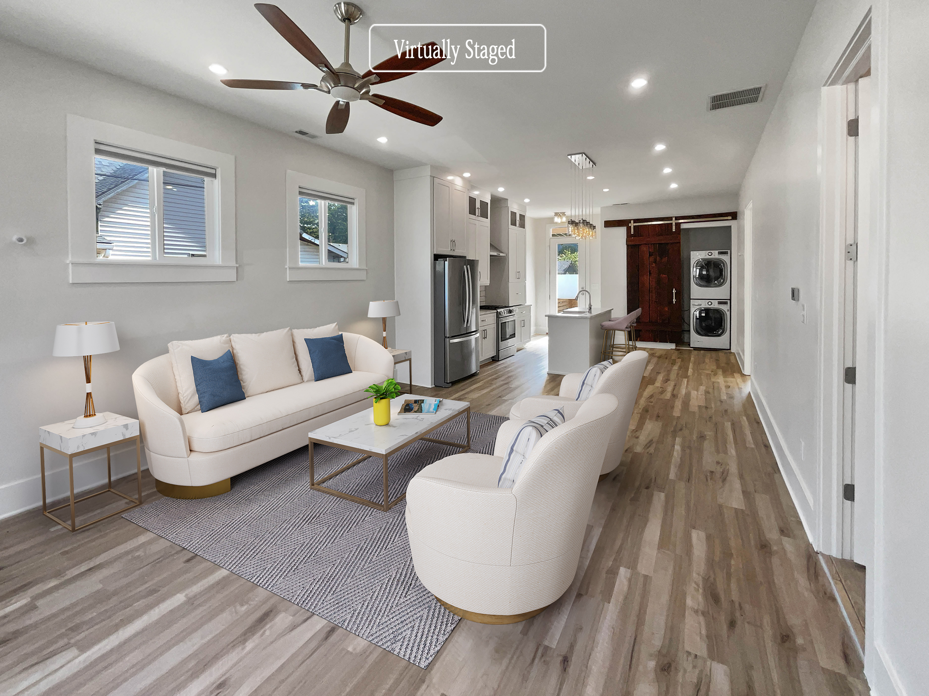 This stunning property is the perfect blend of modern and classic style. With a natural color palette throughout, this home offers a warm and inviting atmosphere. The kitchen boasts a center island, a nice backsplash, and plenty of counter space. The master bedroom features a walk-in closet and en-suite bathroom with a separate tub and shower, double sinks, and good under sink storage. The other rooms offer flexible living space for any need. Outside, the backyard is fenced in and includes a sitting area. Fresh interior paint and partial flooring replacement in some areas make this property move-in ready. This home is sure to impress and won’t last long!