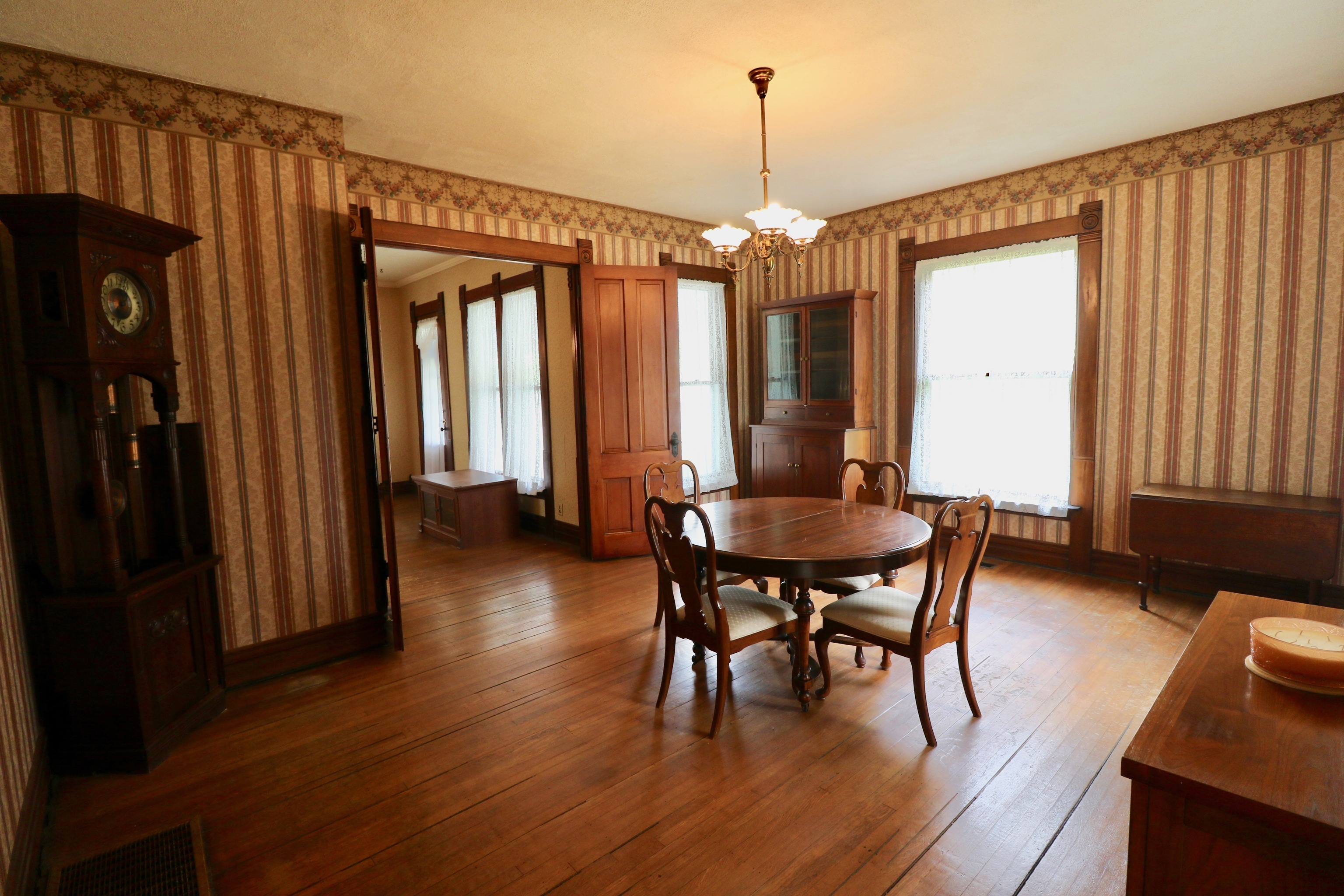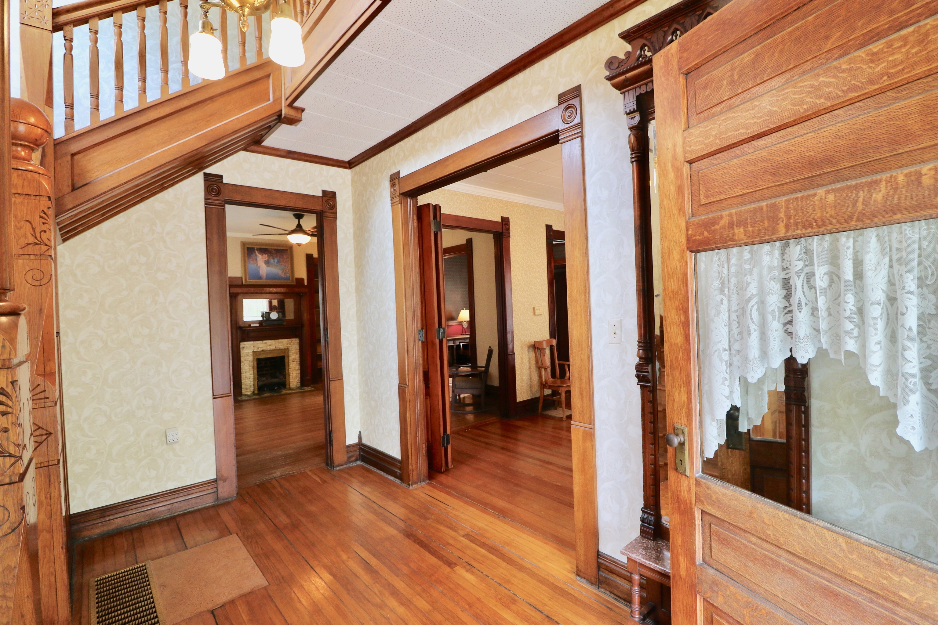 Lovingly cared for 4 bdrm/2 full ba home awaits a family that appreciates the craftsmanship of yesteryear & small town living! Beautiful foyer adorned w/ original trim work & grand staircase w/ which to greet your guests. Hrdwd flrs throughout the main level living, dining, office, & hearth rms. Spacious 21’x12′ kitch w/ all SS appl included, ventless gas log fireplace flanked by bookcase, newly remodeled full baths on each floor, primary bedroom suite graced w/ natural light, an abundance of storage throughout w/ walk thru closets, & charming built-in cabinetry. The owners have replaced all roofing, gutters, dual HVAC units, waterproofed bsmt, installed new water softener, & MORE! 2 car detached gar w/ workshop & loft storage. City utils.