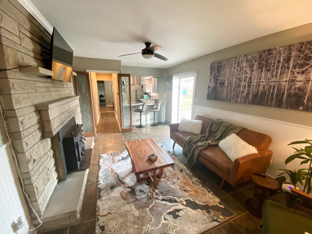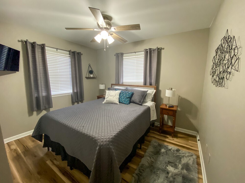 Location, location, location. This is currently an AirBnB producing property. New flooring in the living room, and bedrooms. New fixtures and ceiling fans. Barn for storage. Huge backyard.