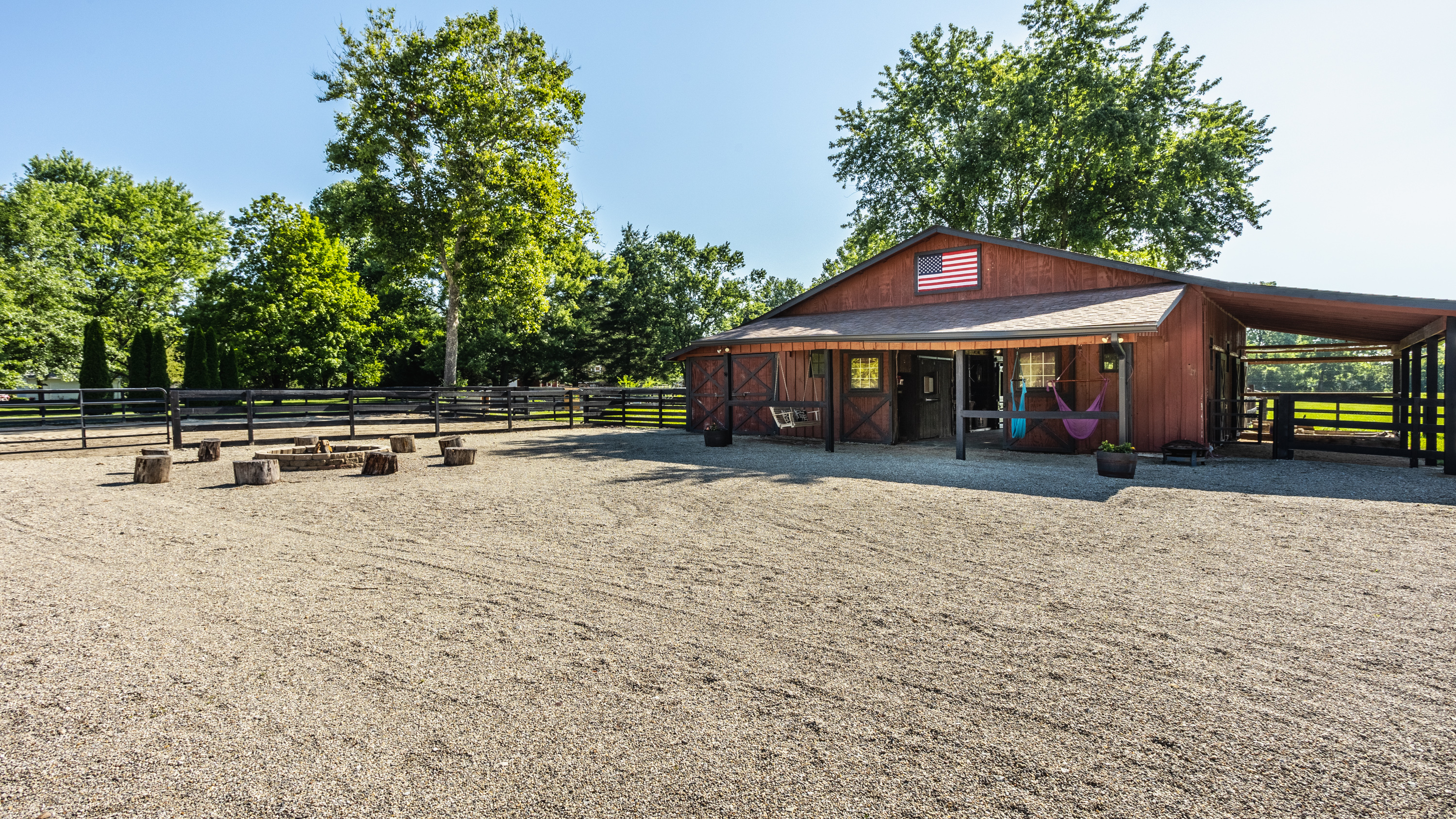 Unbelievable opportunity to own a slice of paradise. Situated on 4 acres with beautiful trees, 2 professional riding rings accompanied with a 4 stall horse barn with heated tack room and independent water source. This spacious barn opens up to a sprawling 2 acres of land. Inside the home, an open concept boasts a large kitchen with a gorgeous gas fireplace, dining room, and vaulted ceiling grand living room with 2nd fireplace and beautiful built-ins. The exquisite owner’s suite on the main is complimented by double barn doors, claw foot tub, vaulted ceilings, and heated floors in the en-suite. 5 miles to downtown Zionsville, 3 miles to Trader’s Point School, 6 miles to Brebuf, 10 minutes to Indianapolis.
