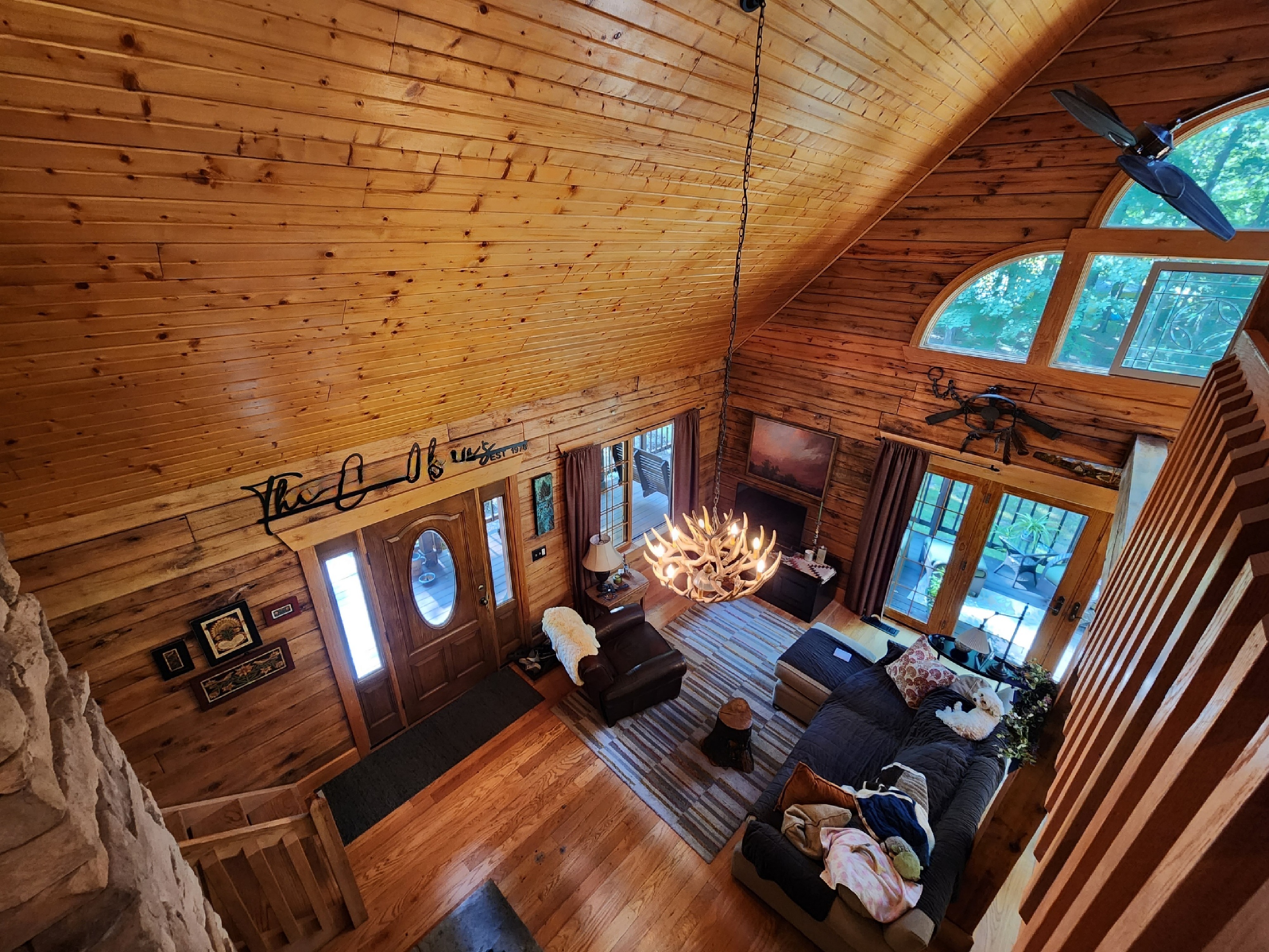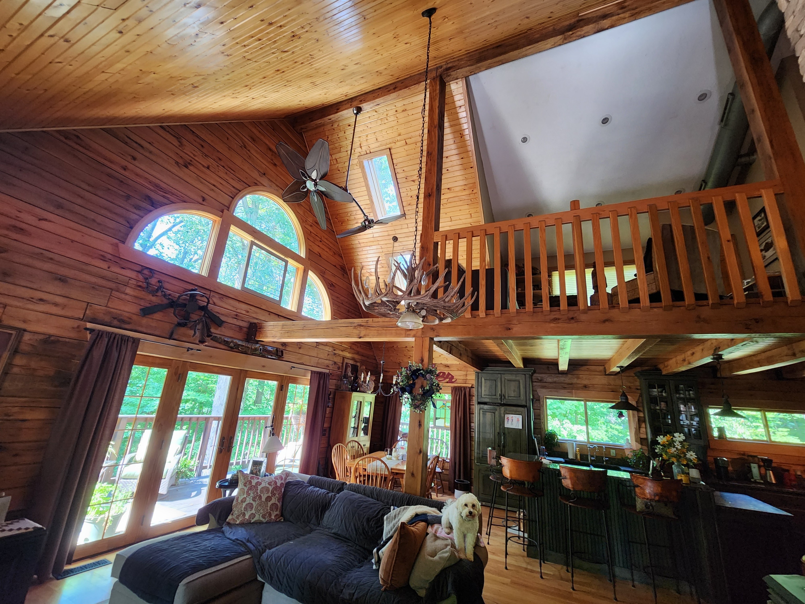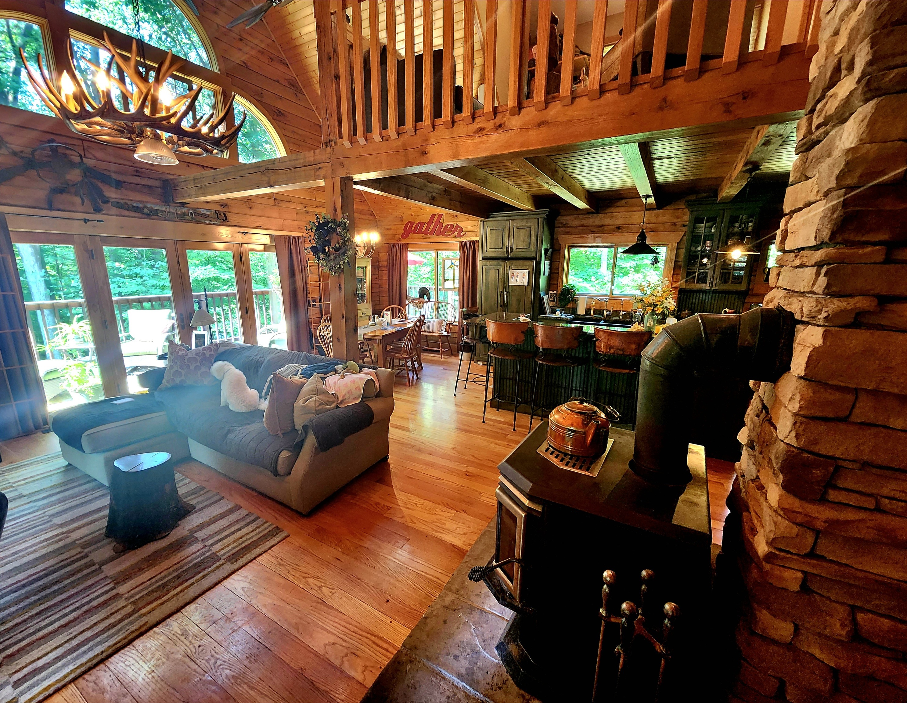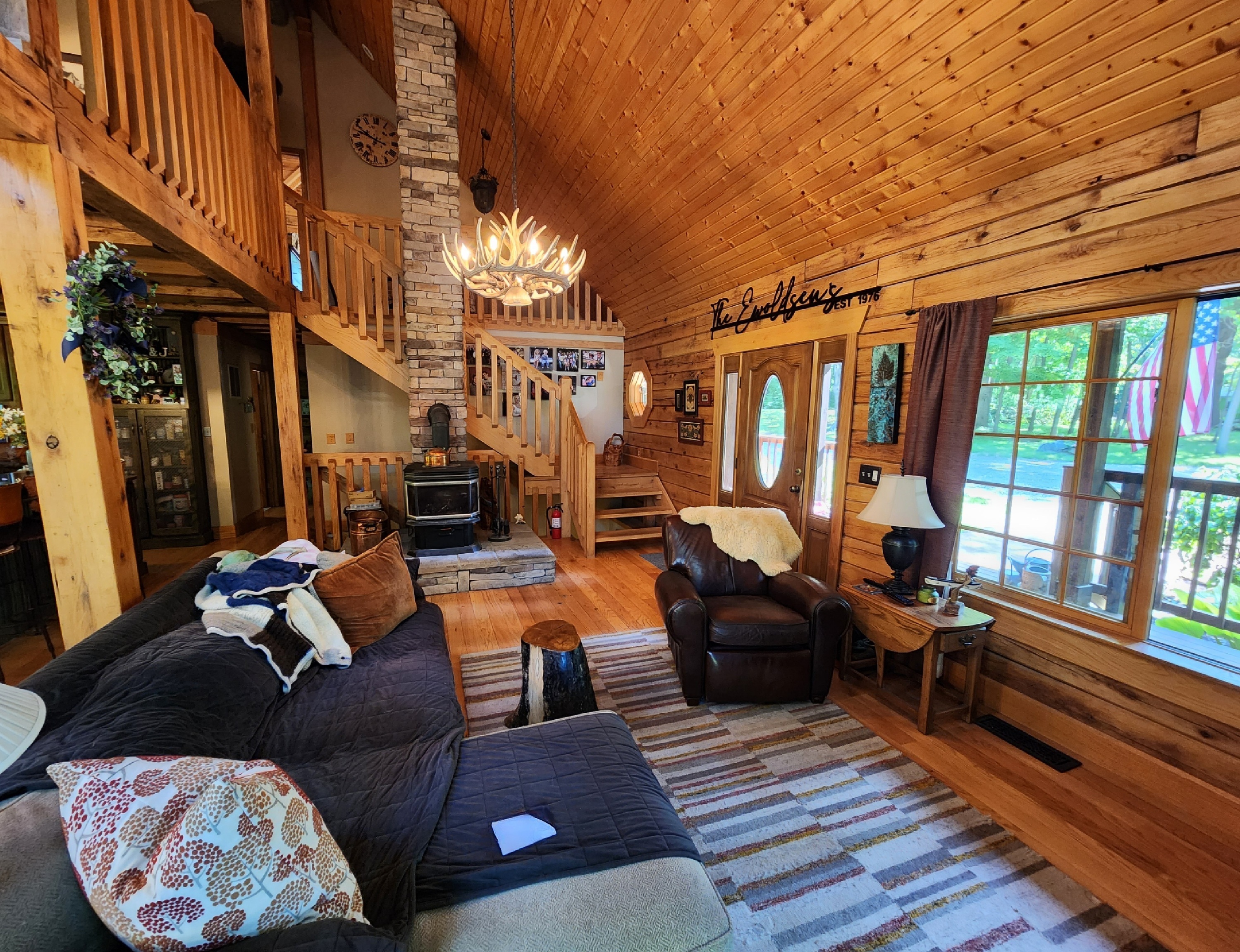 Immerse yourself in the luxurious and serene lakeside living experience with this custom-built Gastineau Log home that sits on almost one and a half acres of land. Indulge in the breathtaking views and easy access to the water. Unwind and relax on the spacious wrap-around porch, or entertain your guests in the upscale kitchen that features top-of-the-line cabinetry, copper light fixtures, and a sink. The first floor includes a cozy bedroom, a bathroom, and a laundry room in addition to the kitchen, dining, and living areas. The upper level welcomes you with a loft area and a bedroom that has an en-suite bathroom with a claw-foot tub and shower, and a walk-in closet. The lower level provides a walkout basement, extra living space, a bathroom, storage, a kitchenette, and stunning views. The property also boasts an RV shelter, a covered entertaining area, and the possible availability of a floating dock and/or sea wall. The subdivision initially authorized seawalls, and space should still be available. This home and property have so much to offer year-round!