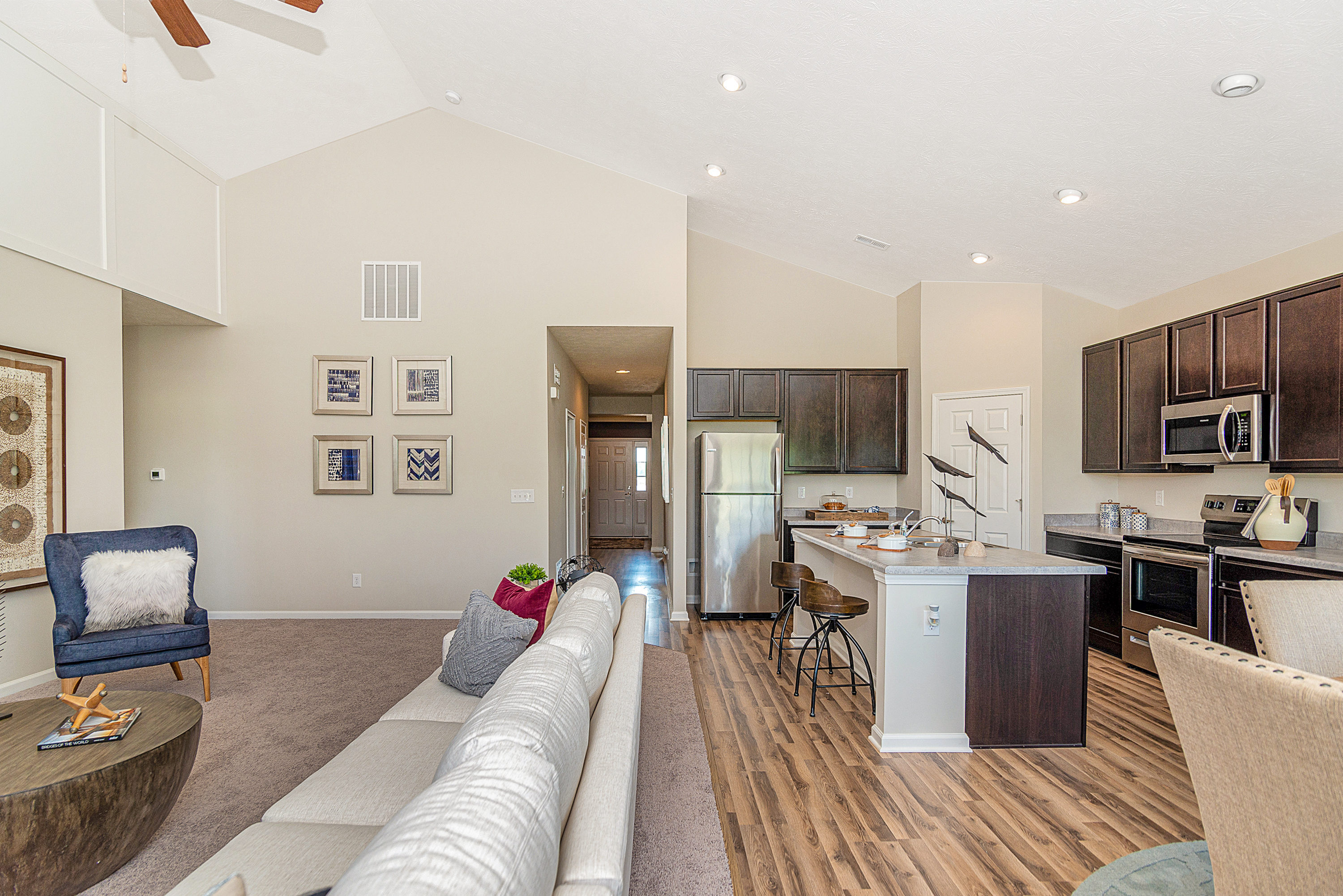 Brand new Chesnut ranch floorplan by Arbor Homes. This home features selections listed below. Come see additional upgrades for yourself. 9′ First Floor Walls Vault to Flat Ceiling in Common Area Electric Furnace & 50 gal Electric Water Heater Water Softener Bypass Deluxe Garden Bath with Separate Garden Tub and Shower in Primary Bathroom Double Bowl Vanity in Primary Bathroom 9″ Deep Stainless Steel Kitchen Sink 42″ Kitchen Cabinets with Small Colonial Crown Cabinet Above Refrigerator H-Frame Kitchen Island Quartz Countertops Throughout Stainless Steel Electric Range, Microwave, and Dishwasher