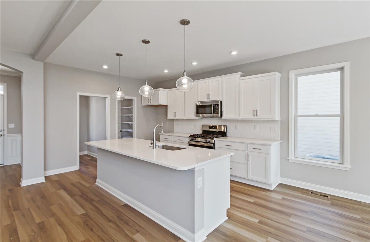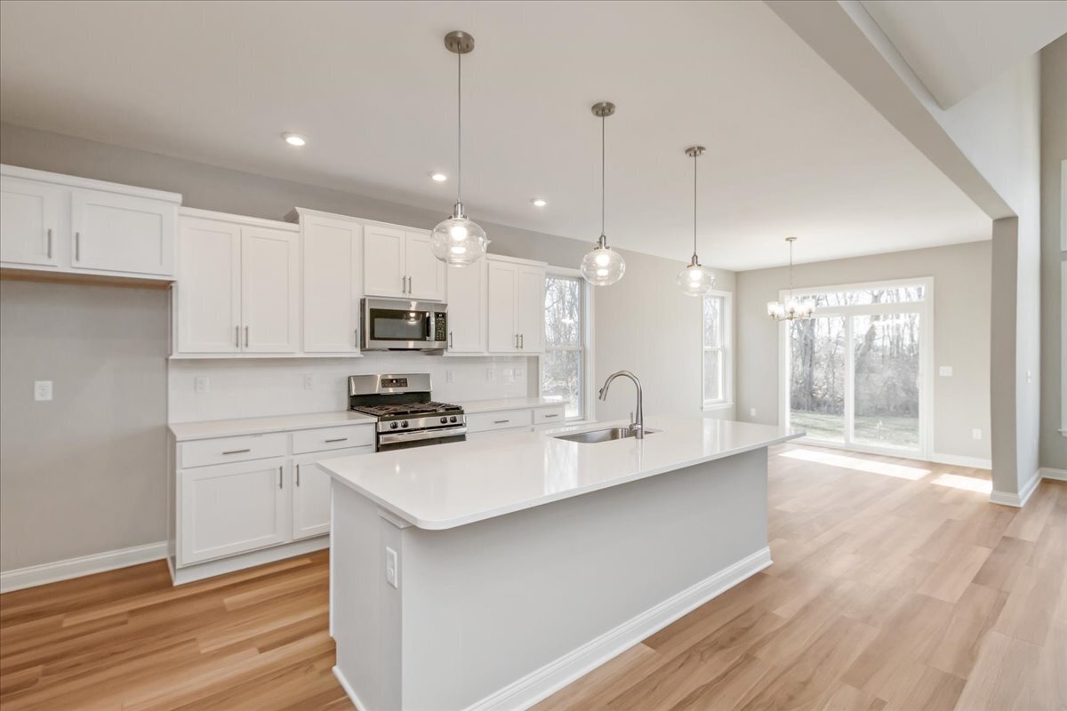 Gorgeous new Avery Cambridge Cottage plan by Fischer Homes in beautiful Chatham Hills featuring an open concept design with an island kitchen with stainless steel appliances, upgraded multi-height maple cabinetry with soft close hinges, quartz counters, walk-in pantry, pocket office walk-out morning room to the large patio & all open to the soaring 2 story family room with corner gas fireplace. Take a few steps down to the included rec room. Homeowners retreat is on its own level with an en suite that includes a double bowl vanity, soaking tub, separate shower and huge walk-in closet. The laundry room is also on this level. There are 3 additional bedrooms and a centrally located hall bathroom. Basement with full bath rough-in & 2 car garage