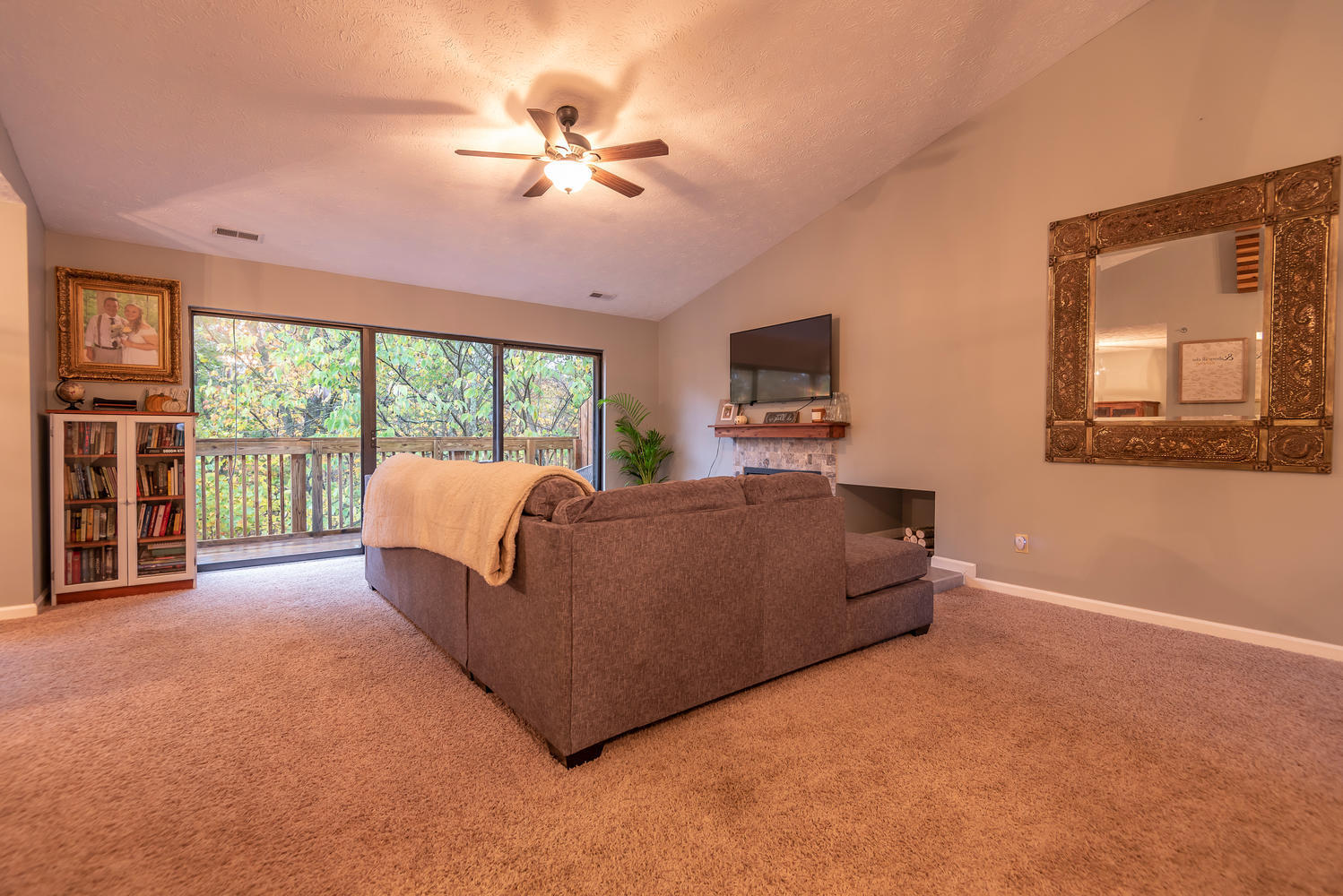 Located on Lake Monroe, this impressive one level two bedroom, two bath contemporary at Eagle Pointe Golf Resort is ideal for anyone looking for carefree living in the woods. New in 2021 – dishwasher and HVAC system with a 15 year transferrable warranty. New in 2020 – washer and dryer, kitchen laminate, bathroom tile. Roof was replaced in 2022. Relaxing wooded views off the private deck as well as the windows make this a property you won’t want to leave. Owner’s bedroom has an ensuite bath and large walk in closet. An electric grill and tandem kayak are included.