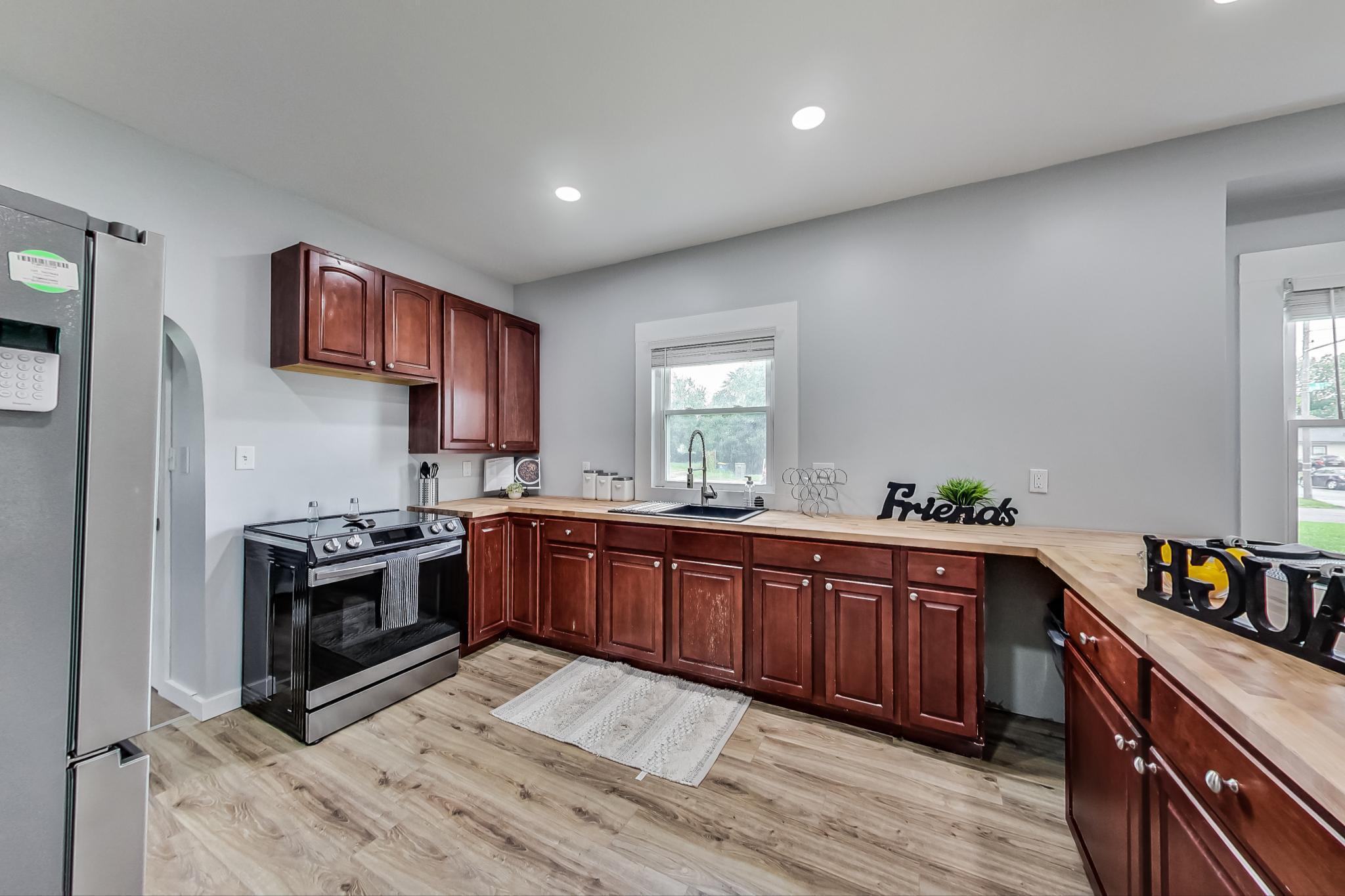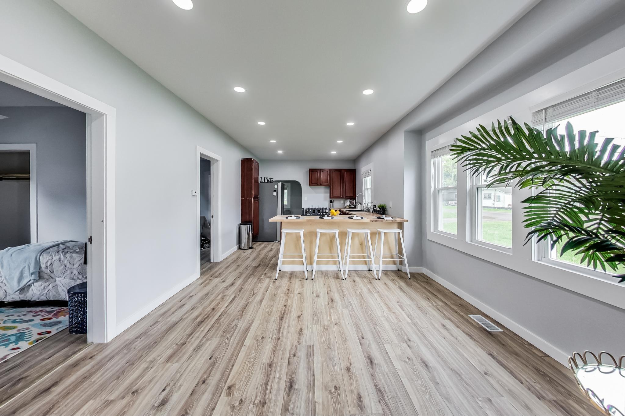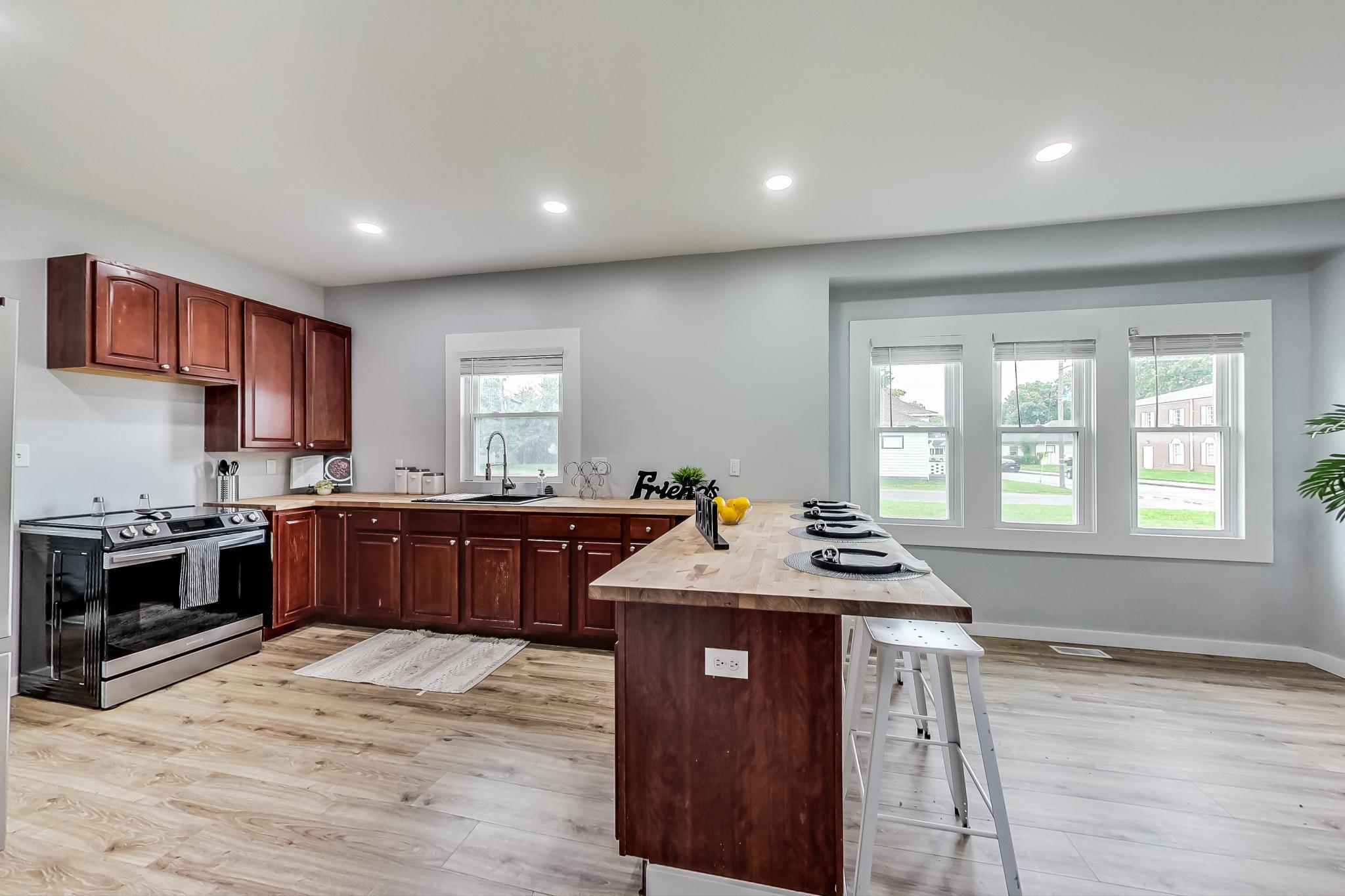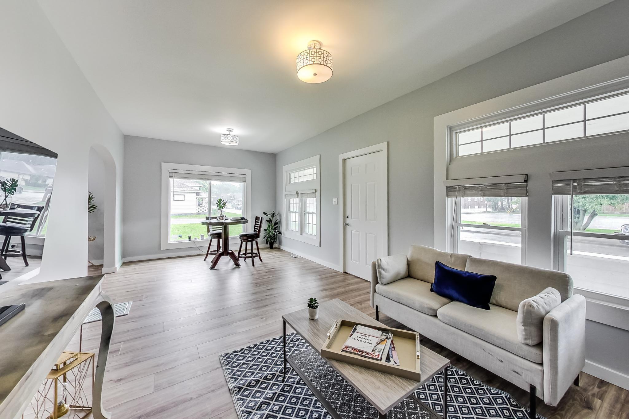 Welcome Home!! 2 BEDROOMS and 1 FULL BATH, MAIN floor laundry, and a BASEMENT!! NO HOA! NO DUES! You will love the Chef’s Kitchen complete with 5 Burner Stove, Butcher Block Peninsula, Tall Cabinets and Stainless Steel Appliances! Enjoy eating in a dining room that allows light in and plenty of space for gatherings. This home is perfect for first time homeowners or someone who would like to have the primary bedroom on the first floor. on’t be fooled by how small the outside looks, this Bungalow is surprisingly spacious and ready for years of family memories! Enjoy summer rain showers on the country front porch and the peace of being nestled in a private setting yet less than 10 minutes to groceries, outlets, and Lucas Oil Stadium.