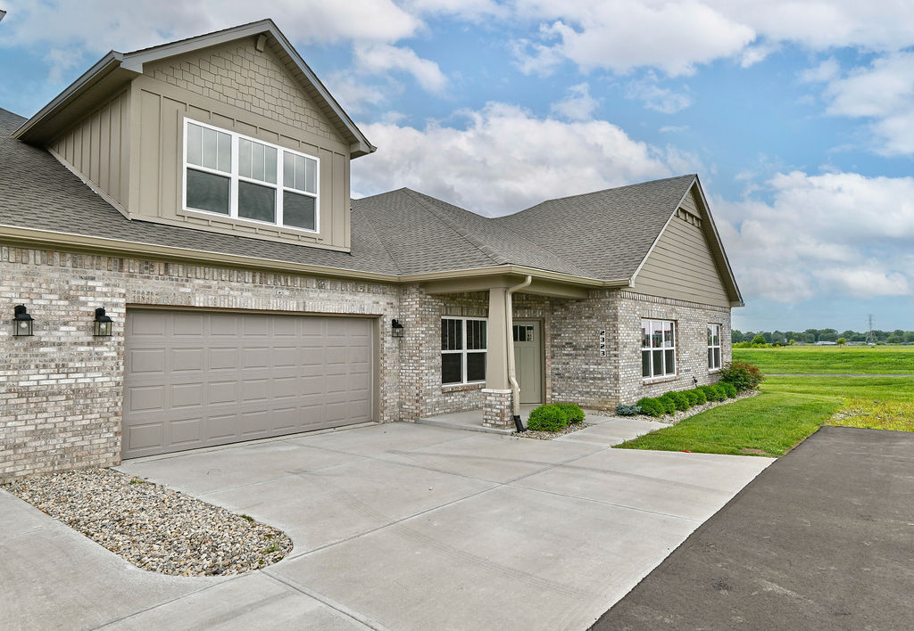 Welcome to Bridgenorth Homes Villas at Derby Run in Shelbyville. This maintenance free community has so many amenities to offer including a community pool, tennis/basketball courts, clubhouse & walking trails. This Devon floor plan has just over 2000 sq ft of living space with plenty of quality features such as: quartz countertops, large island, walk-in-pantry, SS appliances, maintenance free vinyl flooring, tray ceilings, custom wainscoting, and more! The upstairs bonus rooms offers additional living space and a full bath for guests or family. Nearby you will find plenty of shopping, restaurants and the Indiana Live Casino! Check out this stunning home today!