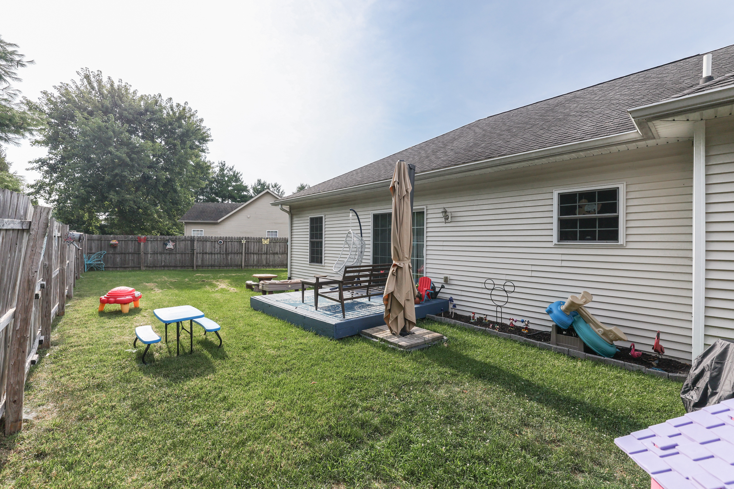 3 BEDROOM + 2 FULL BATH RANCH! 1,562 Sq. Ft.! All Brand New Carpet! Open-Concept Floorplan w/Large Great Room + Lovely Kitchen w/Lots of Cabinet Space & Big Breakfast Area; Primary Bedroom w/Dbl Sinks + Full Shower Stall + Big Tub + Walk-In Closet; 2 Addt’l Great-Size Bedrooms; 2nd Full Bath w/Dbl Sinks; Laundry Room w/Cabinets; Sliding Doors leading Nice Private Backyard to Enjoy w/Deck + Privacy Fence + Mini Shed! Great Location in Desirable Neighborhood! Heat Pump & Furnace Serviced! New Compressor & Evaporator!