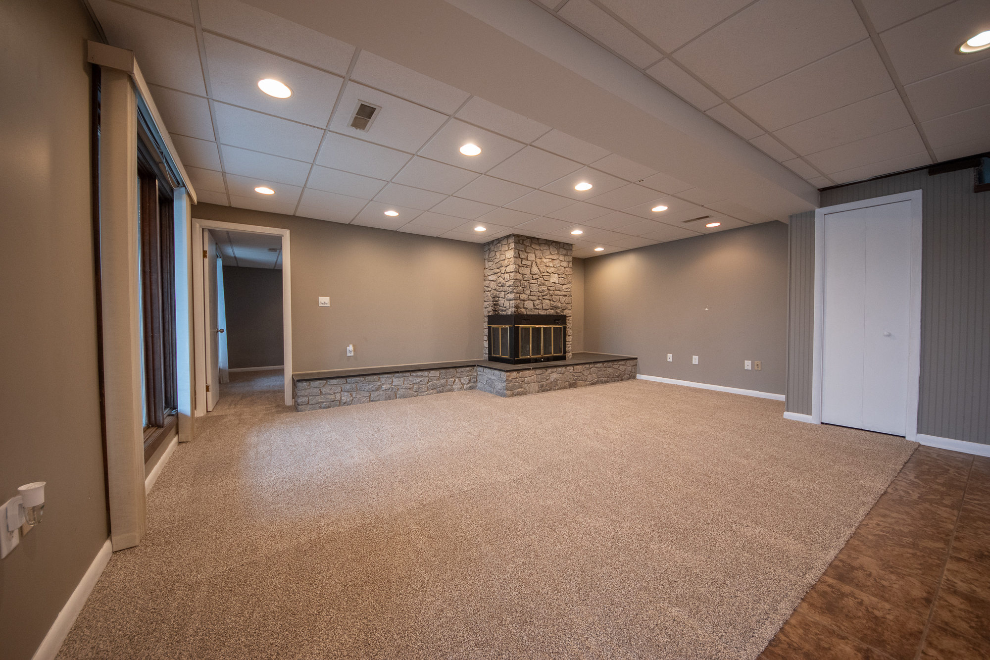 New carpet in basement and paint on main level! Well maintained 4bd 2ba ranch with walkout basement and beautiful views of North wood lake. Main level features cathedral ceilings in family room and opens to an updated kitchen with convenient access to deck making it perfect for entertaining. Main level also features 3 bedrooms and hardwood flooring throughout. Walkout basement has 4th bedroom, living room with wood burning fireplace and bar area. Recent updates include deck, covered patio,roof, gutters, driveway and garage door.