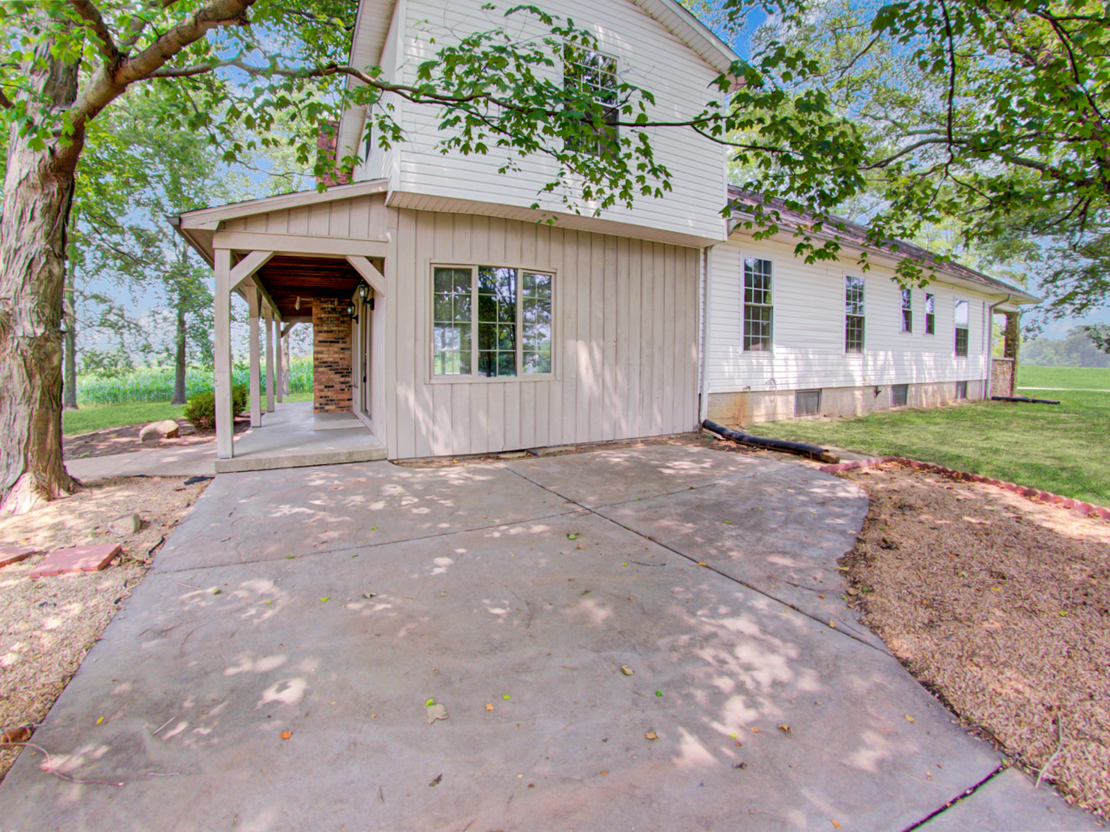 Country living at it’s best. This is a 4 bed 1 bath with 2 fireplaces with 1.4 acres in the country. As you walk in front door you are greeted by large living room with fireplace. Off the living room is 2 beds with jack and jill bath. One bedroom has 10×8 closet. At the back of living room is an updated kitchen with solid surface counters and tile floor. Off the kitchen is family room with another fireplace and mini bar under the stairs. Upstairs is two more bedrooms. These rooms are baseboard and window unit heated and cooled. Sit outside and enjoy the peace and quiet while sitting by the fountain. Fun fact: this place use to be a clubhouse for golf course in 1920s.