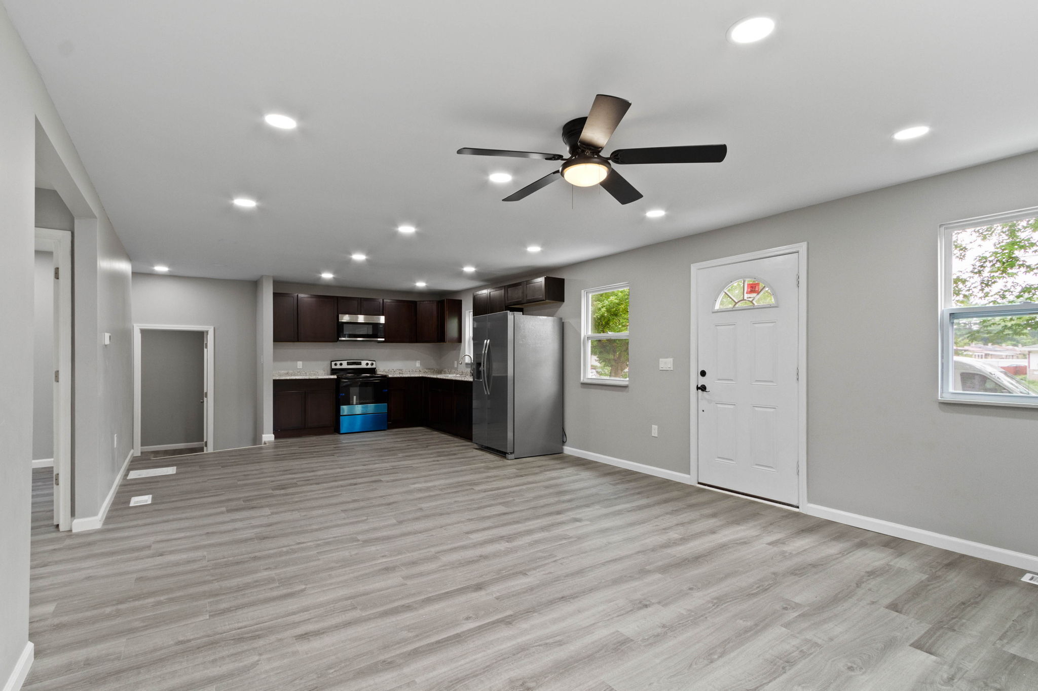 Welcome to your dream home! This stunning property has it all. Newly renovated kitchen with brand new cabinets, countertops, new appliances, and a seamless open concept kitchen. This home is completely renovated, with new windows, new roof, new soffits fascia, gutters, and new HVAC system! New James Hardy siding & fresh paint outside/inside home. Brand new luxury vinyl plank flooring inside and beautifully tiled bathrooms. The finished basement offers a large guestroom with its own bathroom. The property has 2 lots, a massive backyard, and lots of privacy and space for outdoor activities. Plus, a huge 1000+sqft multi-purpose workshop/3-car garage/outbuilding adds even more functionality. Don’t miss this opportunity to own your dream home!