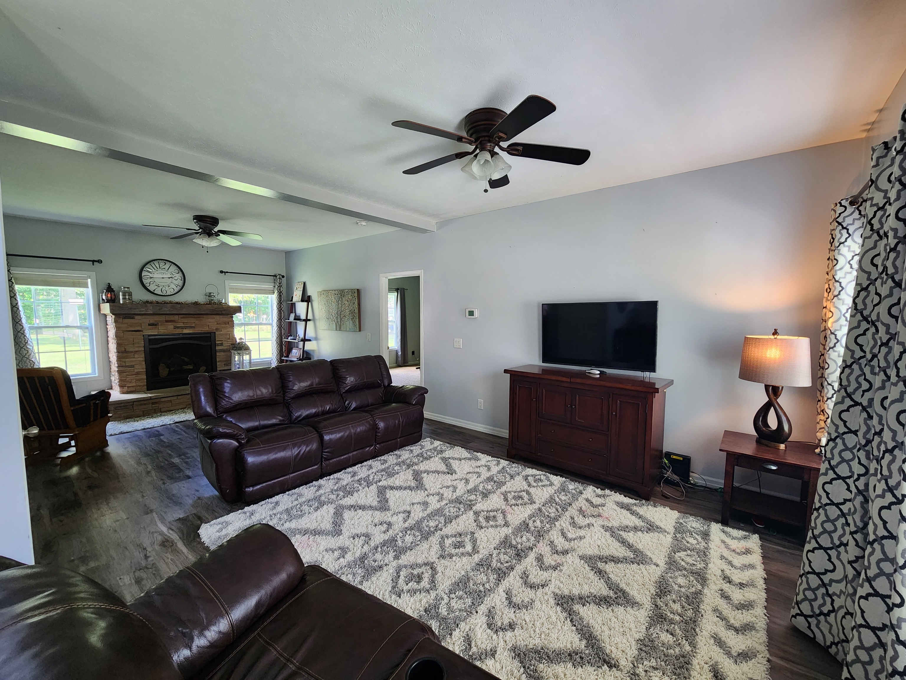 This grand home features five bedrooms and 2.5 bathrooms! You will love the amount of closet space in each of the bedrooms. Main floor primary bedroom with ensuite bath complete with closet storage. The basement provides plenty of extra storage and additional recreational or living space if desired. No more worrying about the weather when carrying in those groceries. Nice attached 2.5 car attached garage! Keep extra warm on those cold nights with the gorgeous fireplace insert and dual zone heating. Relax after a long day on one of your two decks (the back deck is composite decking!).