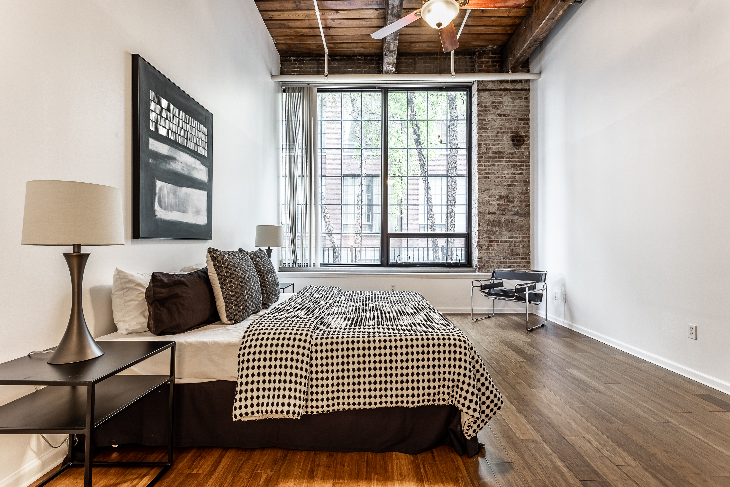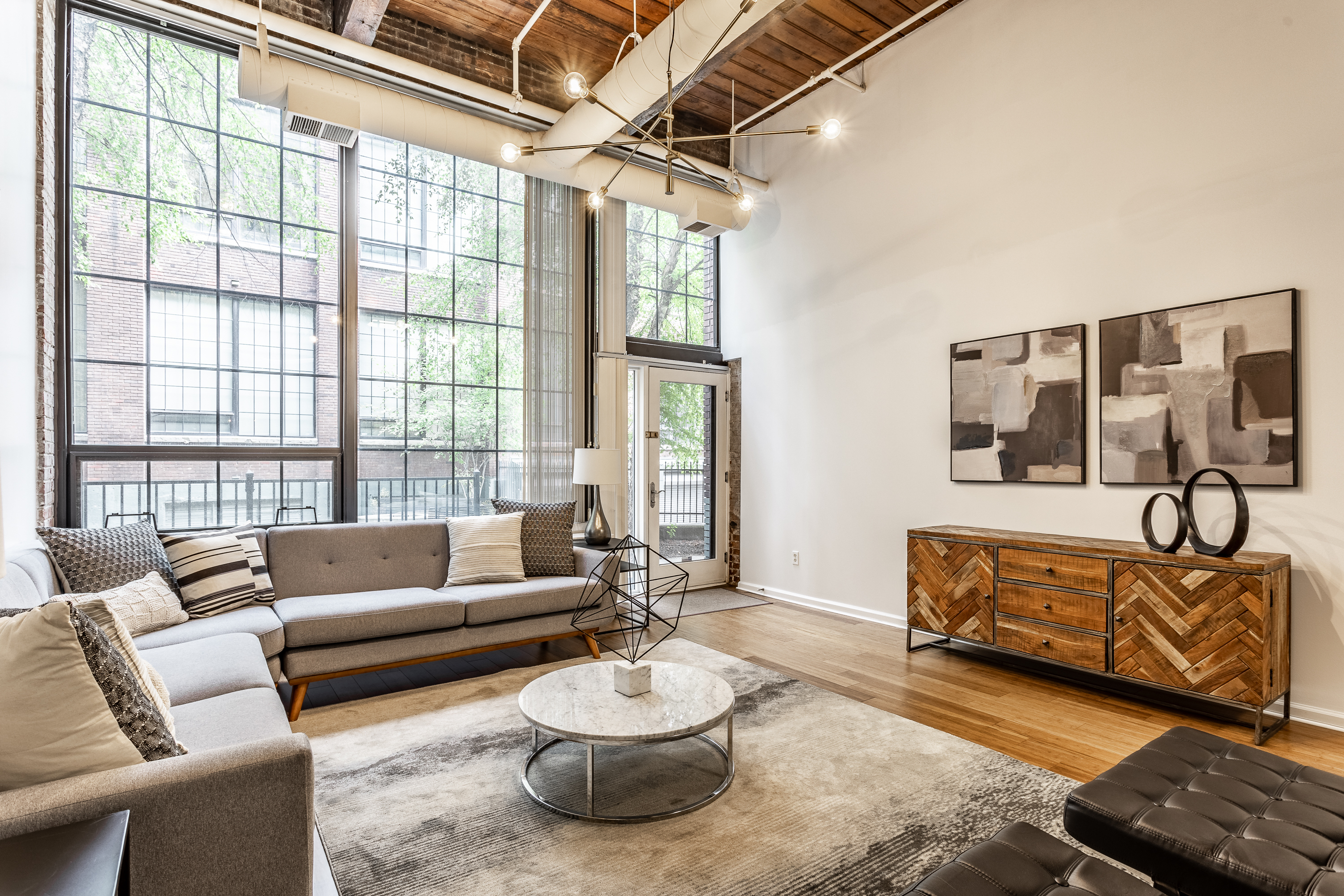 Quintessential jewel box of a condo located in Mill 9! This tastefully updated unit makes this a true anomaly for the price point & PRIME location. As you step inside this loft, you’ll be greeted by 15-foot ceilings, lavish finishes, huge windows & exposed brick! Conveniently located on the first floor, this unit offers easy access from the gated garden, providing a townhouse-style living experience. Alternatively, you can enter through the inside of the building, which adds flexibility & convenience. New HVAC! The location does not get much better – situated within walking distance of the vibrant Bottleworks District & Mass Ave, this condo has the BEST location surrounded by countless restaurants & the cultural trail at your front door!