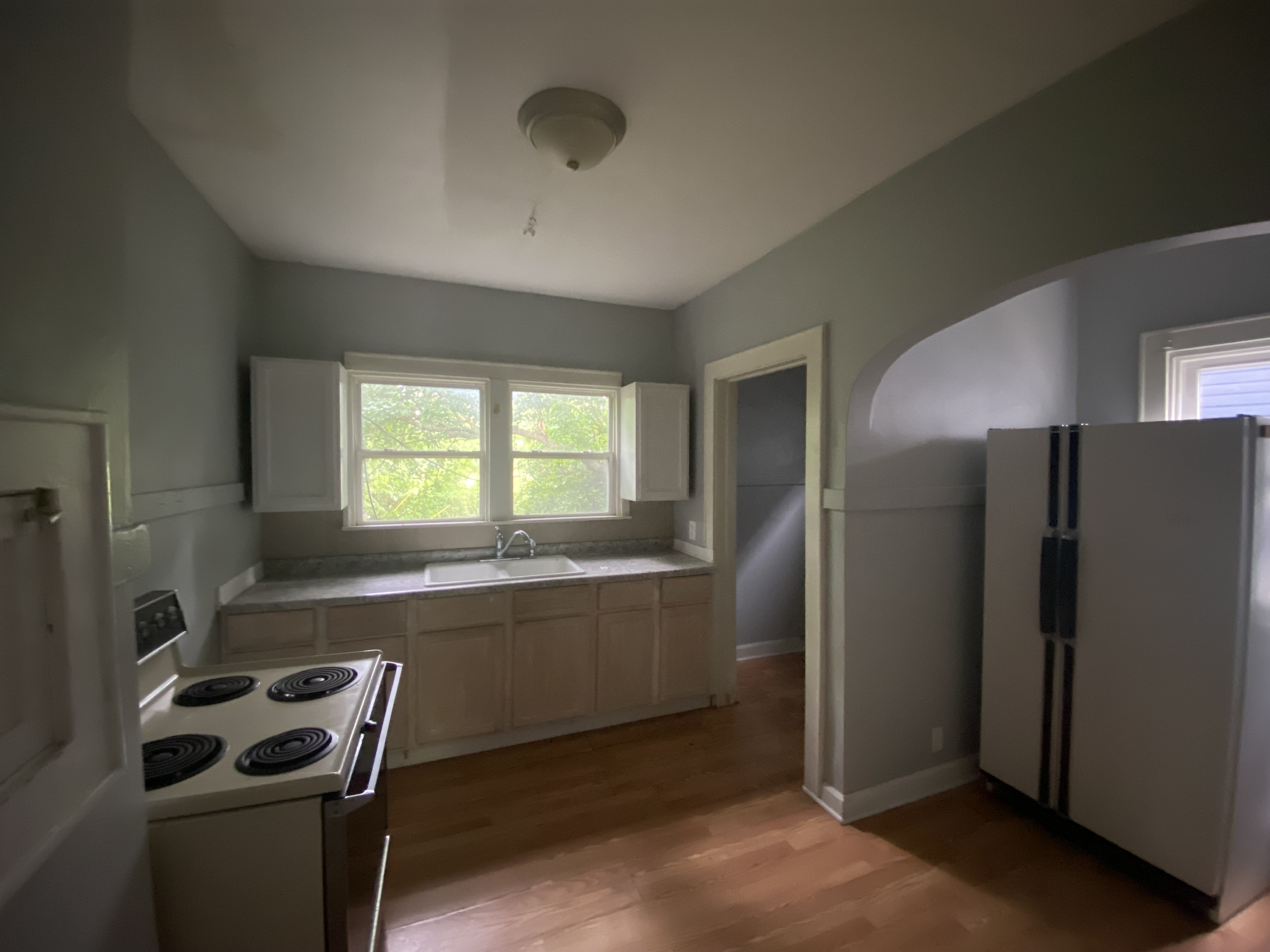 Nice hard wood floors. Couple of minor fixes to make it your next rental.