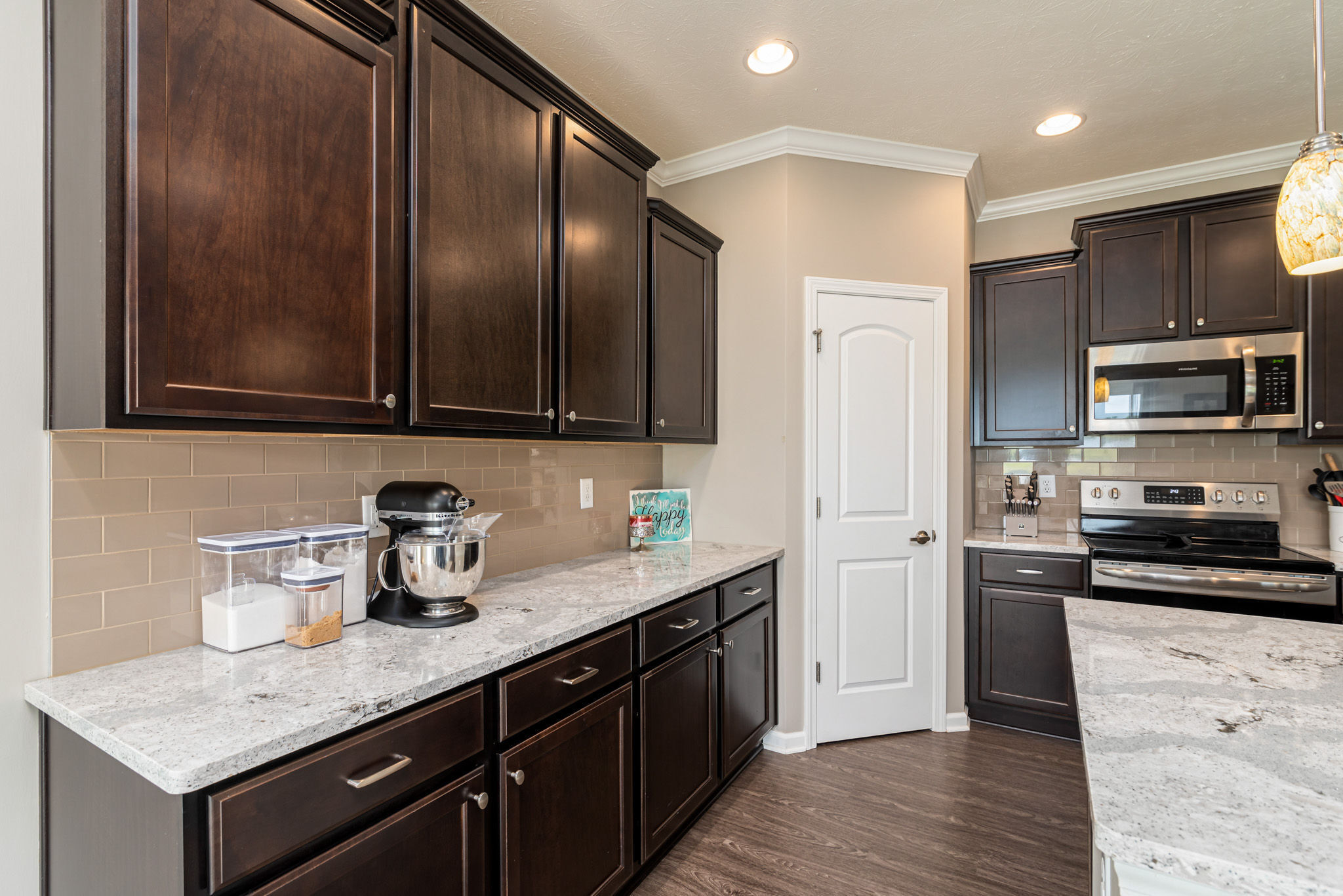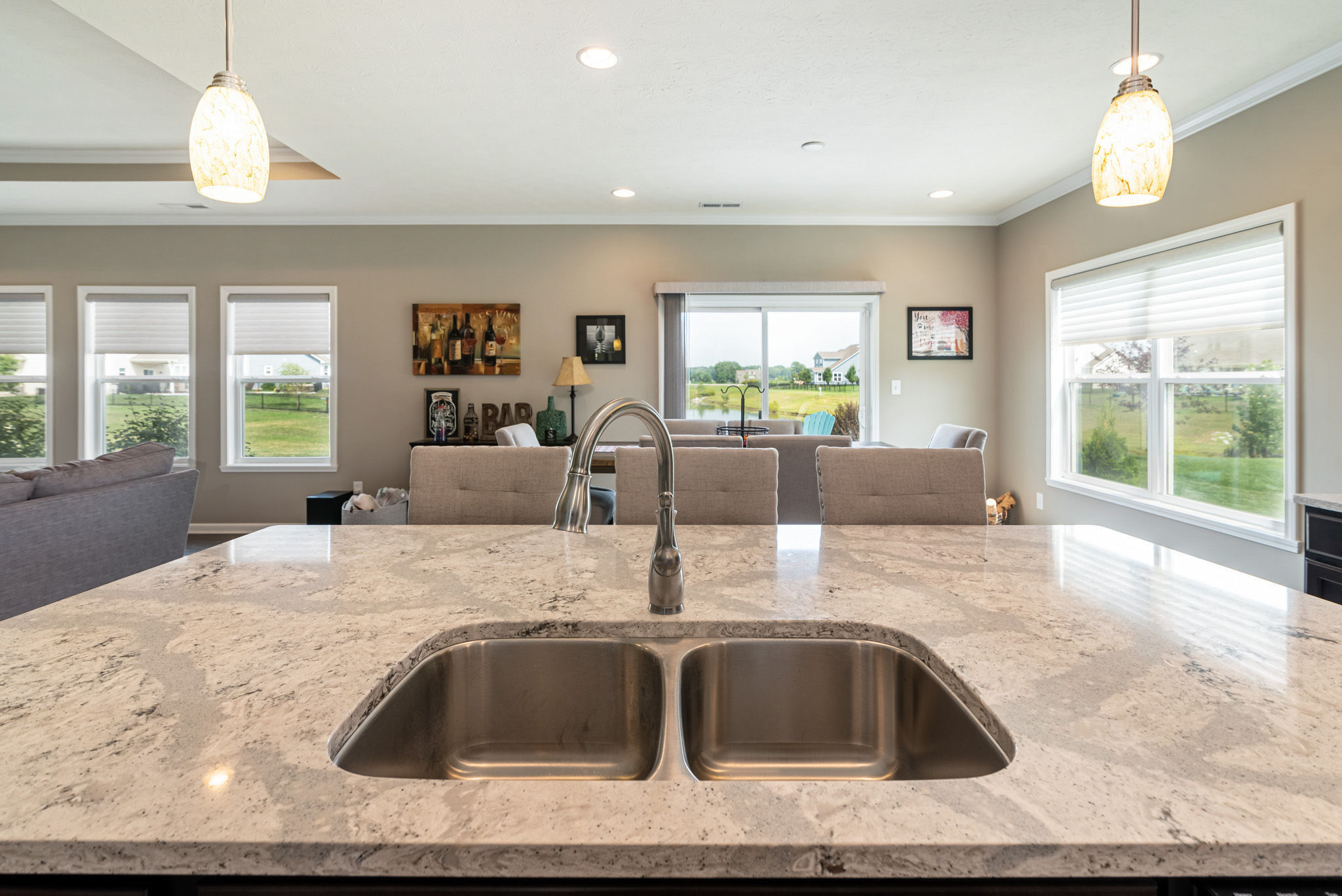 Impressive and Fabulous 5 year old brick home with 4 bedrooms, 2.5 baths and finished 2+ car garage (offering workshop area, bump out & attic access). Spacious entry with wainscoting, split bedroom floorpan, great room with fireplace & tray ceiling that opens to sizable kitchen with oversized island, quartz countertops, delightful backsplash & newer range. Dining area with sliding glass doors to backyard. Entry, Great room, Dining area & kitchen are enhanced by crown molding. Master bedroom offers bay window, generous bathroom with double sinks, full tile shower and large scale custom designed walk in closet. All this overlooks beautiful pond with fountain, stamped concrete patio and recent landscaping additions. Seller is willing to help with closing costs or the buy down of your interest rate.