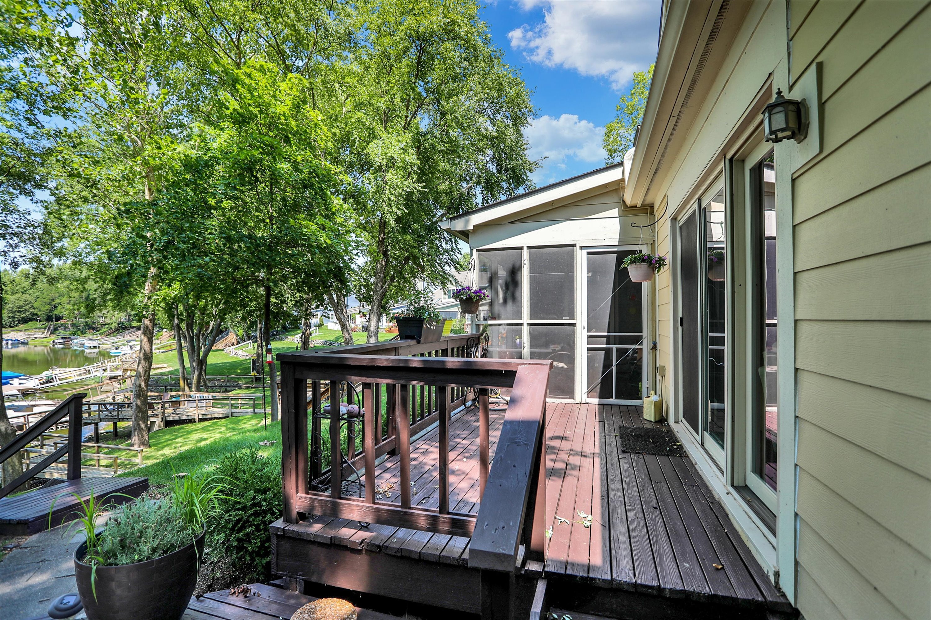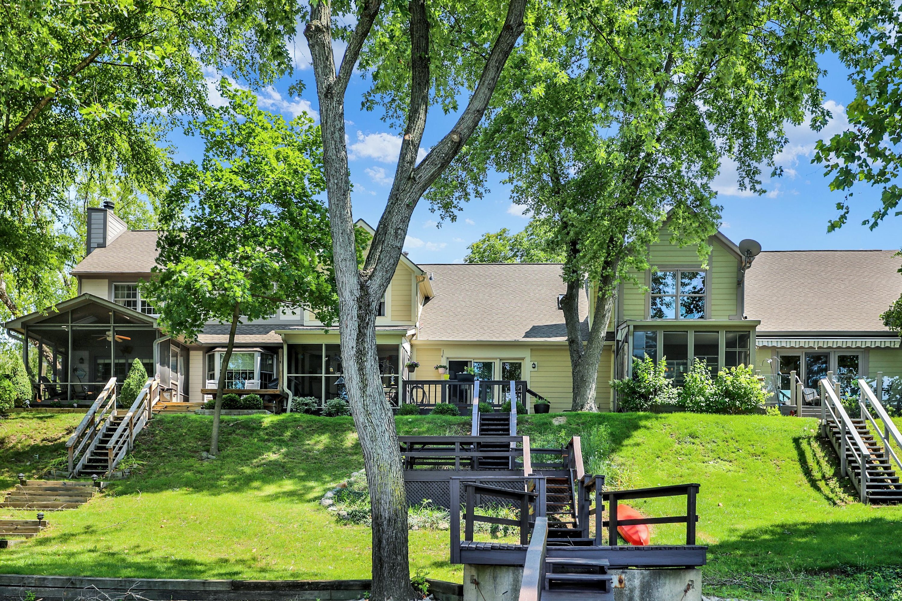 Best water view imaginable in desired Sandy Point! This 2 bedroom, 2.5 bathroom condo has it all: open layout on main level with water view upon entry, den / office area, updated flooring throughout, separate dining / eating area, neutral colors, upgraded stair railings, updated bathrooms and large bedrooms! This is truly the perfect turn-key unit for you! The back yard is pristine and offers panoramic water views! Large screened in porch and multi level deck that leads you to your dock and the water. Current seller has occupied the home for over 30 years and pride of ownership is evident the moment you walk in! HOA takes care of all lawncare, snow removal, and the exterior! Hurry, this water view is unmatched and this will not last!