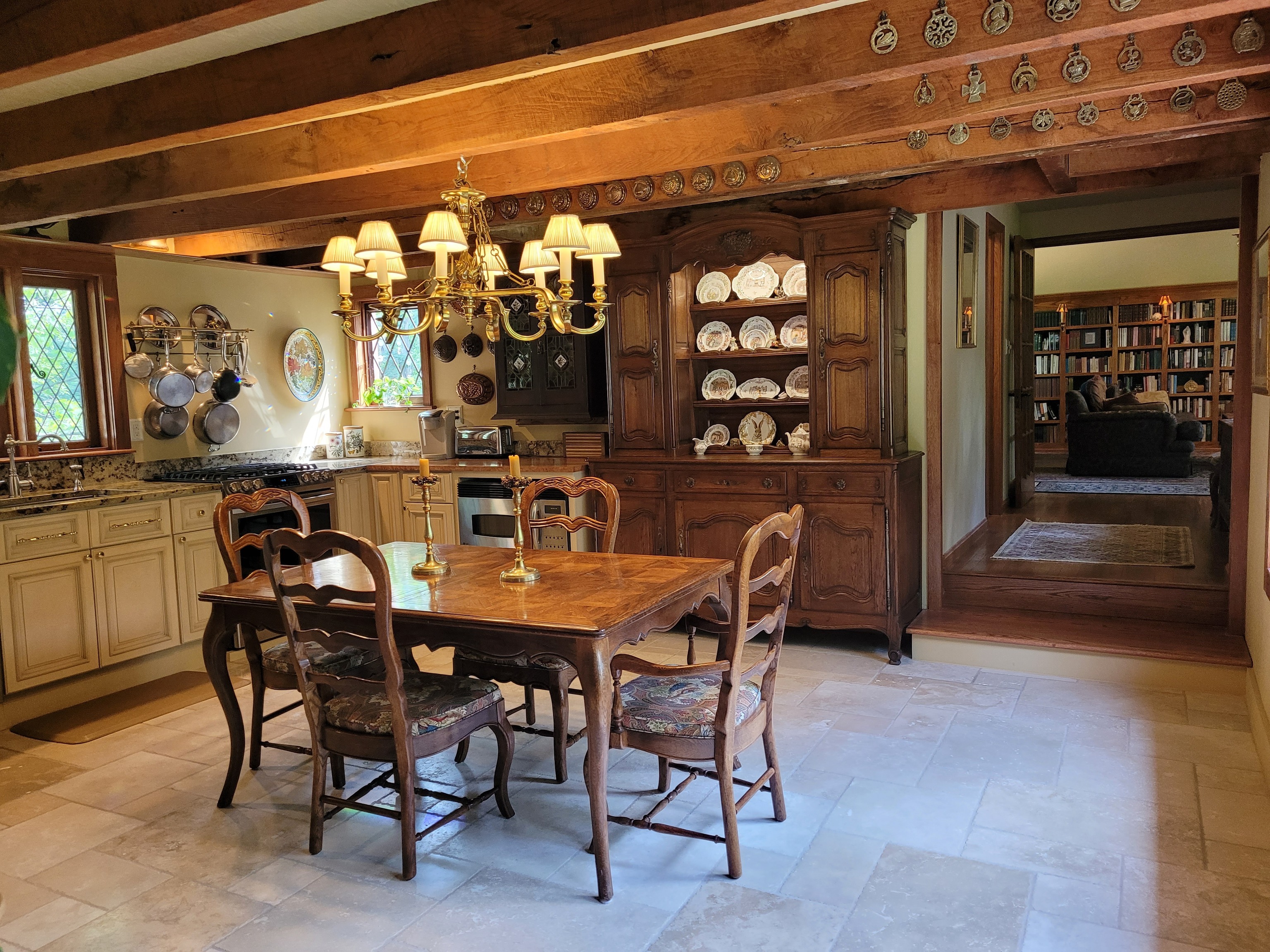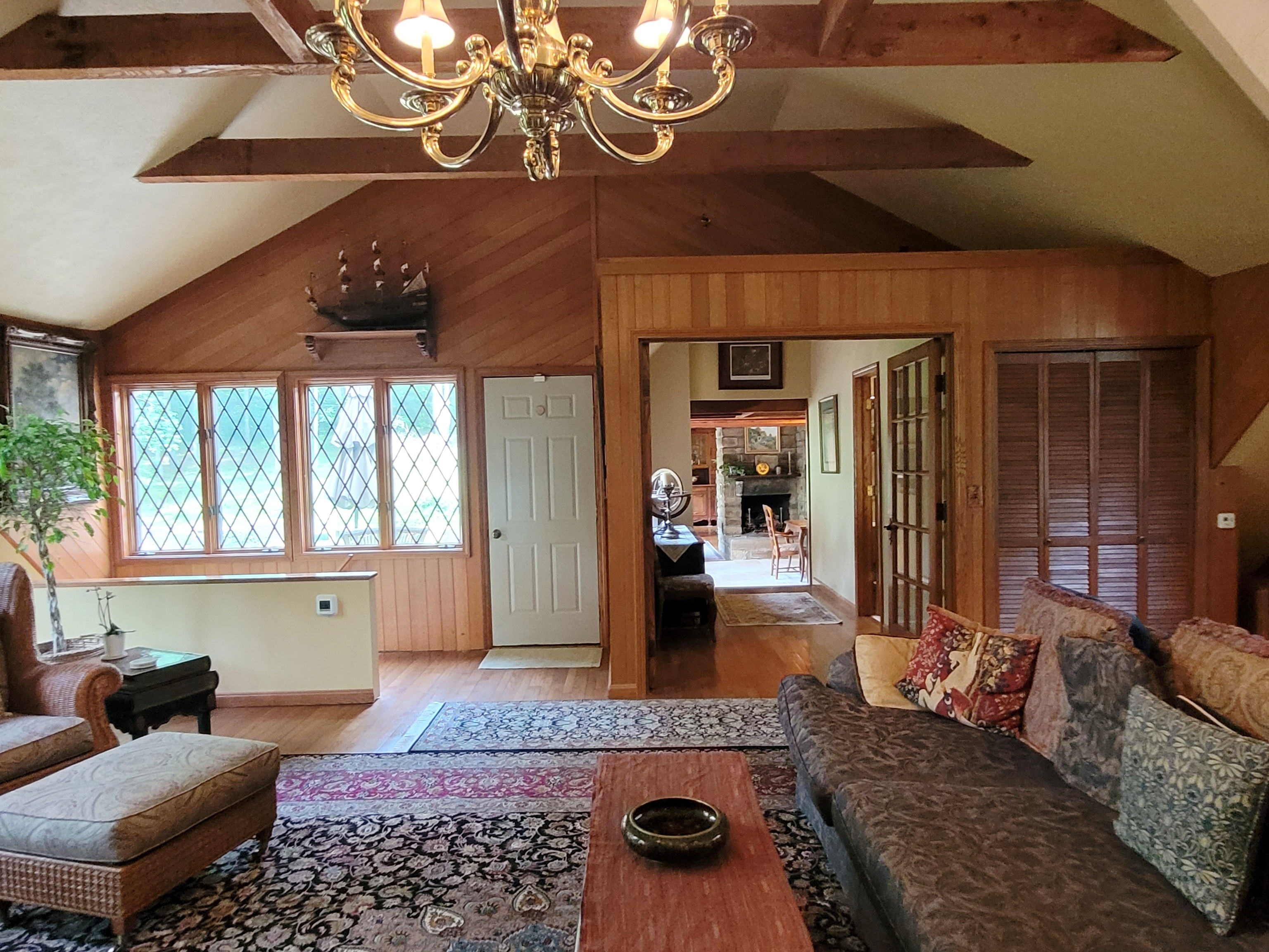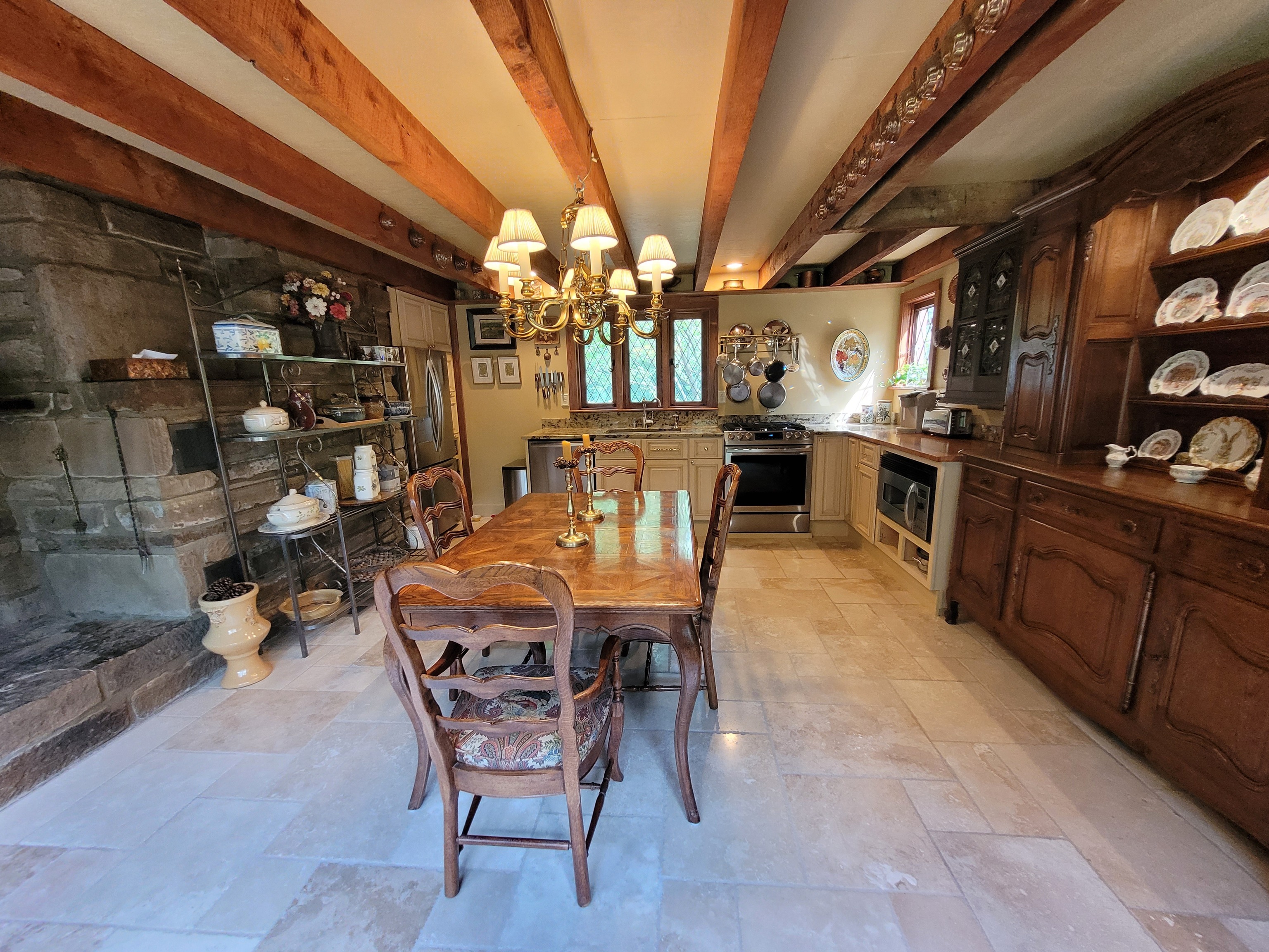 ‘Lostwithiel’ Tail End of the Forest. Welcome to one of the historic cabins built by Hank Swain in 1930. Hand chiseled stone fireplace & hand hewn poplar logs can still be enjoyed inside this Brown County oasis. Craftsmanship went into every detail while expanding this custom home. Featuring wood & gas fireplaces, expansive library with movie theater, top of the line kitchen, wonderfully updated bathrooms, antique custom round window & beveled windows are just some of the special touches this unique property host. A back deck stretches the length of the home & floor to ceiling windows allow you to enjoy your backyard sanctuary & pond. Workshop & storage building are temperature controlled. Driveway features beautiful tanned gravel.