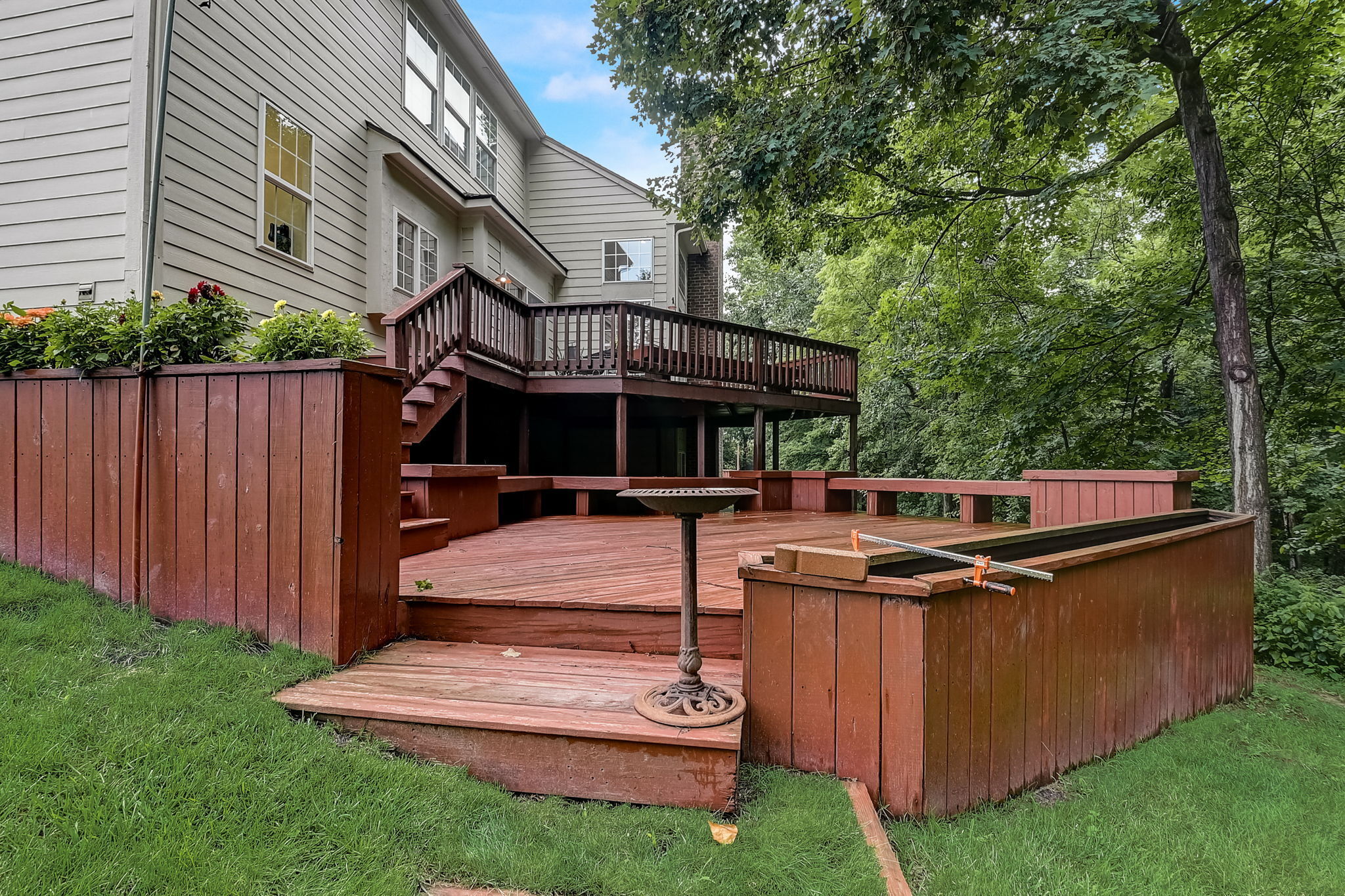 Make the Discovery… 4 bedroom, 3 bathroom, 3-car garage home settled in Ridgewood Hills! Step into a welcoming 2-story foyer flanked by office space and a cozy living area. Bright & open floor plan w/ hardwood floors. Great room boasts soaring ceilings & fireplace, beside a tiled sunroom flooded w/ natural light. Indulge in a spacious kitchen & dining area w/ updated backsplash tiling & cabinets GALORE! Retreat to a huge primary suite w/ vaulted ceilings & newly painted bathroom w/ walk-in closets, water closet, & walk-in shower. Enjoy spacious bedrooms & closets upstairs, & a large basement w/ tons of storage space. Relax or entertain on a back deck overlooking a tranquil wooded area or walk to Fall Creek and Geist. Seeing is believing!!