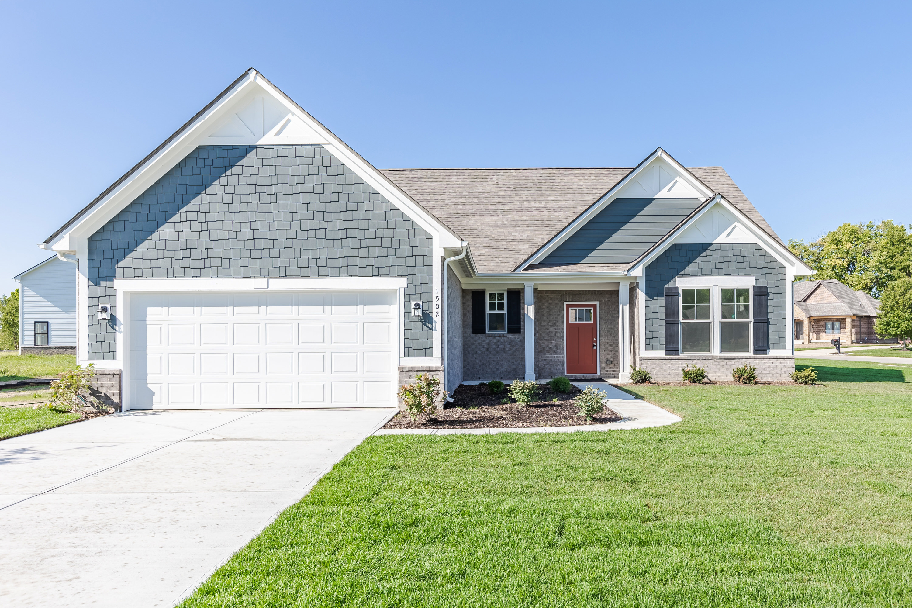 Brand new ranch home in Greenfield! The Craftsman style elevation with a cover front porch creates a warm welcome into your new home. Walking through the front door, you are greeted into an open concept living space. The Flex room off the main foyer is perfect for a home office. The Great room and Kitchen offers a cathedral ceiling. The gorgeous Kitchen offers SS appliances & a center island – perfect for your hosting your next gathering. The Primary bedroom is located just off the Great room. The attached full bathroom features dual sink vanity, tiled shower, & walk-in closet. The Laundry room is conveniently located near the Primary bedroom. Enjoy your days spent on the large back patio. Perfect for entertaining. SELLER OFFERING BELOW MARKET INTEREST RATES.