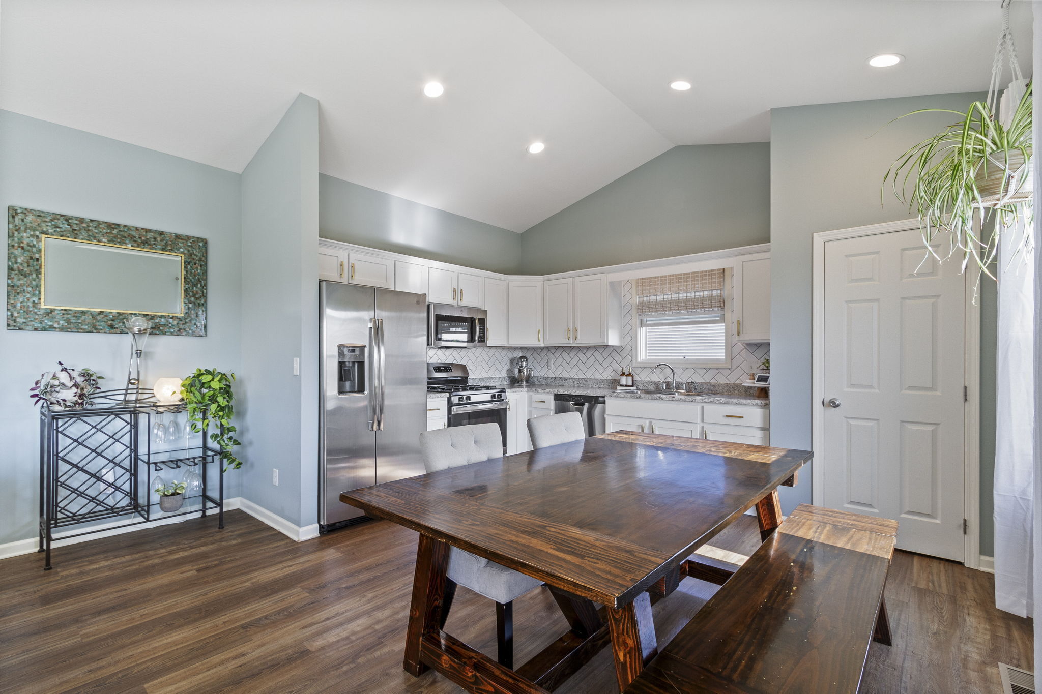 Charming Lapel 3bedroom, 2bath split plan RANCH home with over-sized front porch & Craftsman stone columns awaits! Airy vaulted ceilings, sun-filled windows, open concept layout with stylish finishes thurout. Easy-living kitchen with solid surface counter tops, laminate floors, stainless steel appliances, gas range, large eat-in dining space & views of the backyard. Laminate floors in Great Room & Entry. Retreat to any bedroom, all with walk-in closets, baths have low-maintenance design with marble bath sinks and walk-in shower at the primary bath. Finished garage with tall ceilings. Water softener, Ring doorbell, washer & dryer included. House is on a crawl space with sump pump. Take a tour of this like-new home, year built 2019!
