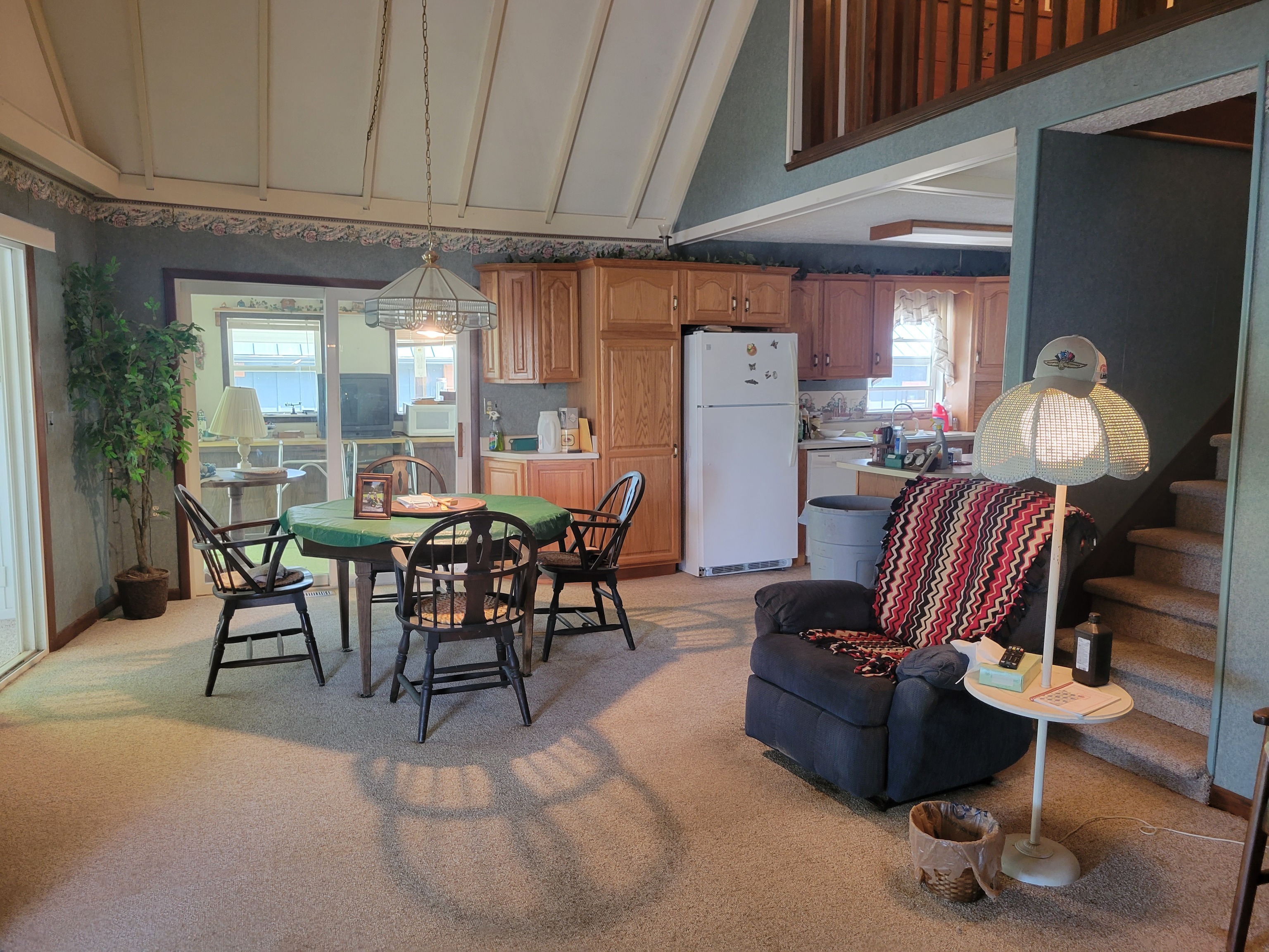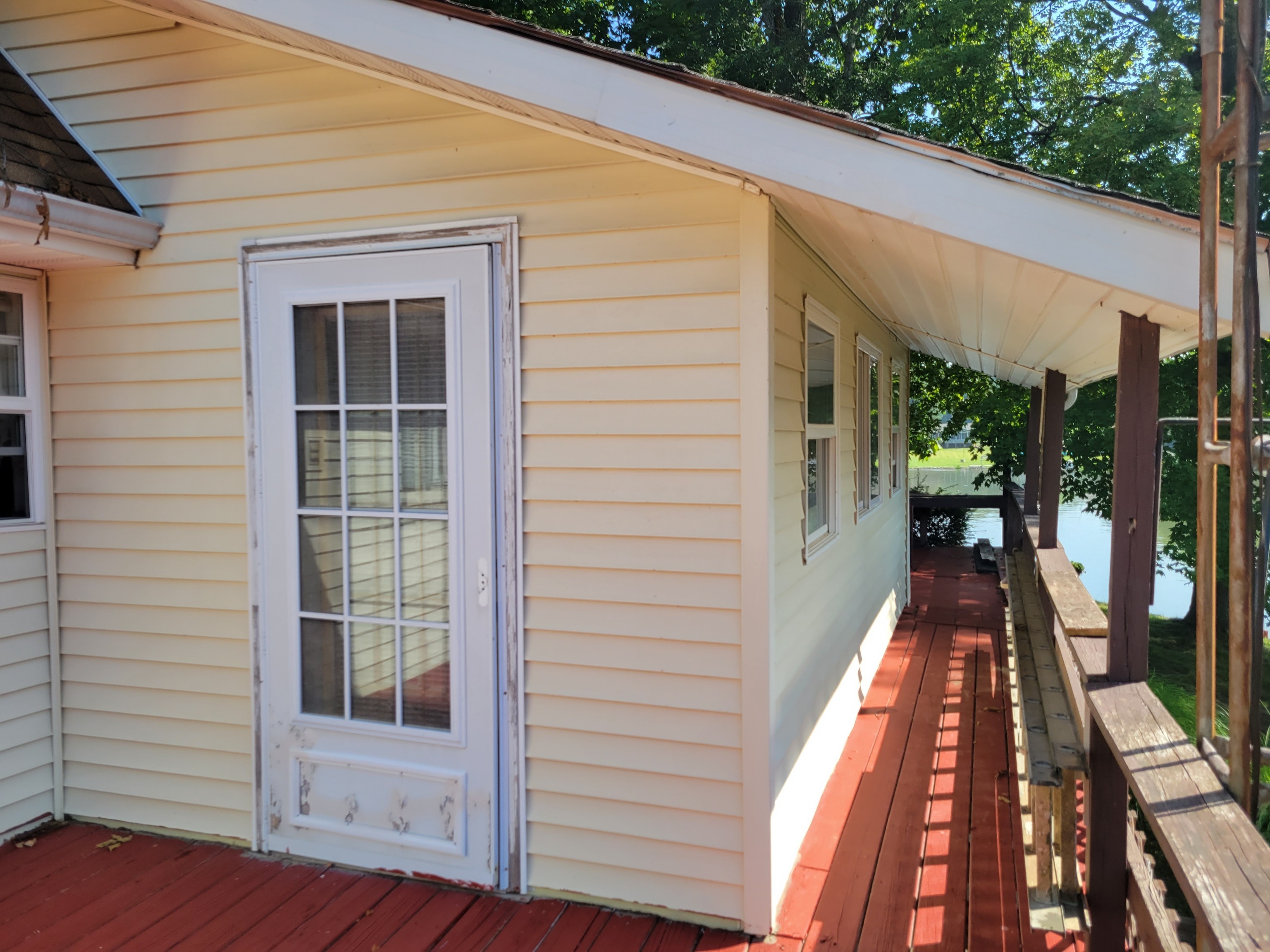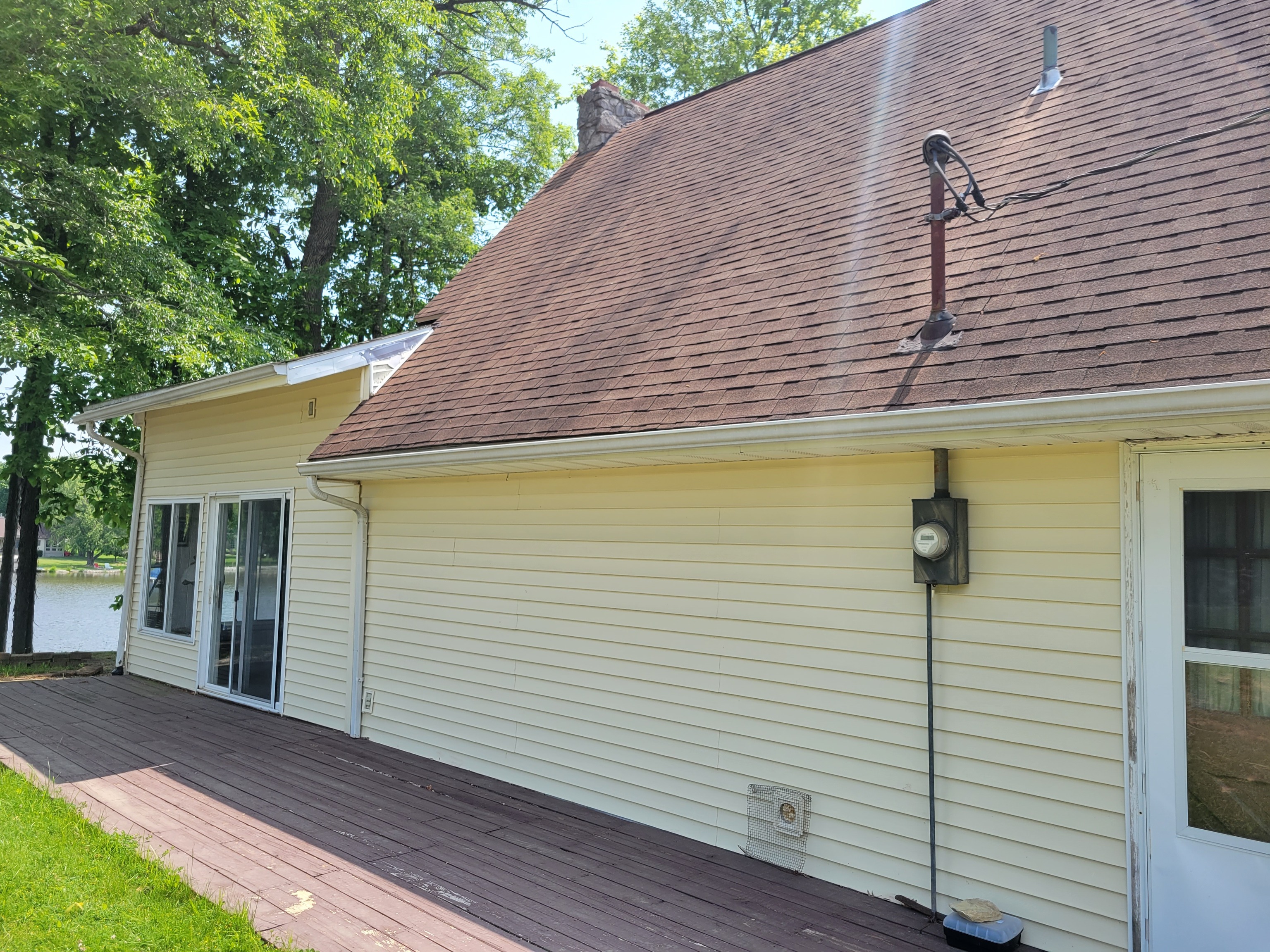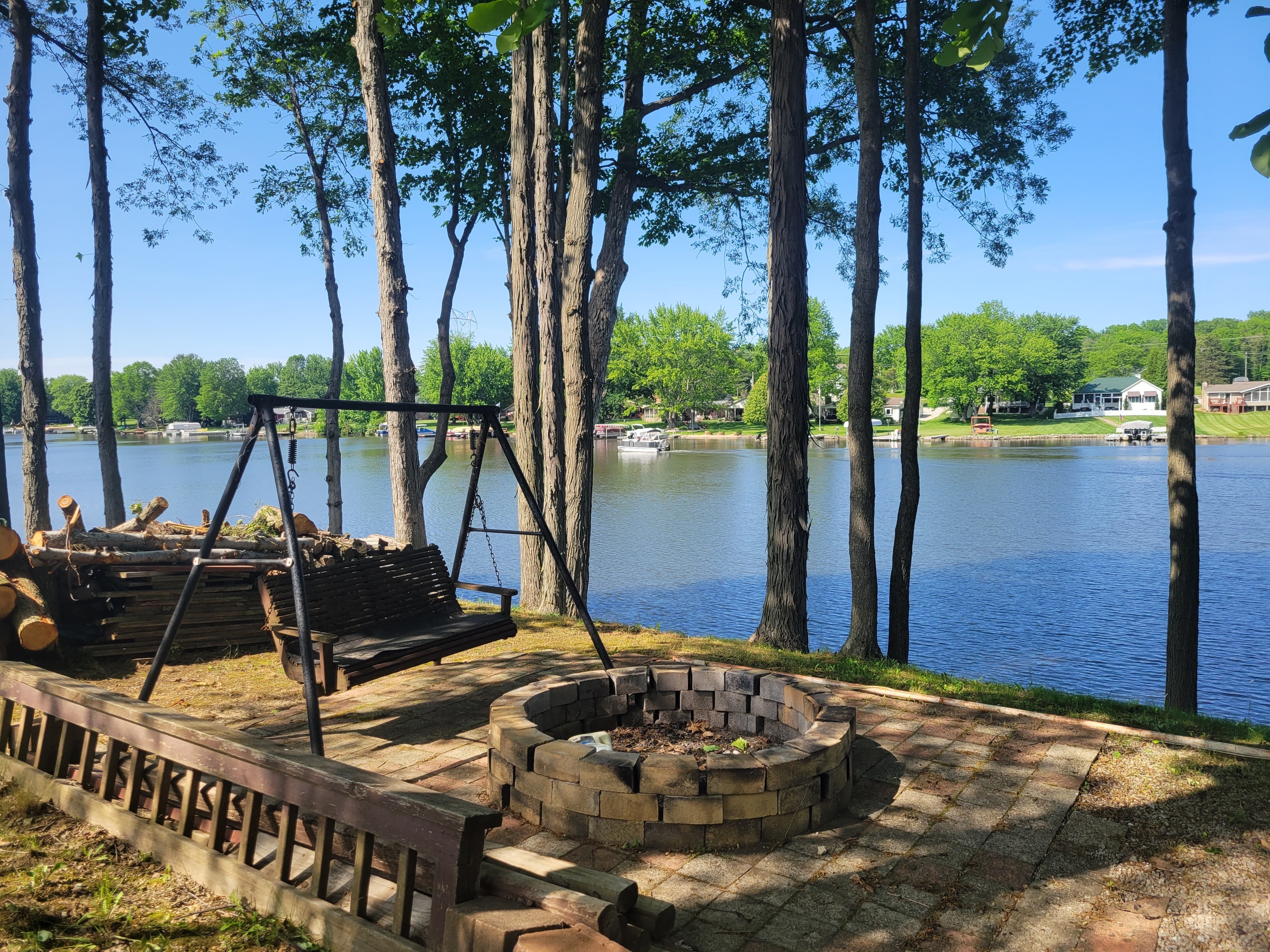 Enjoy breathtaking views from this waterfront home! Located on the north end fishing cove, you will enjoy a no wake zone perfect for kayaking, fishing and floating. You will wake up to sunrises and watch them from your sunroom. The home has 2 bed, 1 bath, kitchen, family room, sunroom, laundry room and enclosed porch on first floor. The second floor has a bedroom and loft area. Basement has a walkout door on the south side of home. The 3 car detached garage has a workshop area and plenty of room to store lake toys, golf cart and more. Big grassy front yard is perfect for games. Firepit overlooks the lake for fun fall evenings. This home is ready for you to remodel and make it your own. It is being sold AS IS.