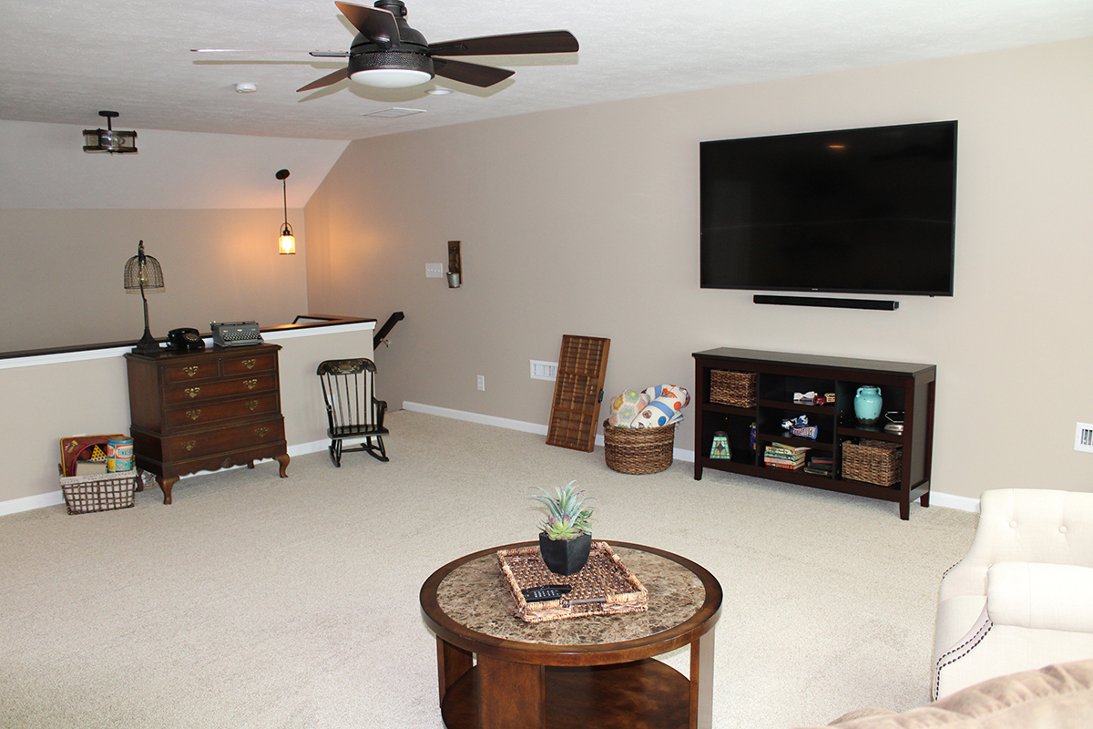 Immaculate & exceptionally appointed! This beautiful 3BR, 2BA ranch w/ den (or DR), huge 19×20+bonus/rec/loft, w/spacious, open GR/kit/nook/morning rm combines an extremely functional layout perfect for entertaining w/the most elegant touches. Hand scraped hdwds in all main areas, quartz countertops on huge island, furniture quality cabinetry, plantation shutters, soaring clgs, custom tile WI shwr in , beautiful lighting, tnkls wtr htr, art niches. Enjoy coffee in the fabulous morning rm off the bkfst nook, or step outside to the large, private deck under the thick treeline, making it feel like a country setting. Lg 3 car garage w/epoxy flrs great for storage. This home is a must-see for the buyer w/a discerning eye for quality & design