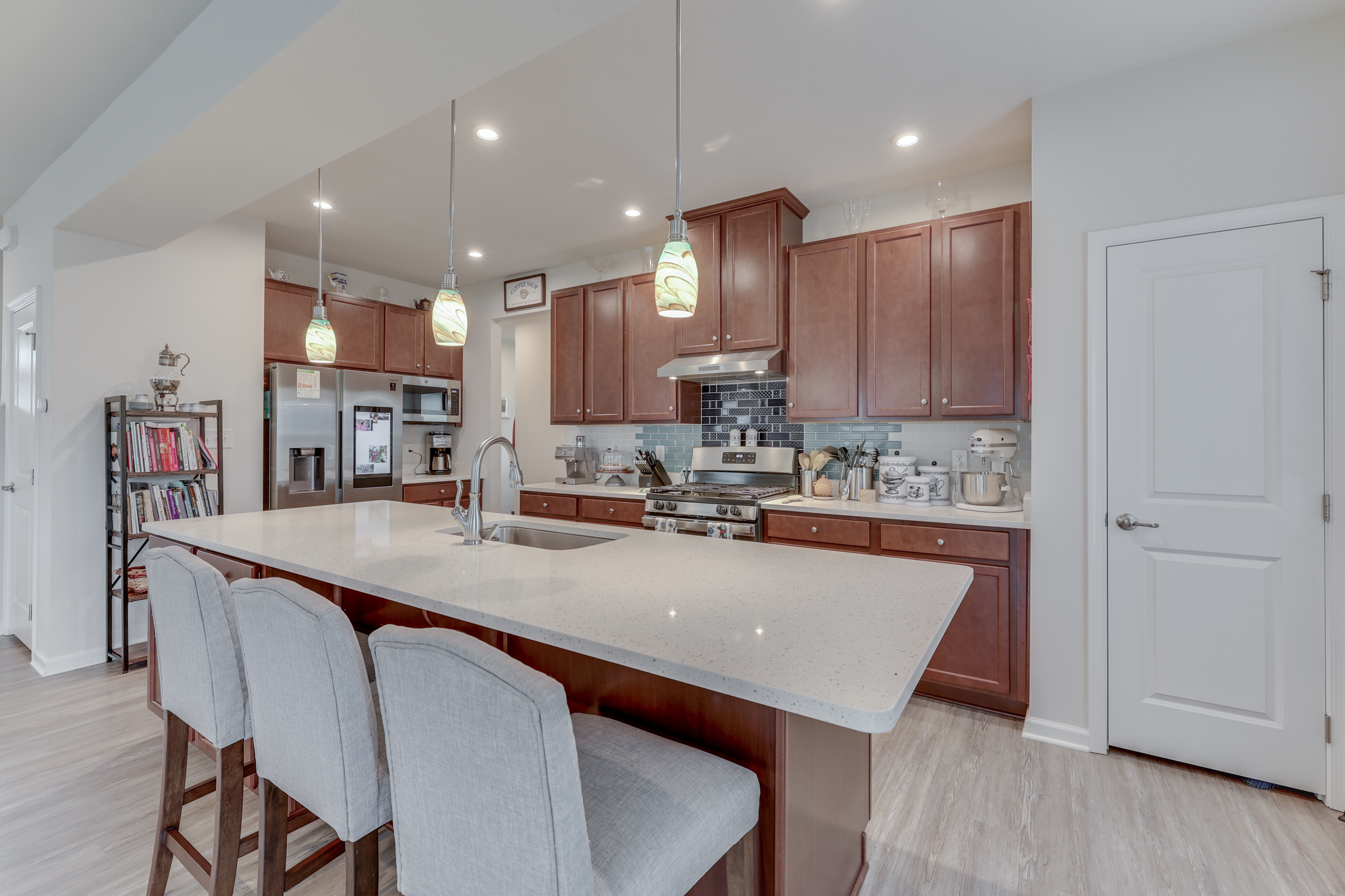 Situated on a prime corner lot, this remarkable 5-bedroom, 3-bathroom home, spanning 2,726 sq. ft., exudes both space and modern elegance. Constructed in 2020 by Ryan Homes, the distinguished Hudson floor plan seamlessly blends contemporary design with everyday functionality. Inside, be greeted by an airy open-concept living space, anchored by a kitchen that boasts a massive island – a true entertainer’s delight. Beyond the interiors, step out to a covered patio that leads to a fenced backyard. The home is nestled in a neighborhood adjacent to a nature preserve, where sightings of deer and bald eagles are not uncommon. This home is in the highly desired Brownsburg Schools and only minutes from shopping in Avon.