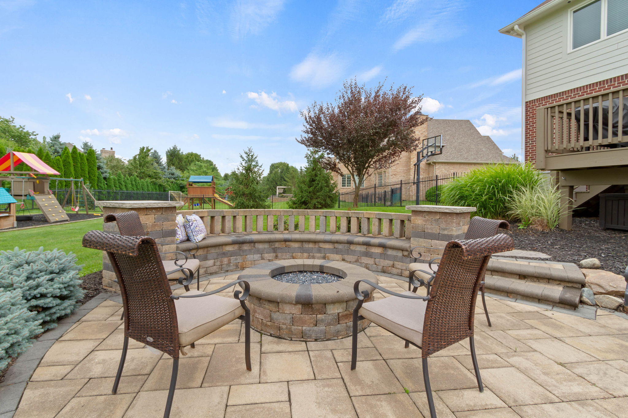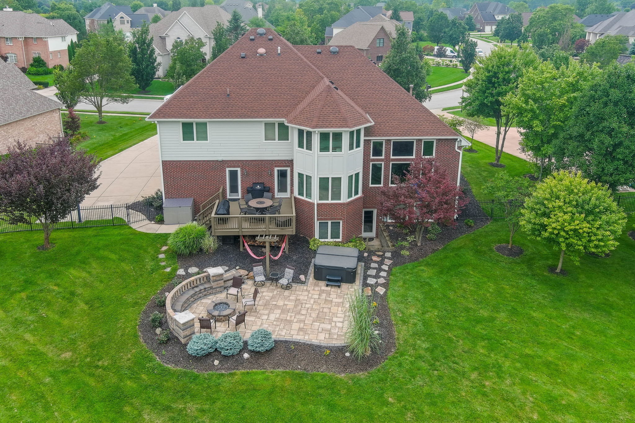 Stately 5 BDRM, 4 FULL / 2 HALF BATH, 3 CAR GARAGE Executive Home on a 0.68 ACRE LOT with fully fenced backyard. Main Floor features GREAT ROOM with gas fireplace, built-ins and gorgeous wall of windows. Newly REMODELED KITCHEN w/ quartz countertops, large island, bar seating, all new appliances, and BREAKFAST ROOM. Home OFFICE with built-ins, formal DINING ROOM, MUD ROOM with boot bench and desk. Upstairs includes Primary BDRM Suite, 2 BDRMS that share a Jack-n-Jill Bath, and 4th BDRM with private bath. The BSMT is a perfect entertaining venue with a full bar, family room/theater, playroom/exercise room, 5th BDRM and FULL BATH. Walk out to hot tub and fire pit area on lower paver patio for outside entertainment in a beautiful setting.