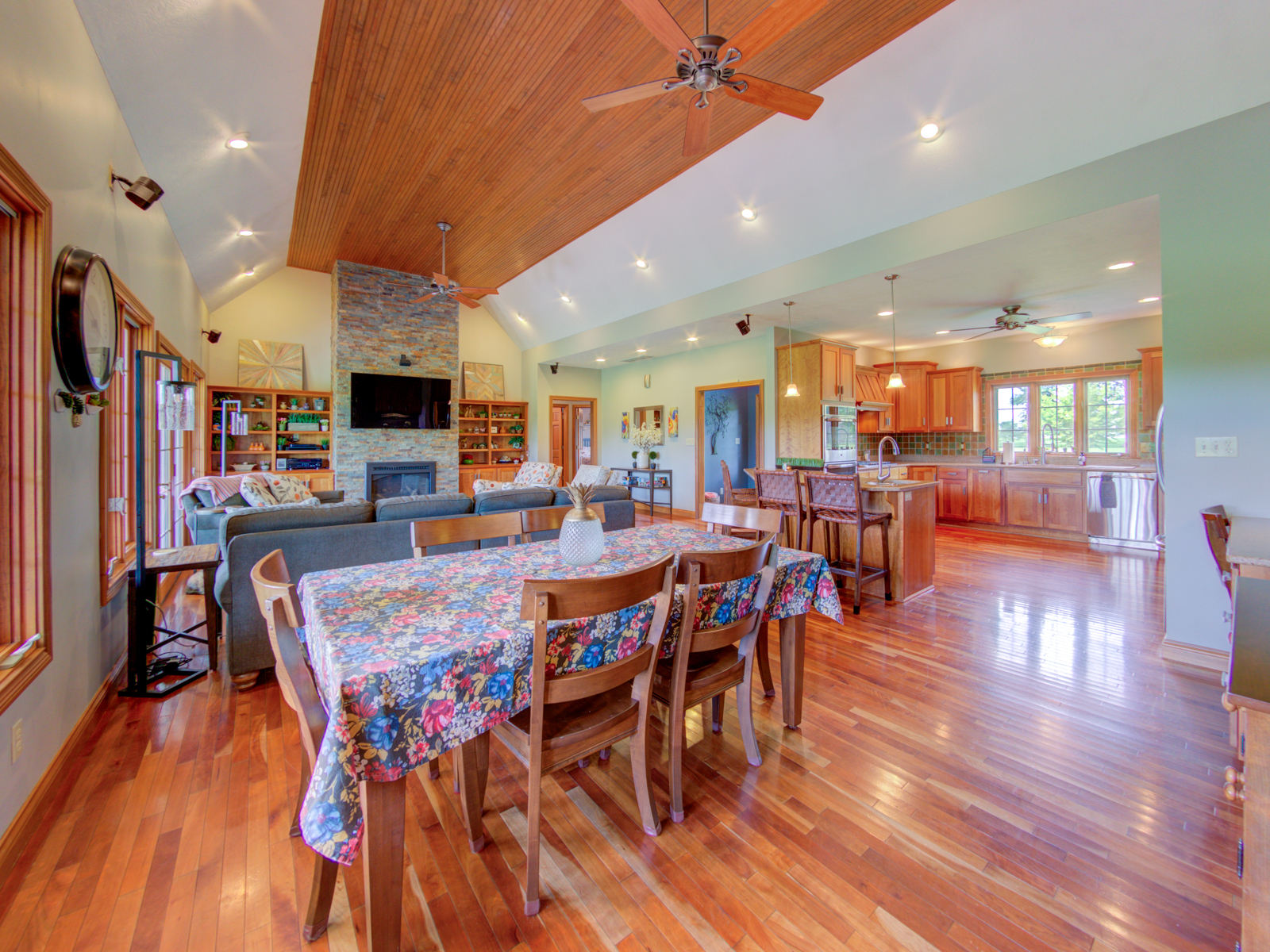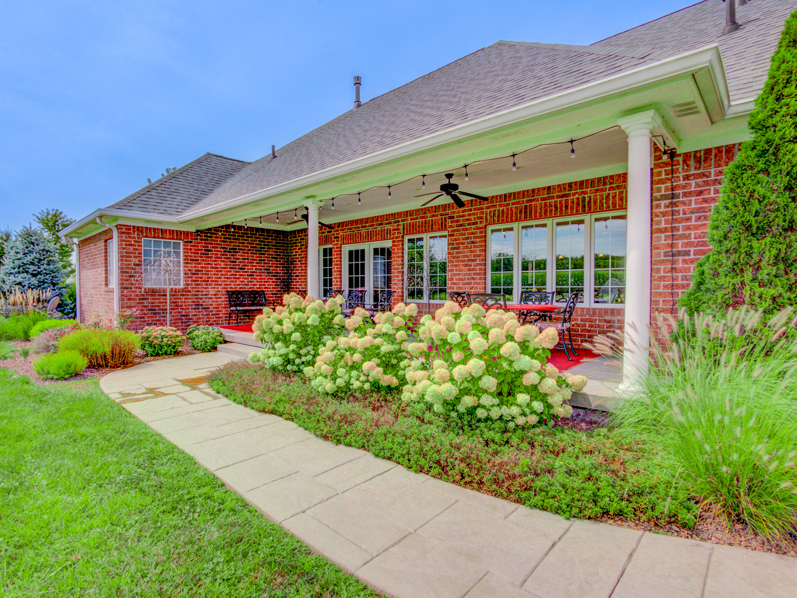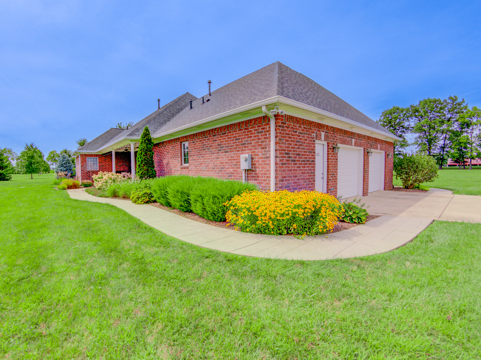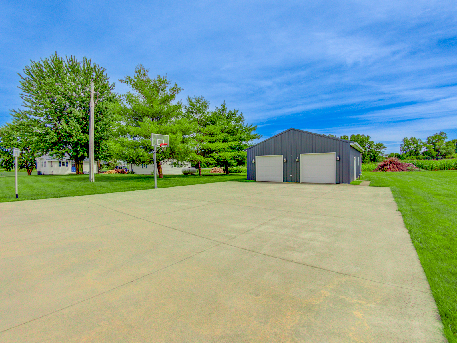 Wow don’t miss this one! A lovely custom built all brick ranch on 4.73 ac lot, 3 bedroom, 2.5 baths. Well thought out design & perfectly located on the lot with space for a future pool in back. Septic to the west. A water system professionally installed for the landscaping around the house. Separate 1200 sqft pole barn w/electric and concrete drive. The home features cherry hardwood floors throughout, a recently updated primary ensuite bathroom. Roof 2 years old, kit has tons of cabinets, a lrg walk-in pantry, built-in appliances, granite countertops, open concept with kitchen, GR and DR all open with a fireplace as the centerpiece. Fr Plc recently refaced and upgraded. Dedicated laundry w/storage, a covered porch in the back & lrg 2CG.