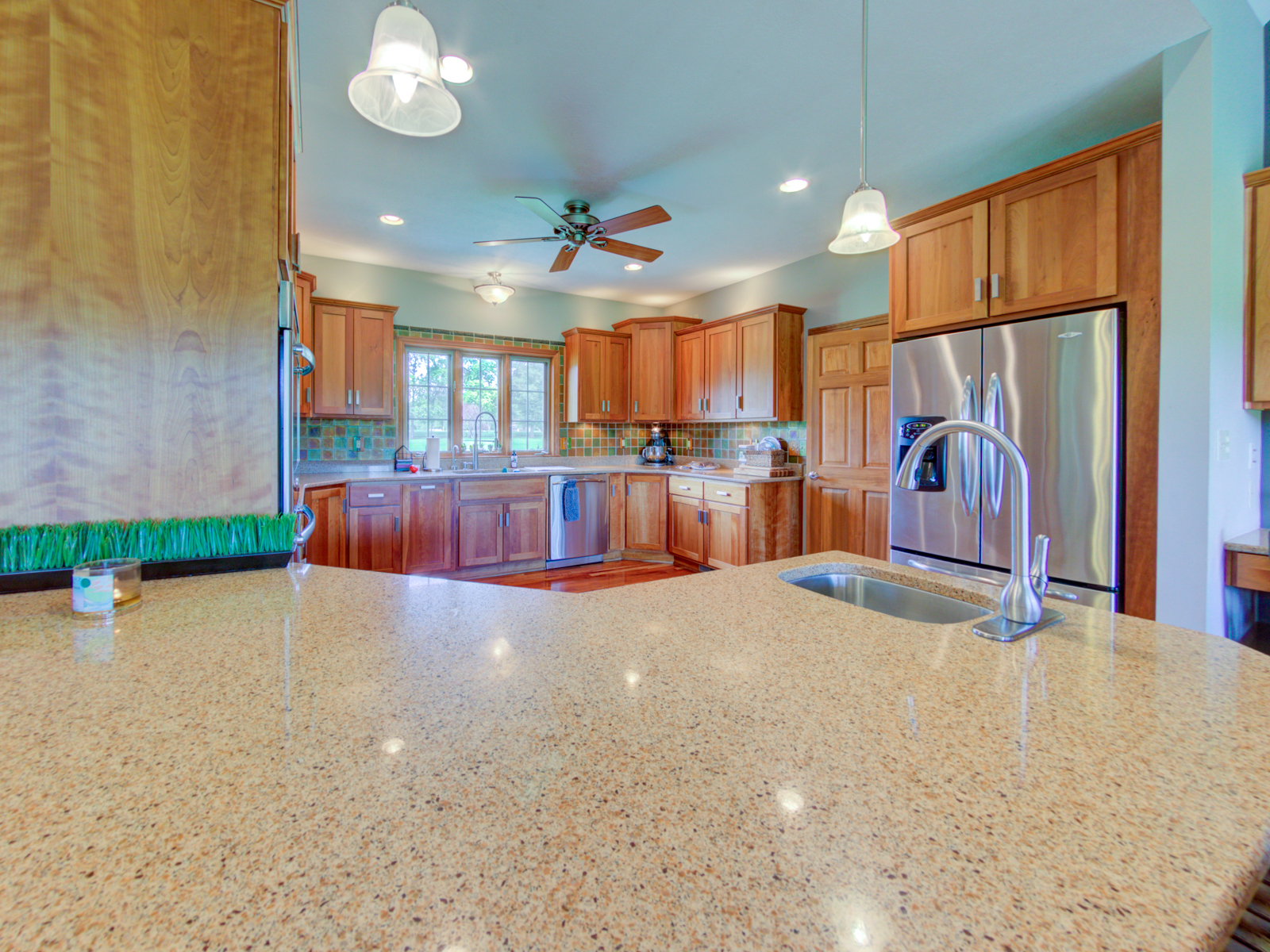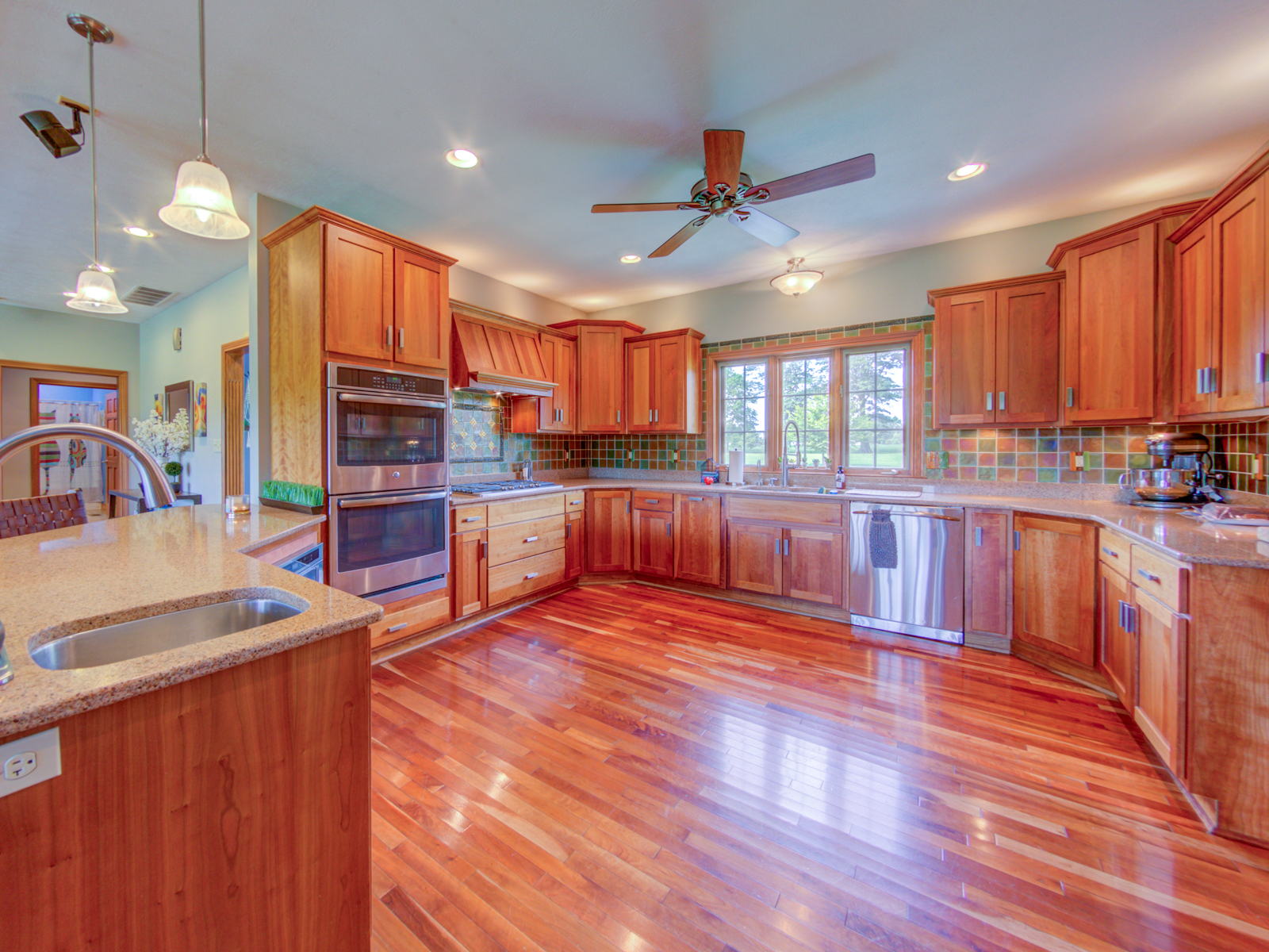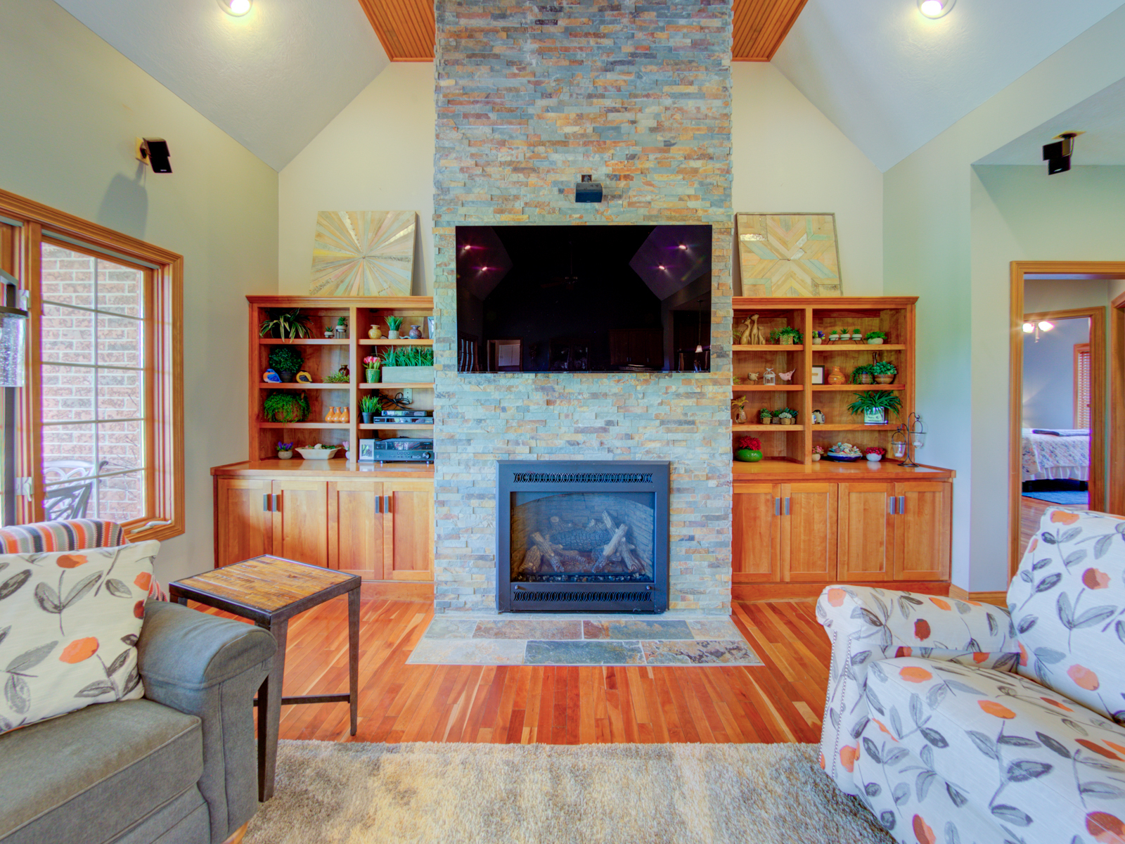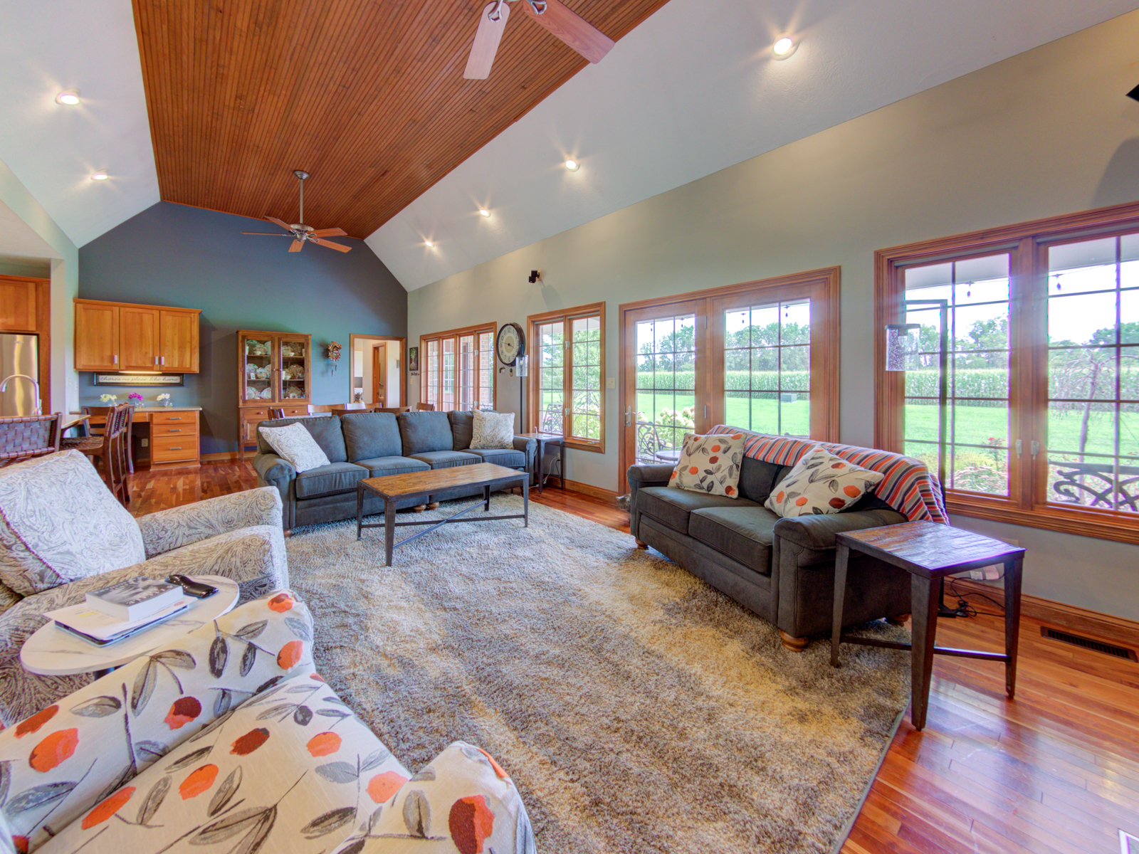Wow don’t miss this one! A lovely custom built all brick ranch on 4.73 ac lot, 3 bedroom, 2.5 baths. Well thought out design & perfectly located on the lot with space for a future pool in back. Septic to the west. A water system professionally installed for the landscaping around the house. Separate 1200 sqft pole barn w/electric and concrete drive. The home features cherry hardwood floors throughout, a recently updated primary ensuite bathroom. Roof 2 years old, kit has tons of cabinets, a lrg walk-in pantry, built-in appliances, granite countertops, open concept with kitchen, GR and DR all open with a fireplace as the centerpiece. Fr Plc recently refaced and upgraded. Dedicated laundry w/storage, a covered porch in the back & lrg 2CG.