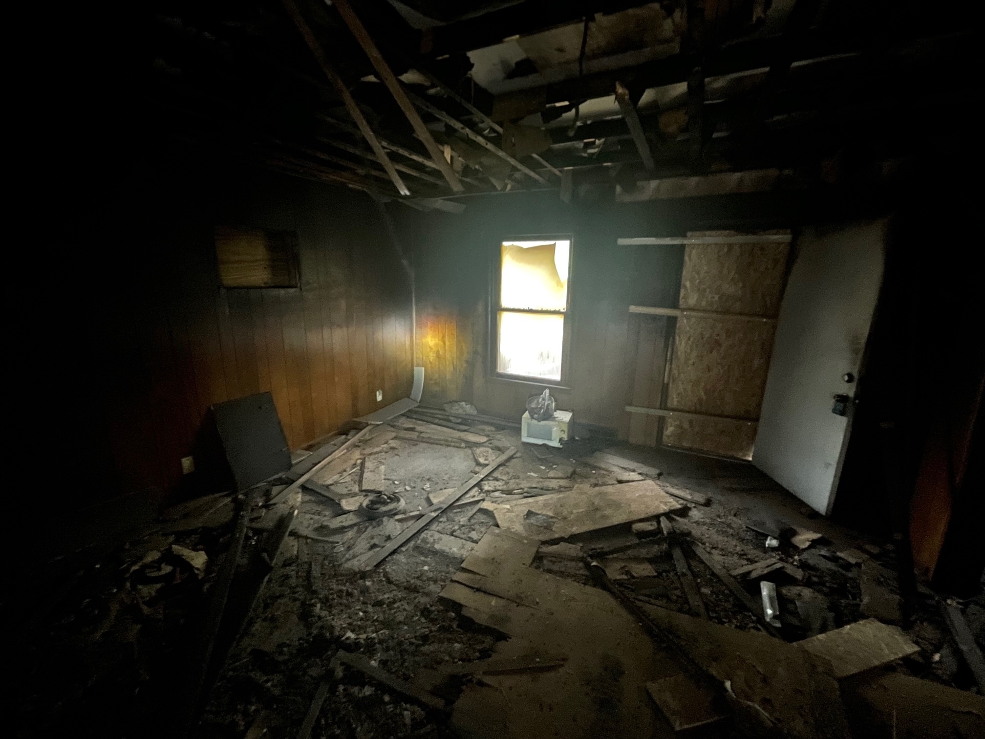 Property is broker-owned. Home has fire damage and is being sold as-is. Room sizes are approximate.