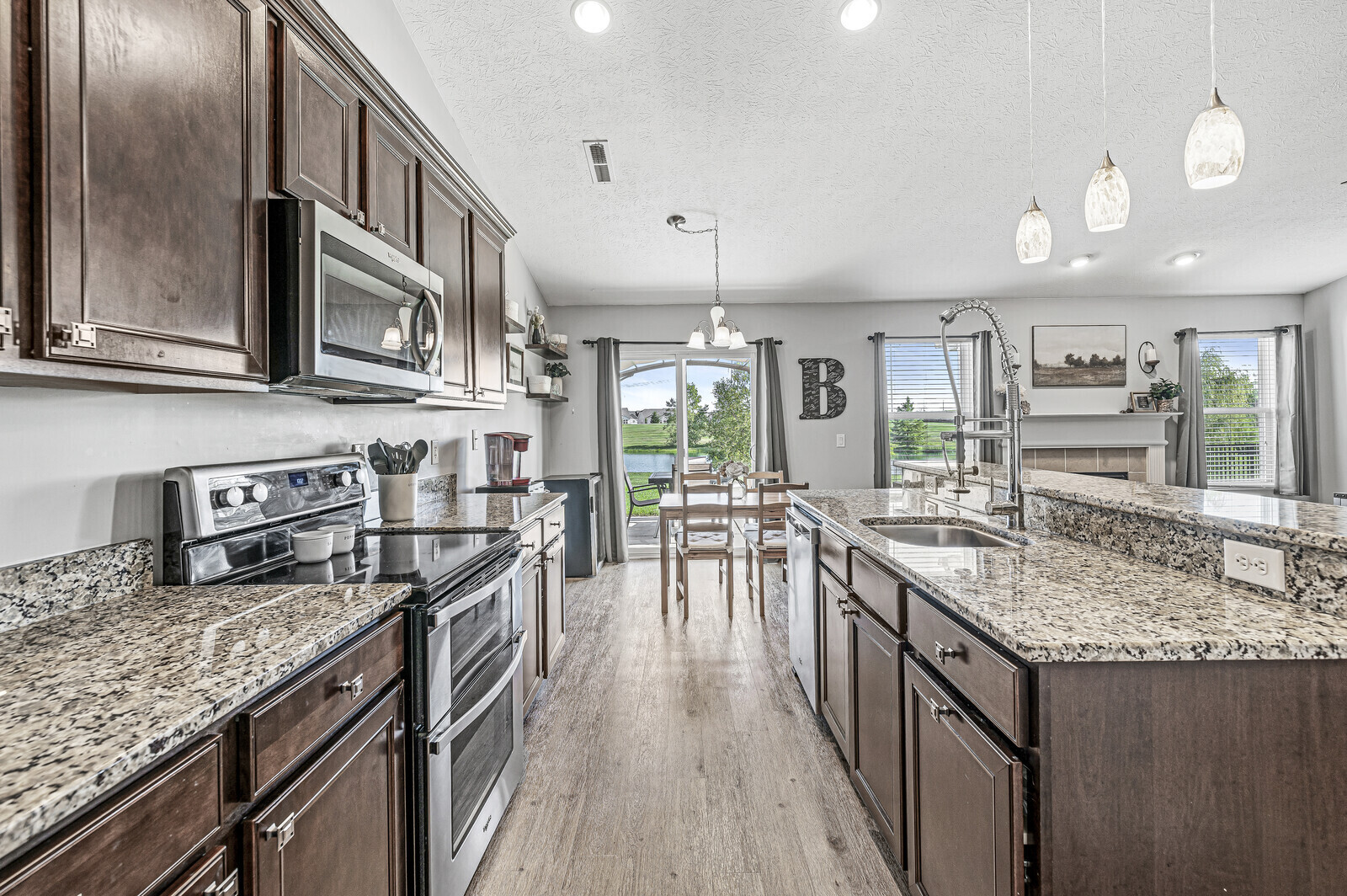 Discover your dream home in Walker Farms! This captivating 3BR, 2BA ranch rests on a coveted premium lot, offering serene views of a tranquil pond which distances you from neighbors behind. Step inside to a modern open floor plan bathed in natural light, showcasing new luxury vinyl plank flooring and freshly painted walls in neutral tones. The home boasts a brand-new roof installed this summer, ensuring peace of mind for years to come. Cook up gourmet delights in your eat in kitchen with granite counters and stainless steel appliances. New water heater and microwave. Nestled in a prime location in Whitestown, convenience meets charm in every corner of this gem. Come see it now! Your new home awaits.