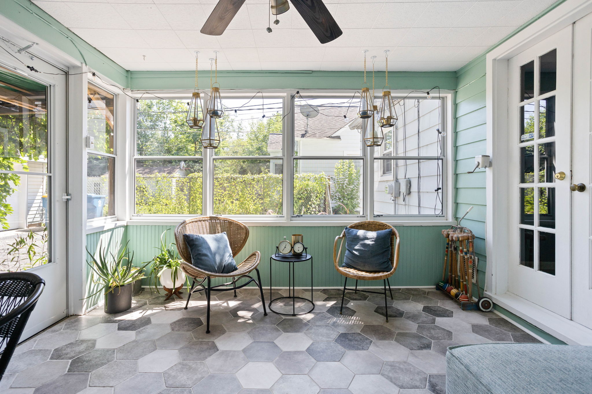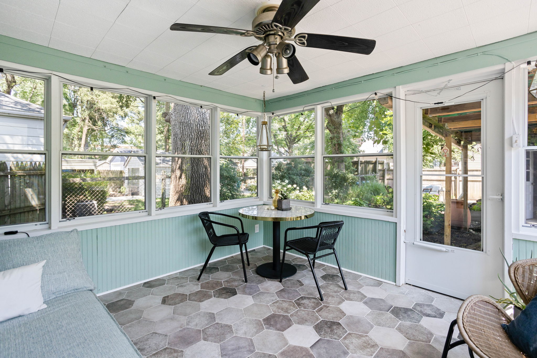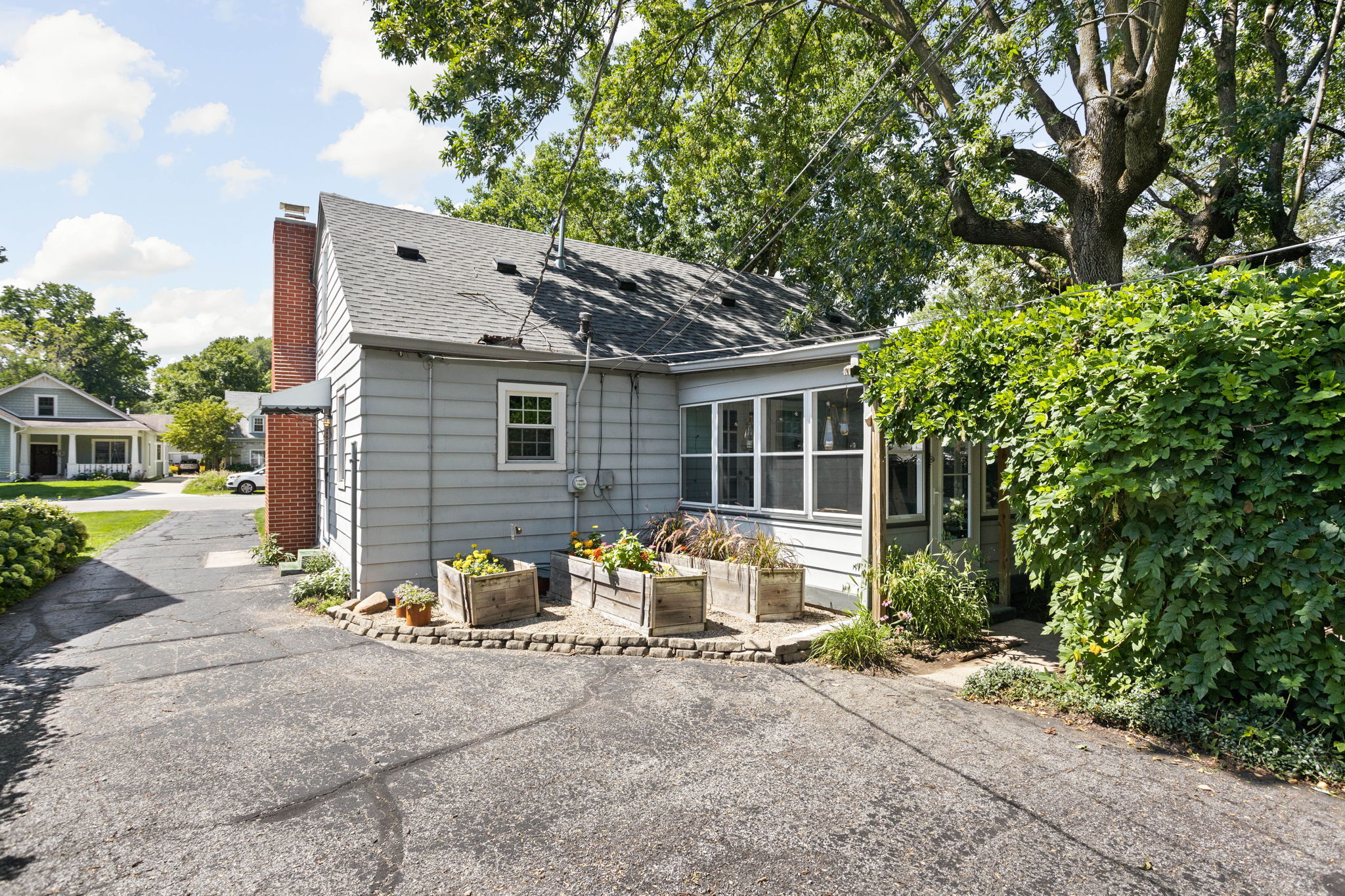 A perfect blend of traditional and modern design! This Broad Ripple home offers loads of style and a fabulous location. Features include a gas fireplace, hardwood floors, charming original tile, built-ins, upgraded lighting, quartz counters, and newer windows. Two main floor bedrooms provide space for a home office, plus upstairs you will find a large primary bedroom. French doors open from the living/dining rooms to the sunroom with its tile flooring and views of the back yard oasis. Shade trees, a tucked away patio, perennials, raised beds and a pergola all add up to truly lush garden retreat out back. Add in a full basement, a two car garage and a walkable location convenient to so many shops, eateries and amenities. This is the one!!