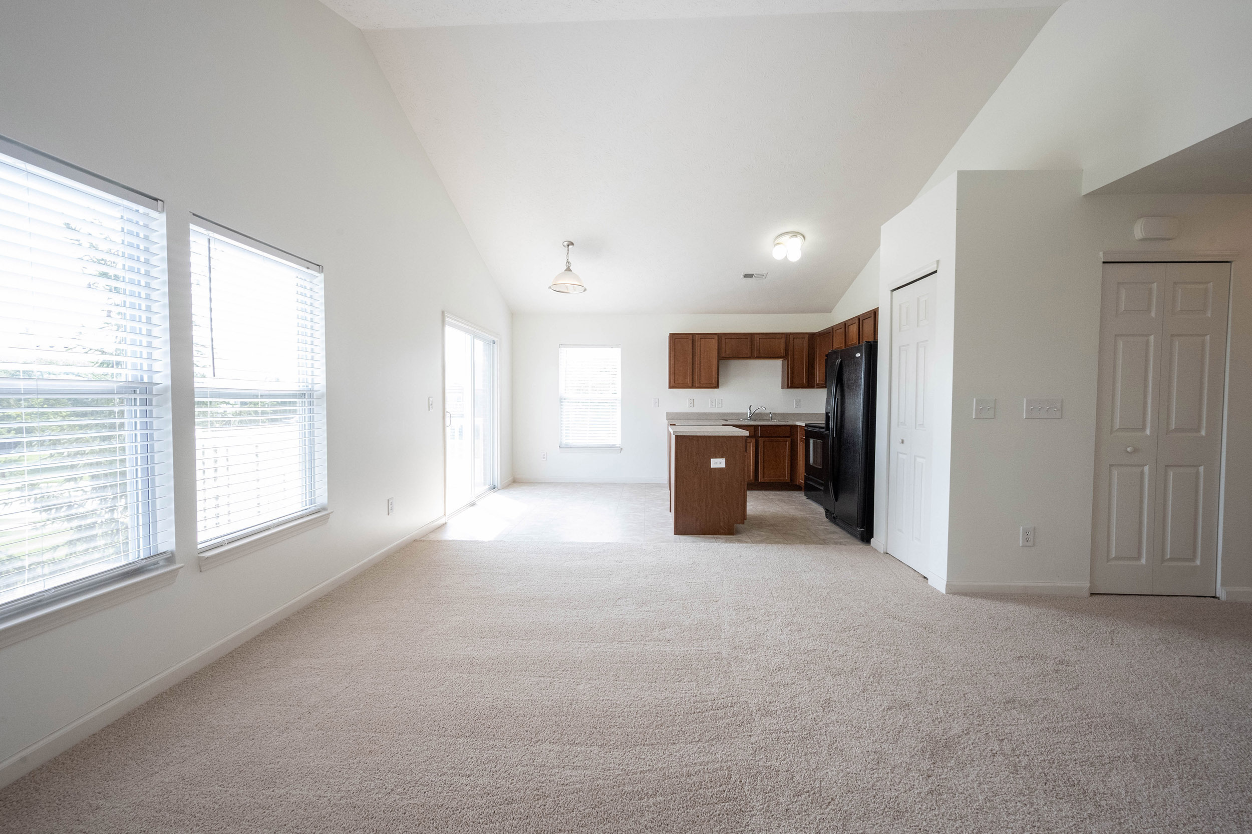 Located in Limestone Springs, Fishers, IN, this 2-bed, 1-bath end unit condo offers both comfort & convenience. New carpet & fresh paint! The family room features vaulted ceilings, a fireplace, & ample natural daylight, making the space feel both spacious & inviting. The practical eat-in kitchen is well-equipped for all your cooking needs. The primary bedroom not only offers vaulted ceilings but also includes a walk-in closet for added storage. Enjoy some fresh air on a balcony overlooking the pond. For your convenience, the unit includes a washer & dryer, as well as a 1-car garage. Community amenities are a bonus, featuring a swimming pool, exercise facilities, playground, & courts. Easy access to I-69, HSE Schools!, Hamilton Town Center