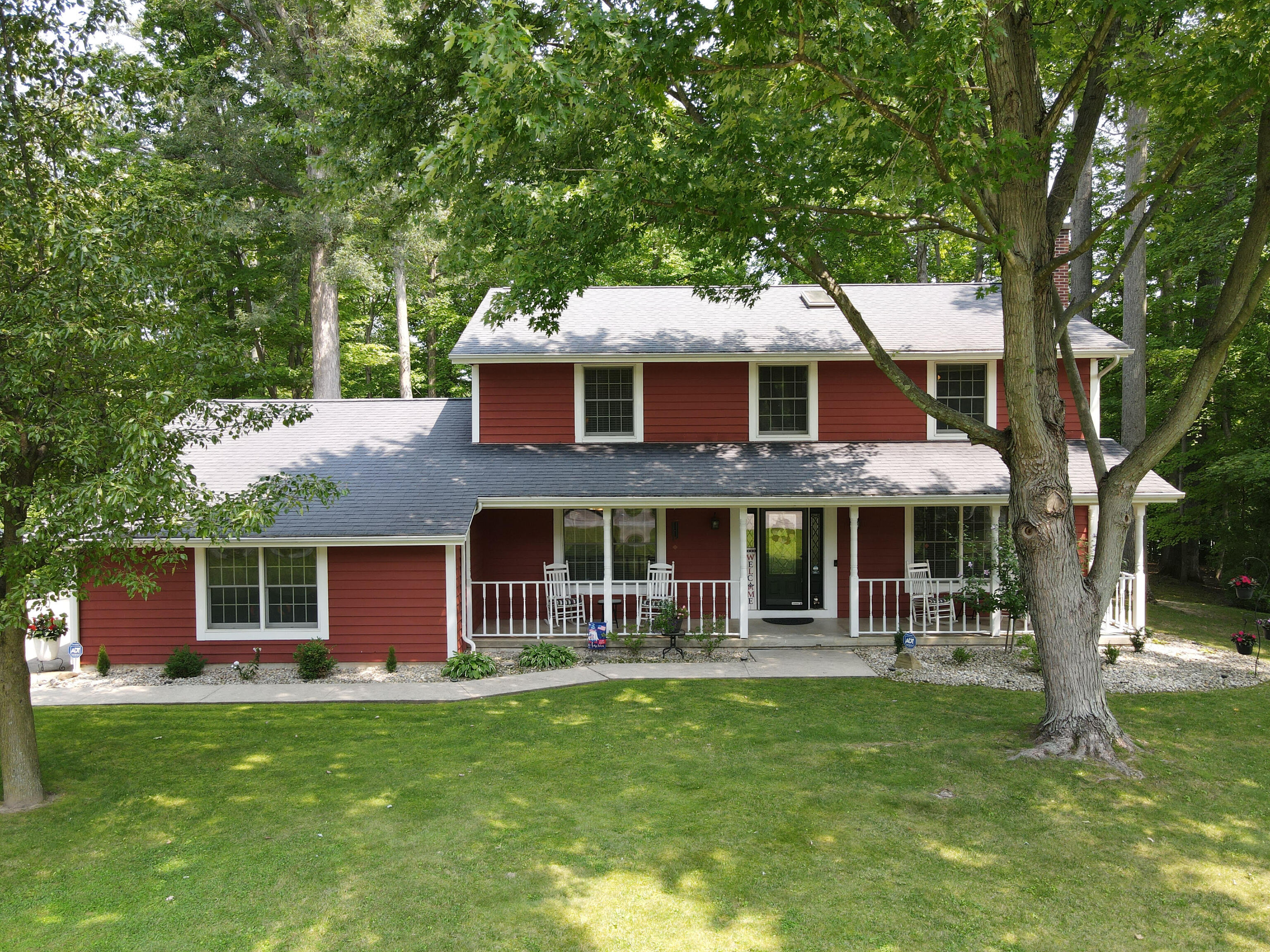 Serene views from this 1.01 acre property located in beautiful Lake of the Woods Estates in Batesville, IN. This charming home offers 4 bedrooms and 2.5 baths with an amazing backyard and deck with a pergola and hot tub, both to be included in sale. Inside you will find a spacious laundry room, beautiful kitchen island, a formal dining room, and a living room with a fireplace. The half finished basement includes a pool table and entertainment area with exceptional storage capabilities. Step outside to a wonderful back deck offering an amazing view of mature trees and and the sounds of nature.