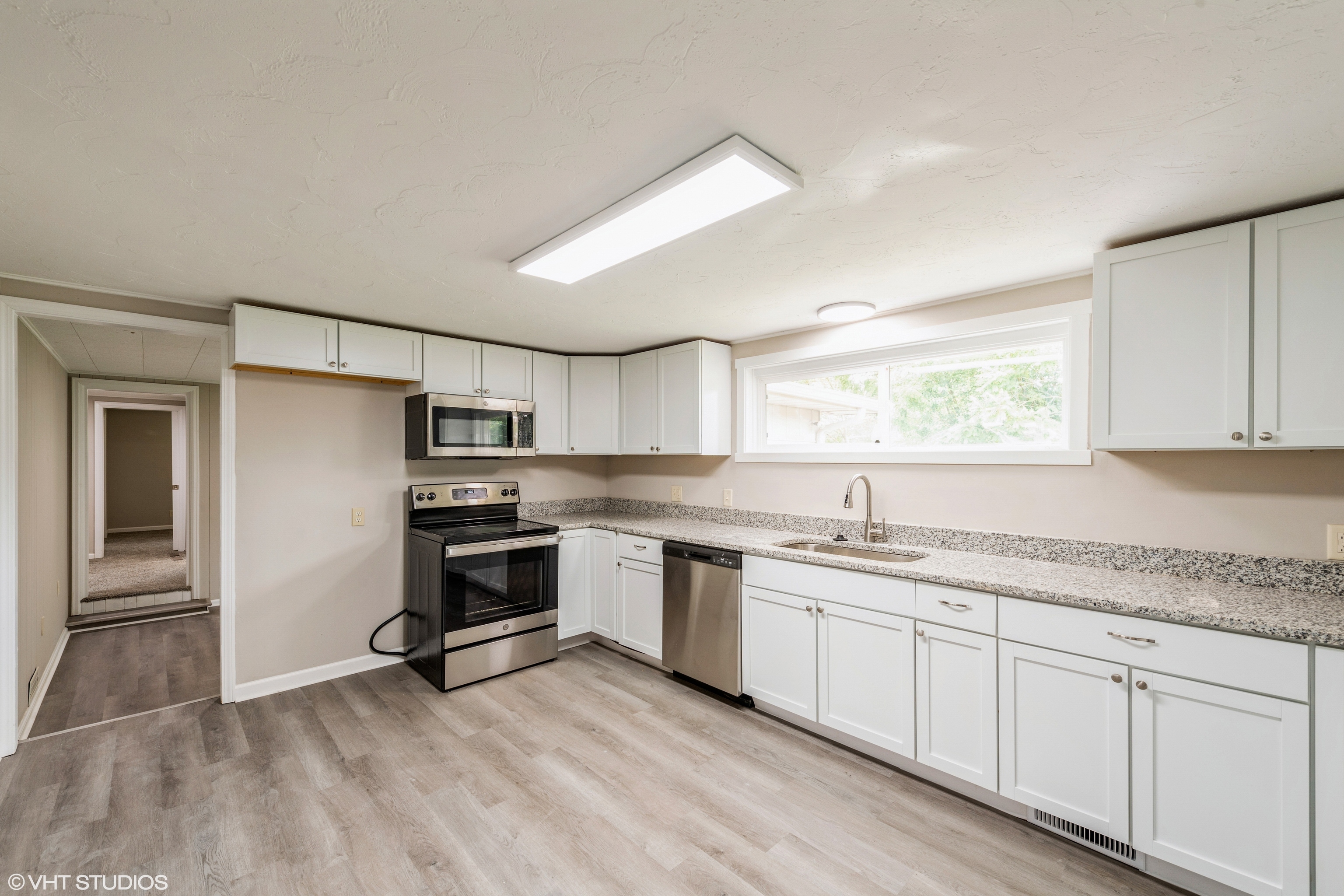 Newley undated, 2 bedroom, 1 bath, ranch style home. Huge living room with plenty of space to relax. Brand new kitchen with plenty ofcabinets and counter space as well as new appliances. Both bedrooms are a favorable size. Nice sun room with lots of windows. Hasnew roof, new HVAC, new kitchen, bath, new paint, flooring and updated wiring. Shed in rear yard for additional storage.